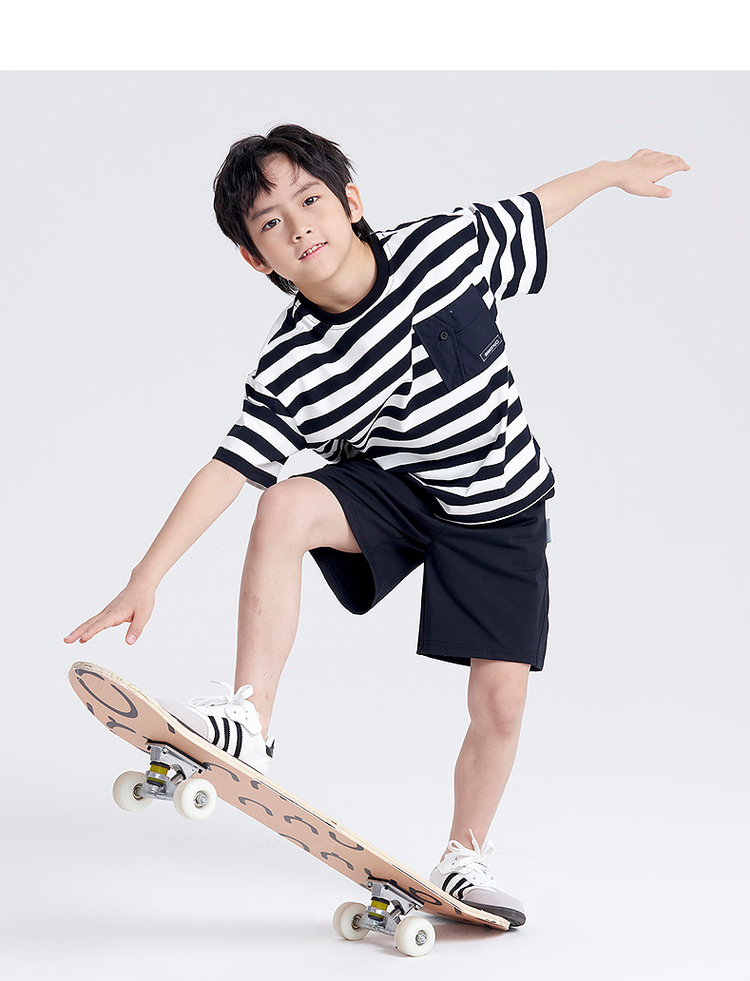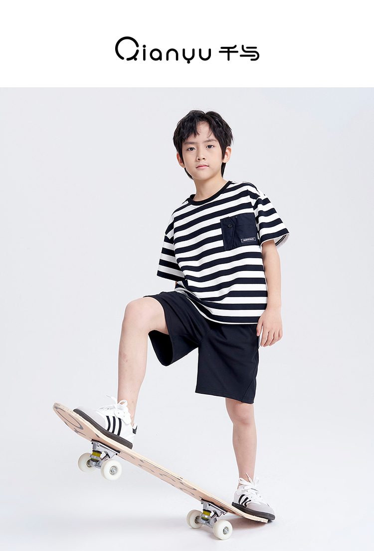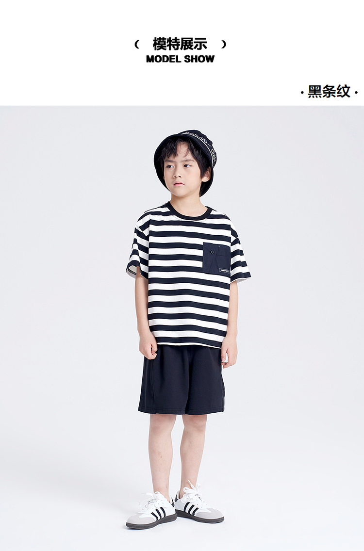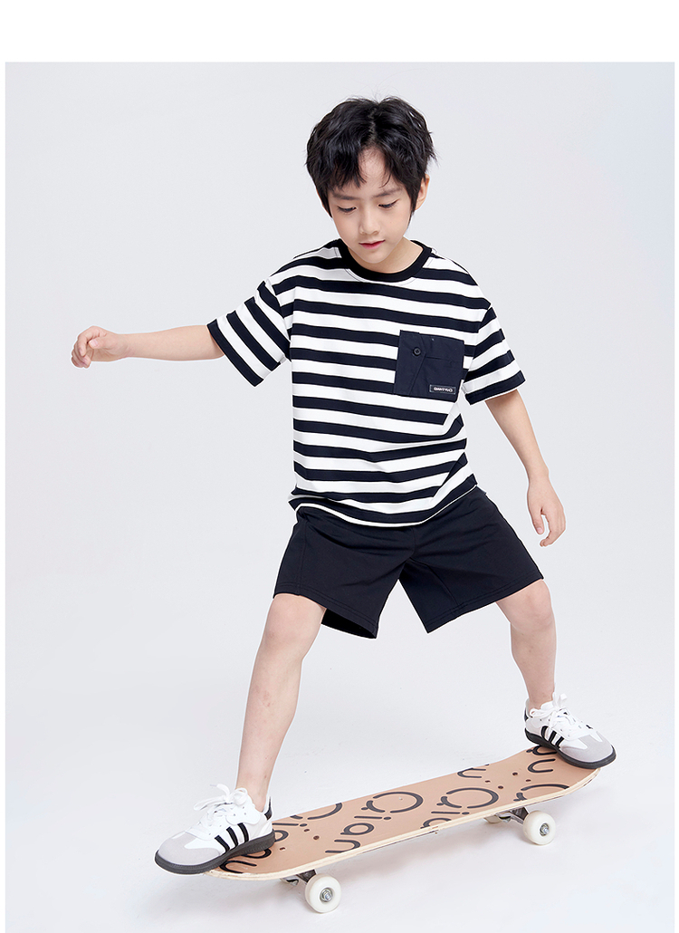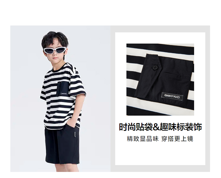 笛莎千与2025夏新款男童时尚条纹针织短裤套装