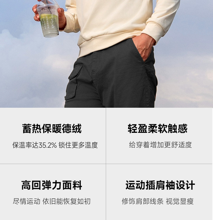 SKAH德绒保暖卫衣 蓄热锁温德绒面料轻盈柔软上衣外套 秋冬简约时尚长袖T恤衫男