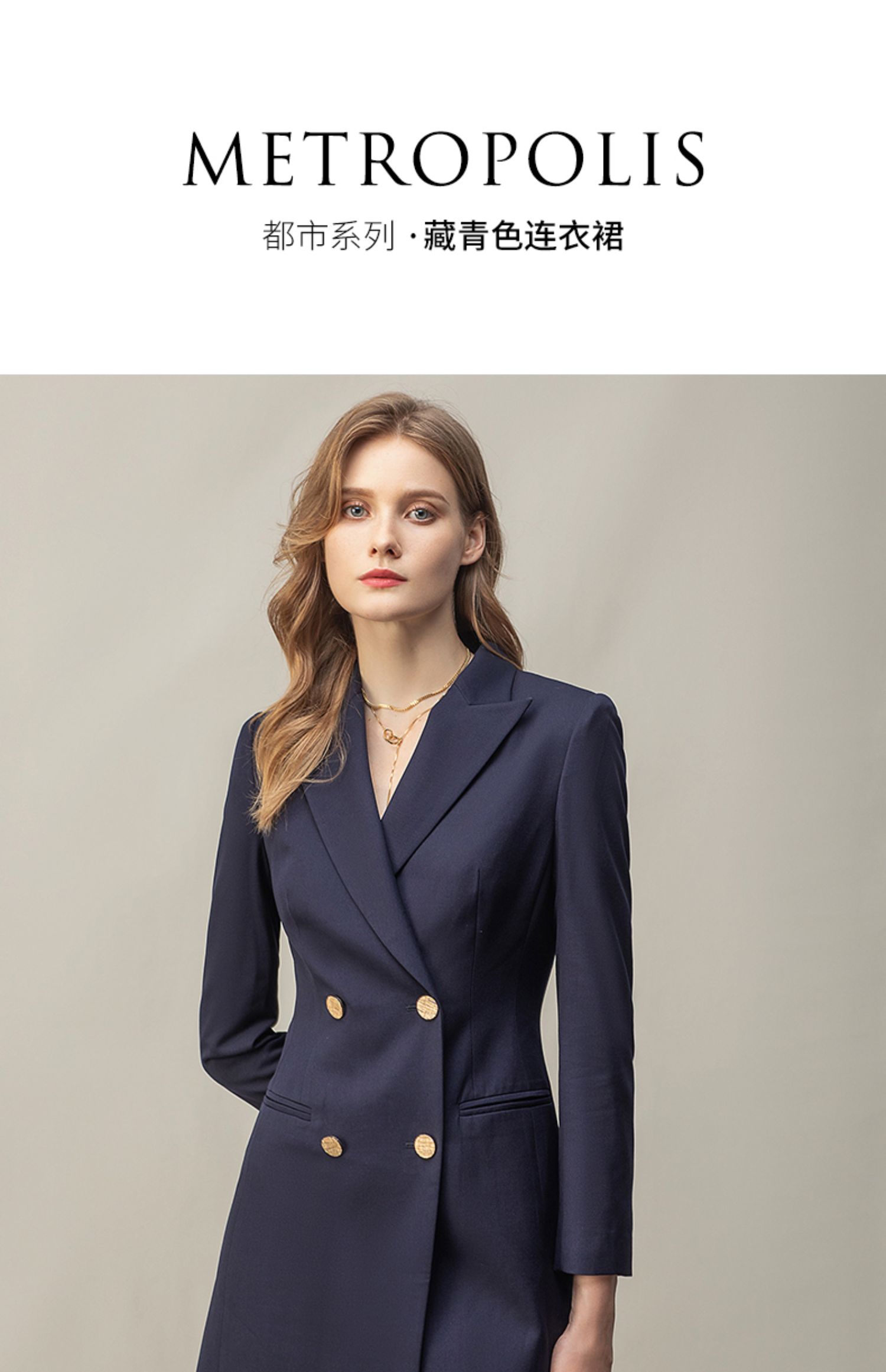 IWY/藏青色连衣裙时尚气质长袖职业装名媛修身售楼部ol工作服Q11369