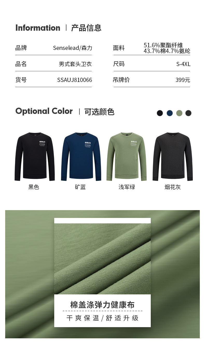 Senselead森力/男式套头卫衣 SSAUJ810066
