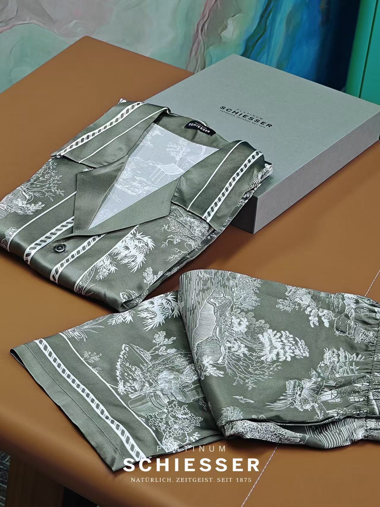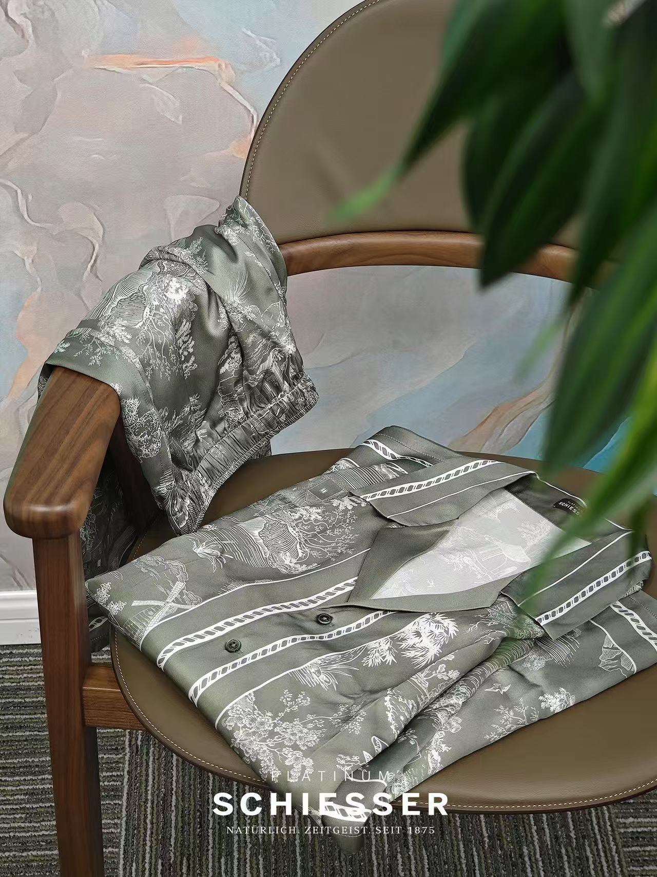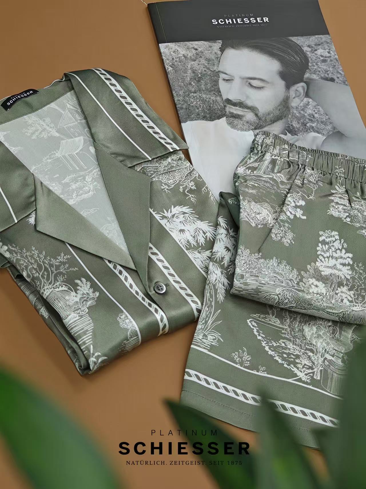 【极繁真丝套装】SCHIESSER铂雅极繁系列|铂雅男士真丝家居经典开衫短袖短裤套装~99/19905H