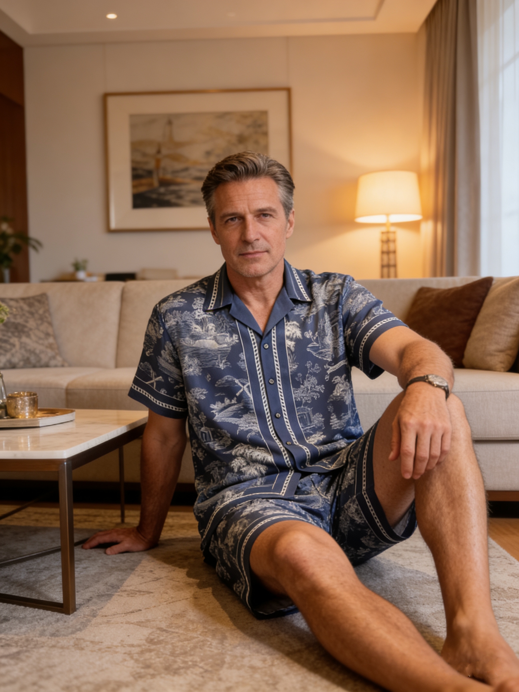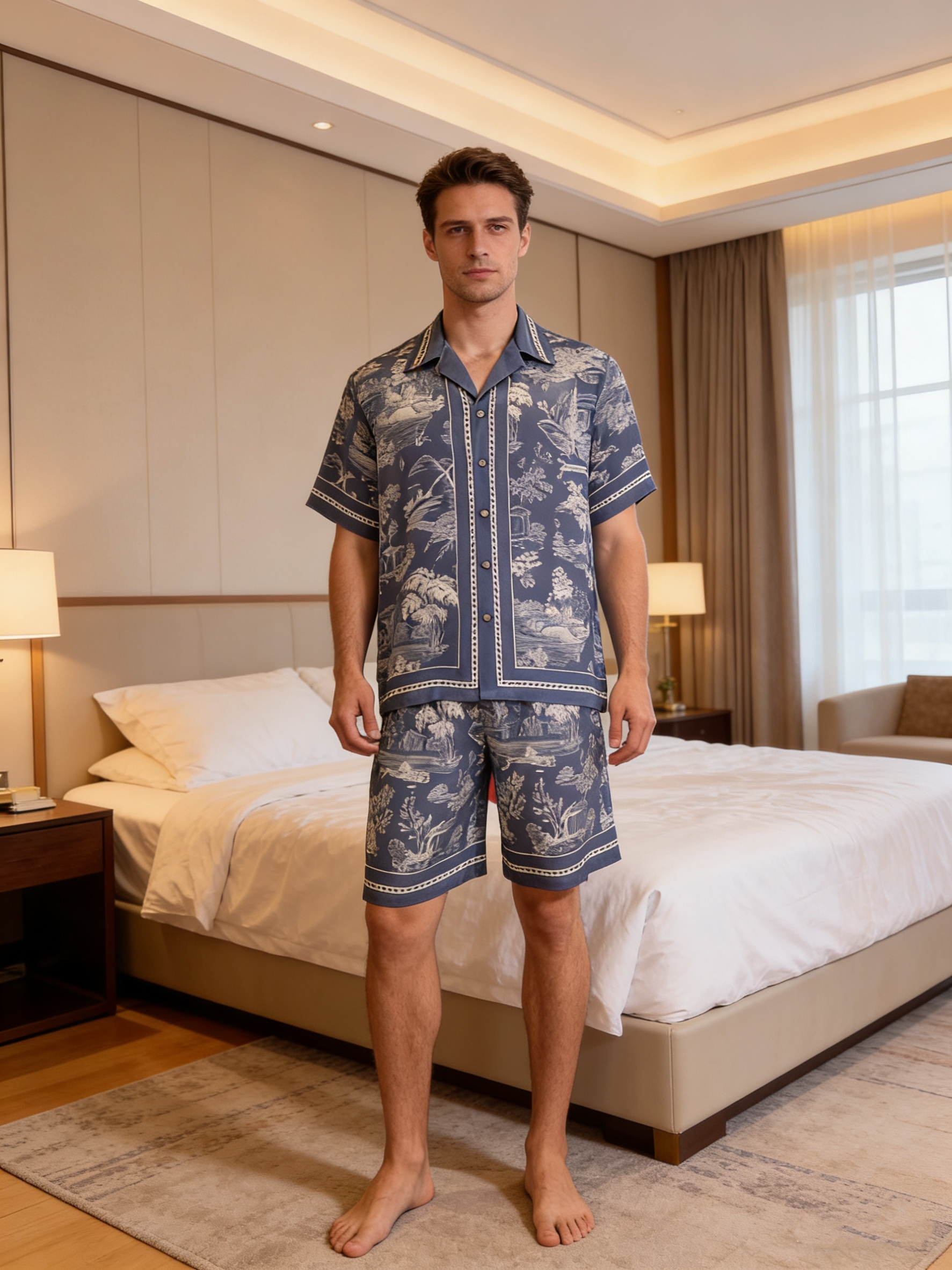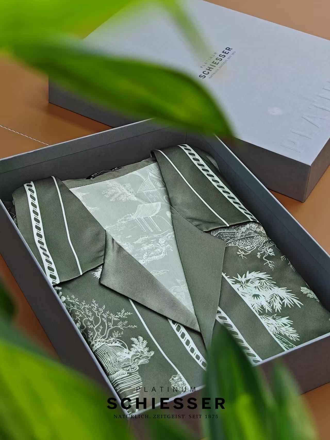 【极繁真丝套装】SCHIESSER铂雅极繁系列|铂雅男士真丝家居经典开衫短袖短裤套装~99/19905H