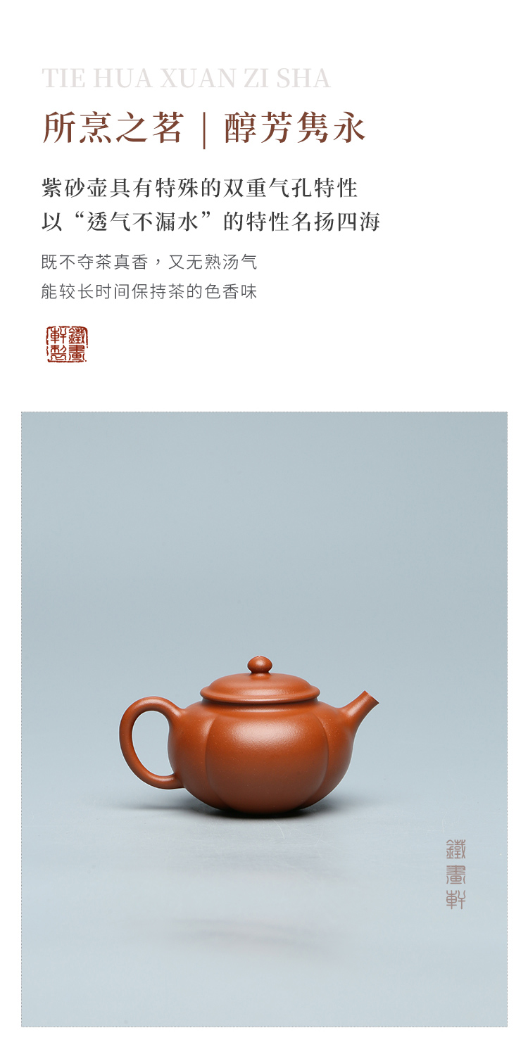 百年紫砂品牌铁画轩出品 小煤窑朱泥 瓜趣紫砂壶