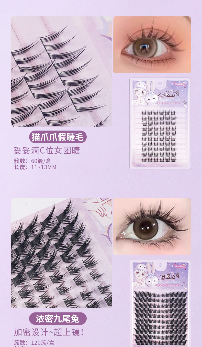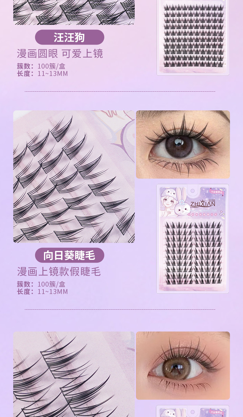 【自然卷翘持久定型、懒人快速上妆设计】假睫毛全家福不免胶大容量太阳花狐系猫爪女自然大花卷纯野眼睫毛.TA