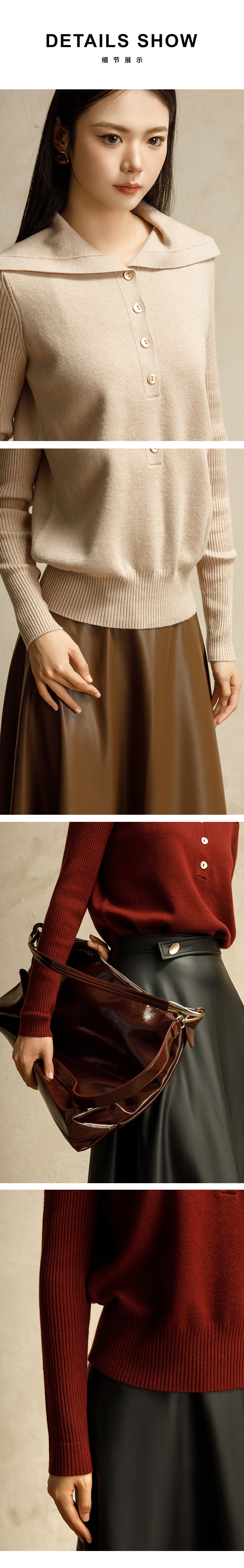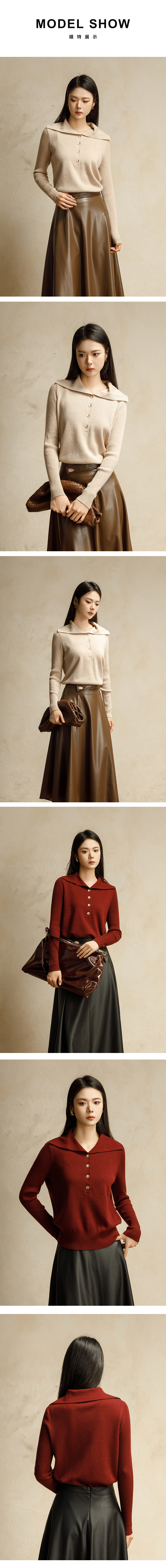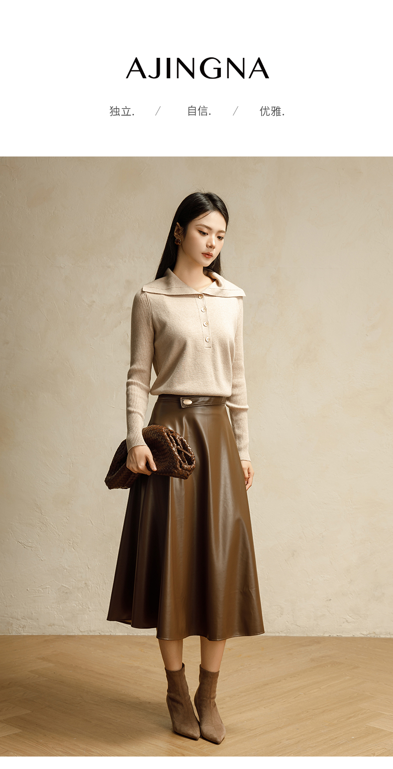 【商场同款】阿菁娜2024冬季新款翻领优雅针织毛衫A29D301029