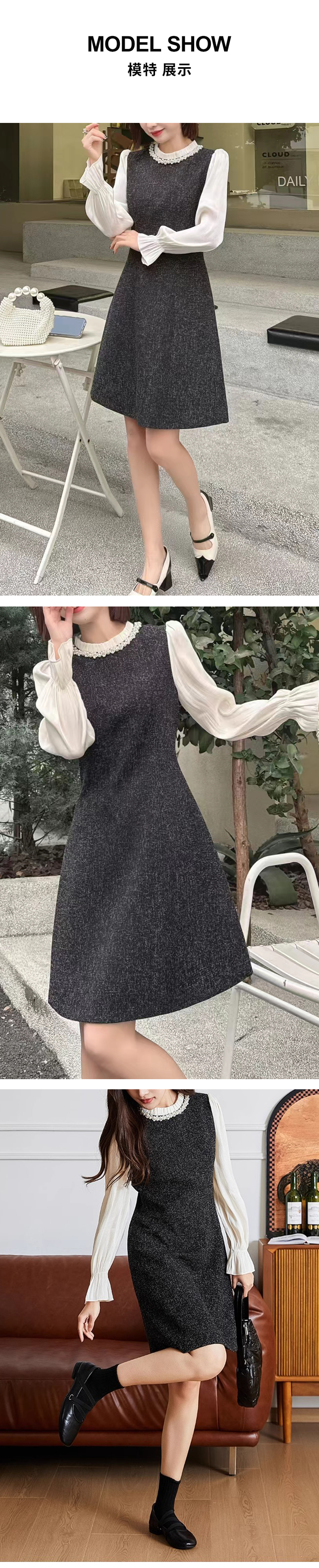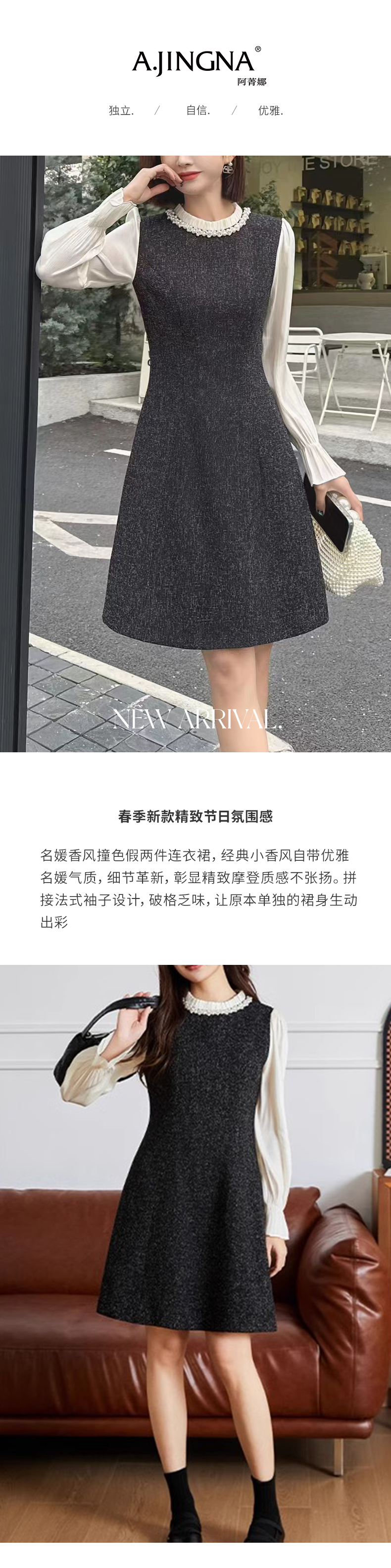 【名媛香风】阿菁娜春季新款精致节日氛围感假两件连衣裙F30C212002