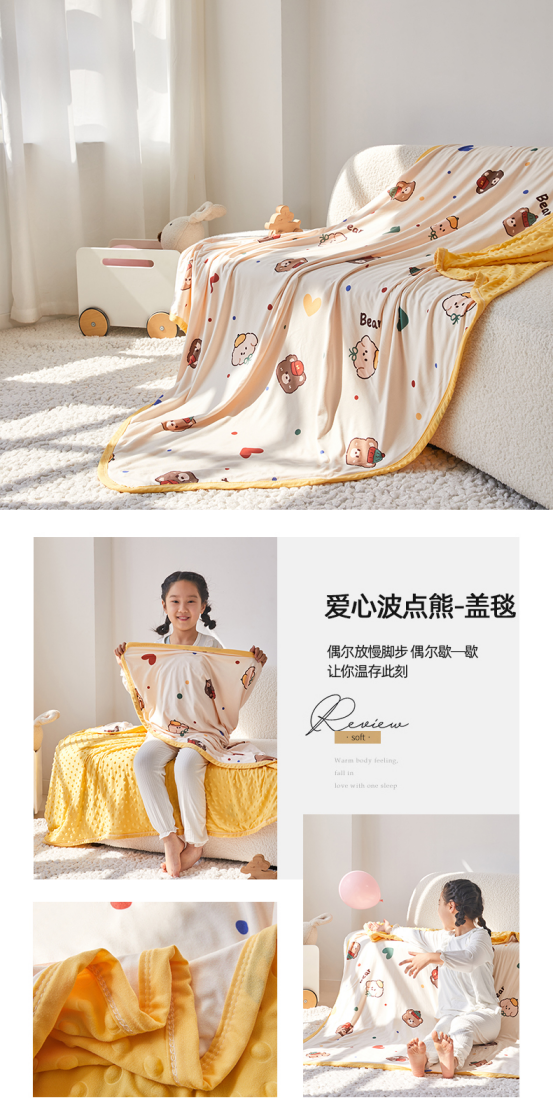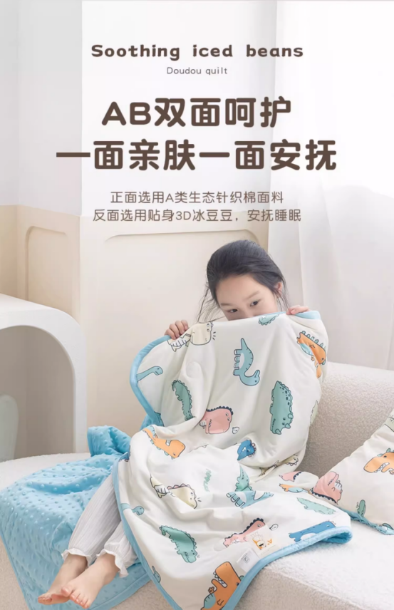 从里到外亲肤级A类标准,啃咬、呼吸都放心 这款豆豆被经过严格的质量检测,确保每一床都达到优质标准。同时,我们提供实惠的价格,让每个家庭都能享受到豆豆被带来的温暖。