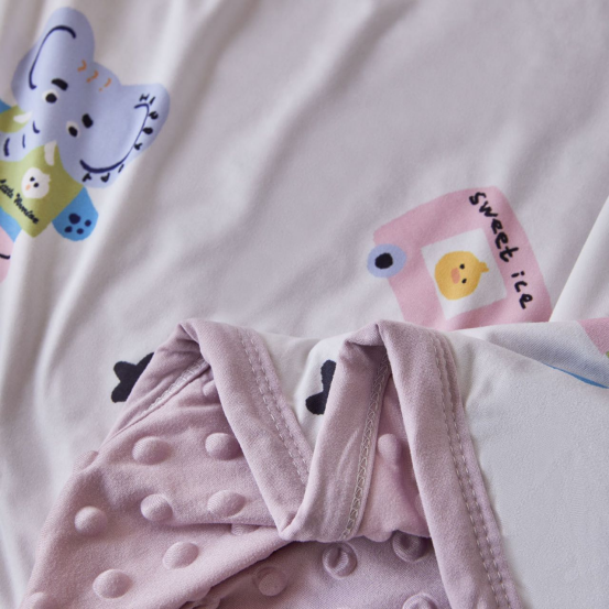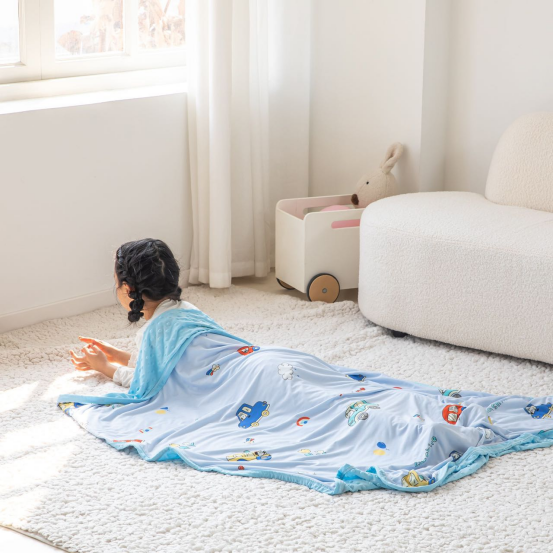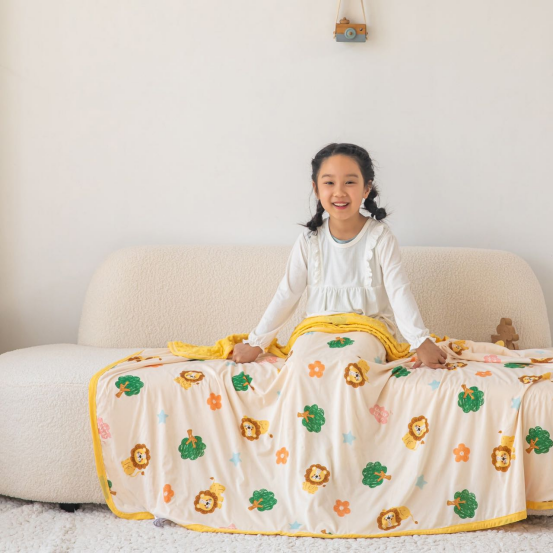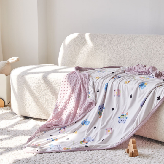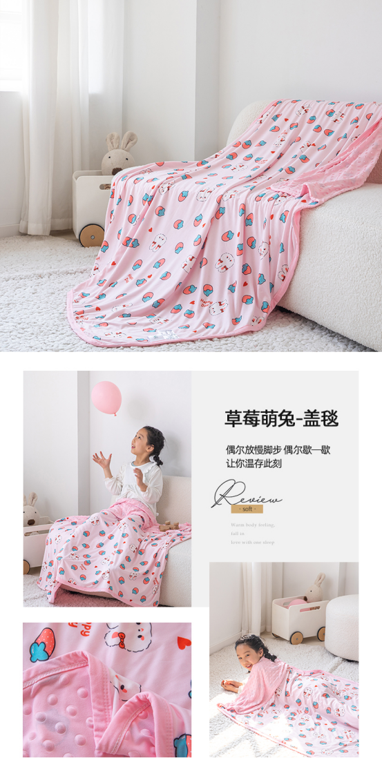 豆豆毯轻盈柔软很舒服,使用场景很多,大宝宝小宝宝都可以用。 * 刚出生的婴儿可以当作抱毯,包被。 * 大一点的孩子当做盖毯,推车出门带宝宝遛弯的时候可以盖在身上。 * 宝宝上托班,幼儿园,可以当午睡盖毯,小凸点设计具有很好的安抚功能。 * 大人可以当空调毯,或者是午睡的搭被,超级实用。