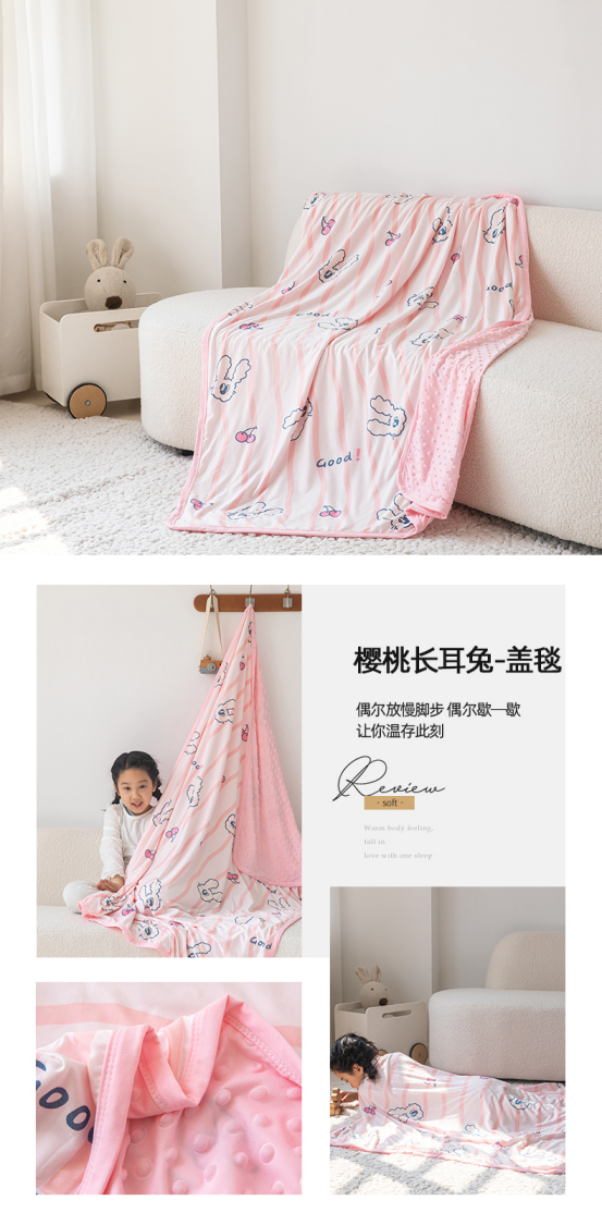 正面针织棉软糯的像棉花糖,贴身盖超级舒服,反面豆豆绒,保暖效果超赞,可直接盖无需套被套,不管是机洗水洗,都不会变形和结团。懒人的福音呀! 触感云朵般软糯糯 超级超级舒服😌 没用过的一定体验下它的柔软!