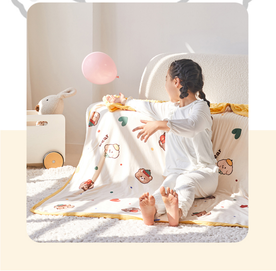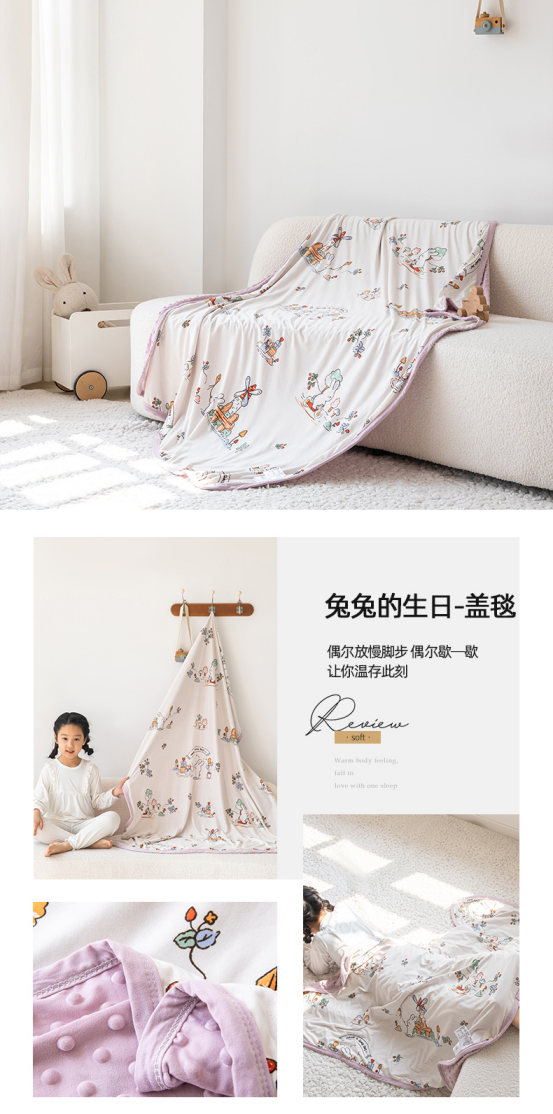 🍒【A类母婴级别】莫媞娜AB超软多功能儿童针织盖毯:🌿 生态针织棉面料;软软糯糯,甄选轻柔舒适的针织棉面料