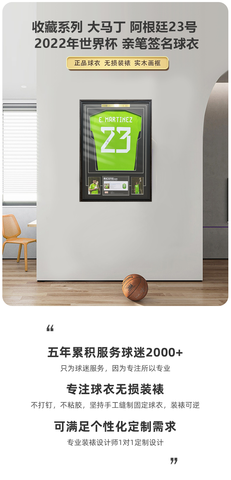 收藏系列 大马丁 阿根廷23号 2022年世界杯 亲笔签名球衣