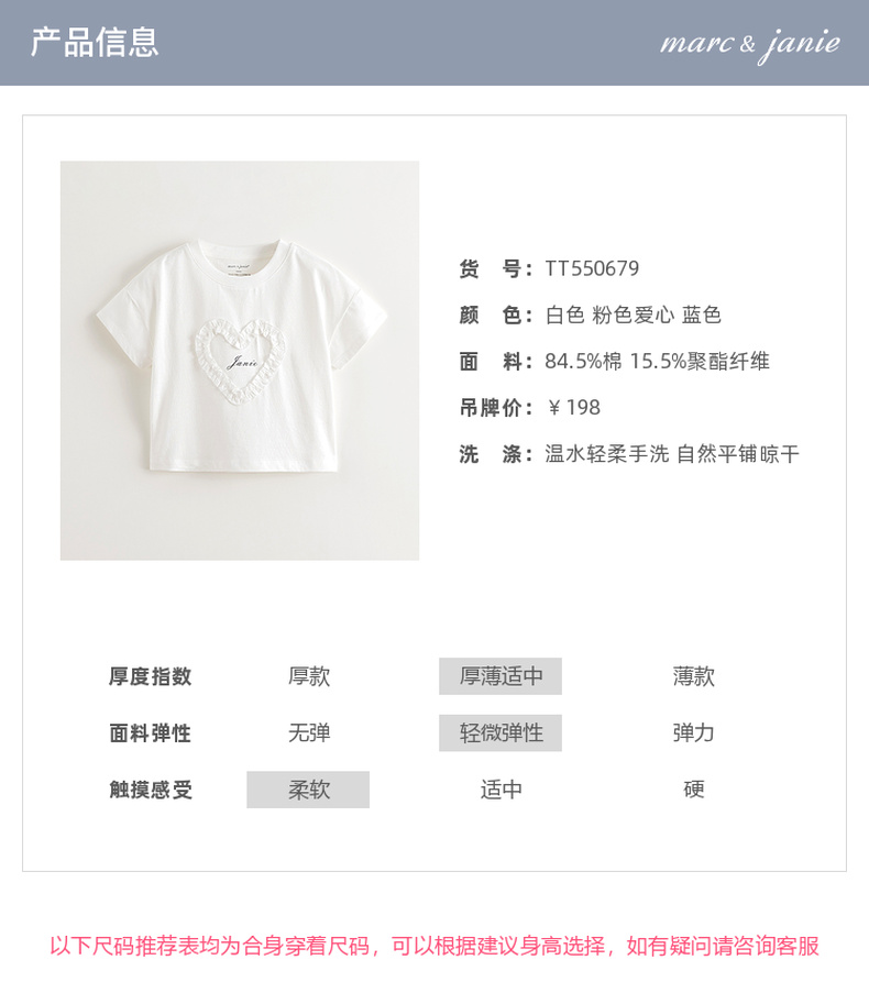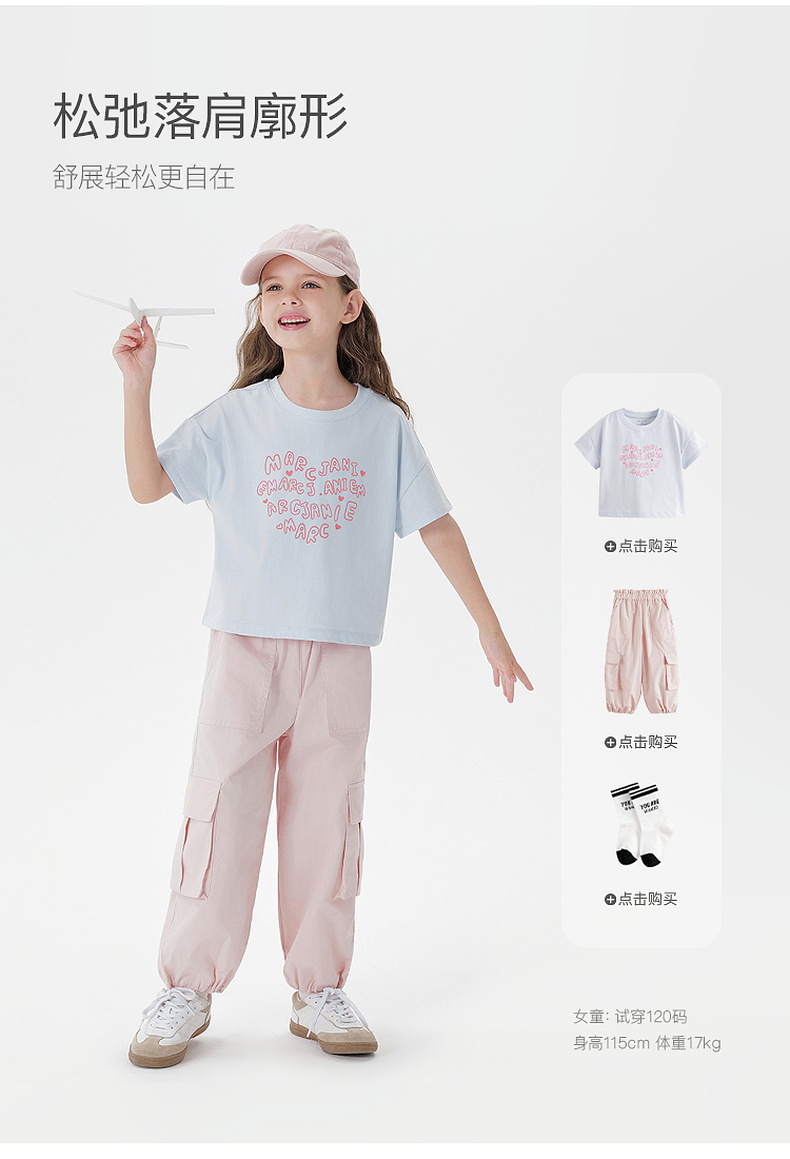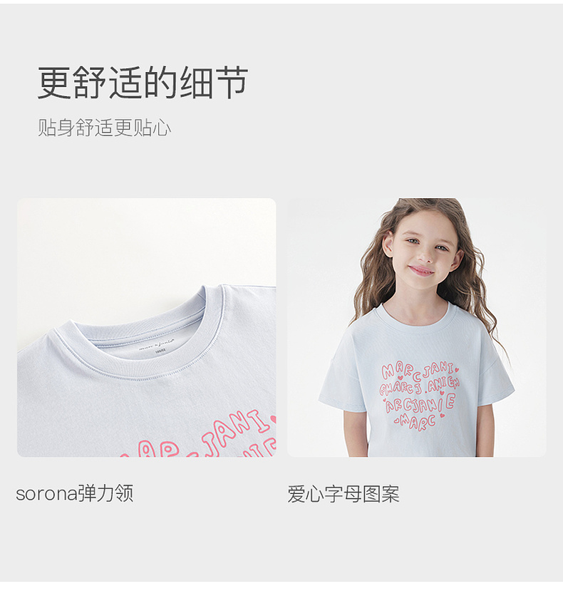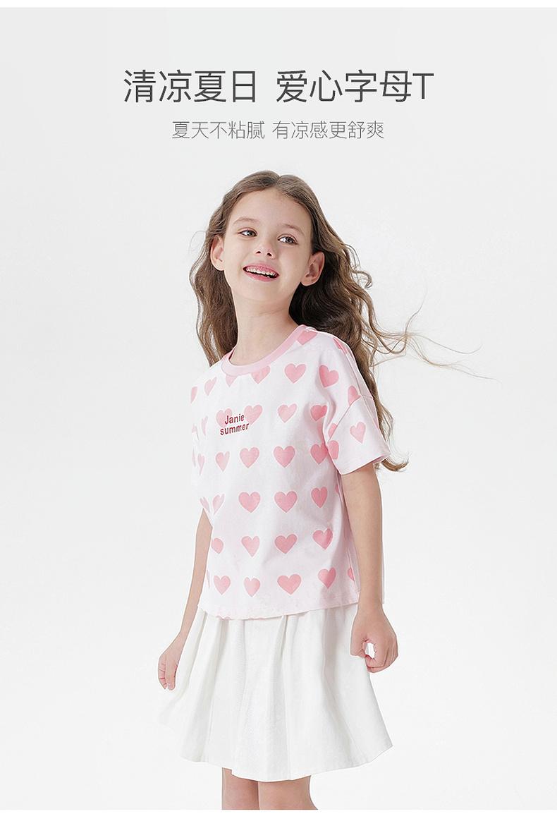 【凉感透气】马克珍妮女童爱心字母短袖T恤 儿童夏装新款550679