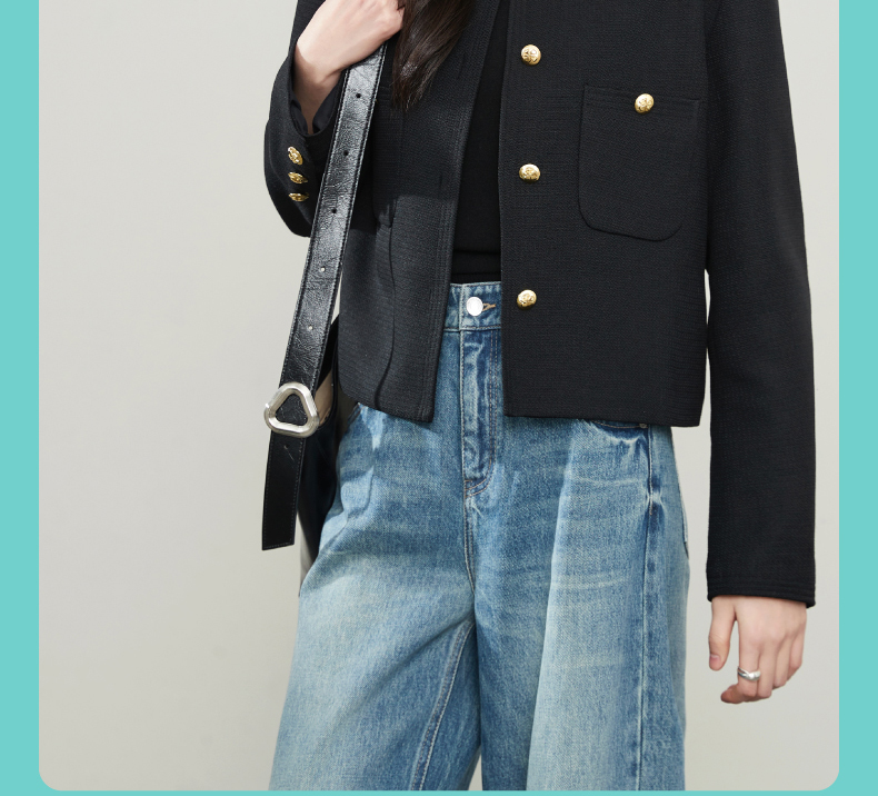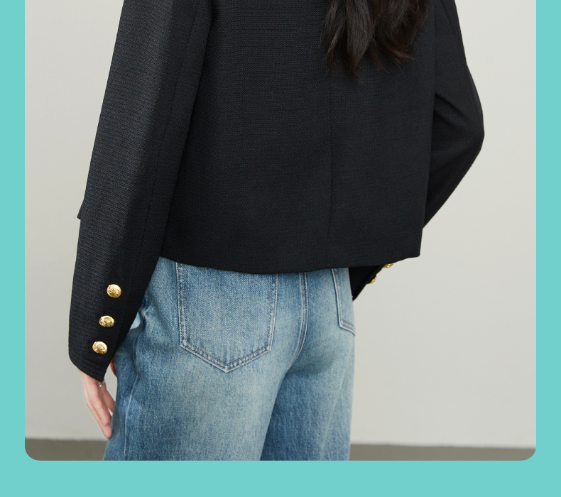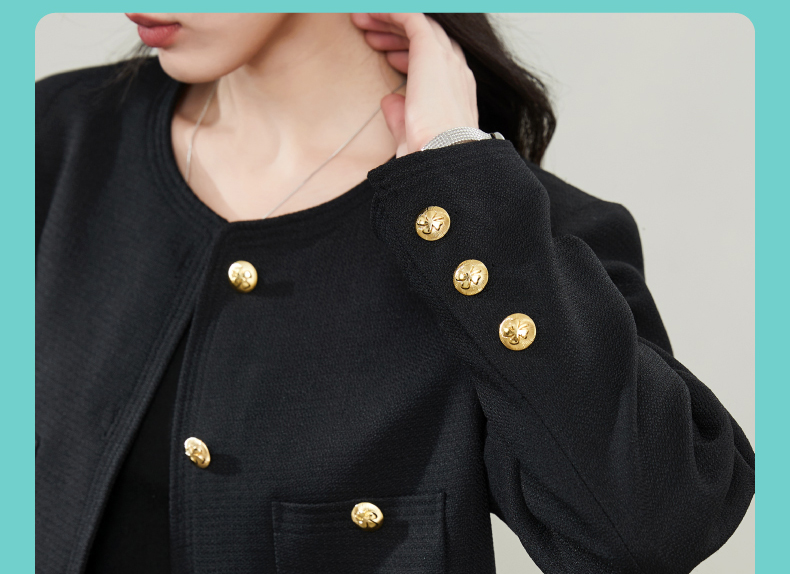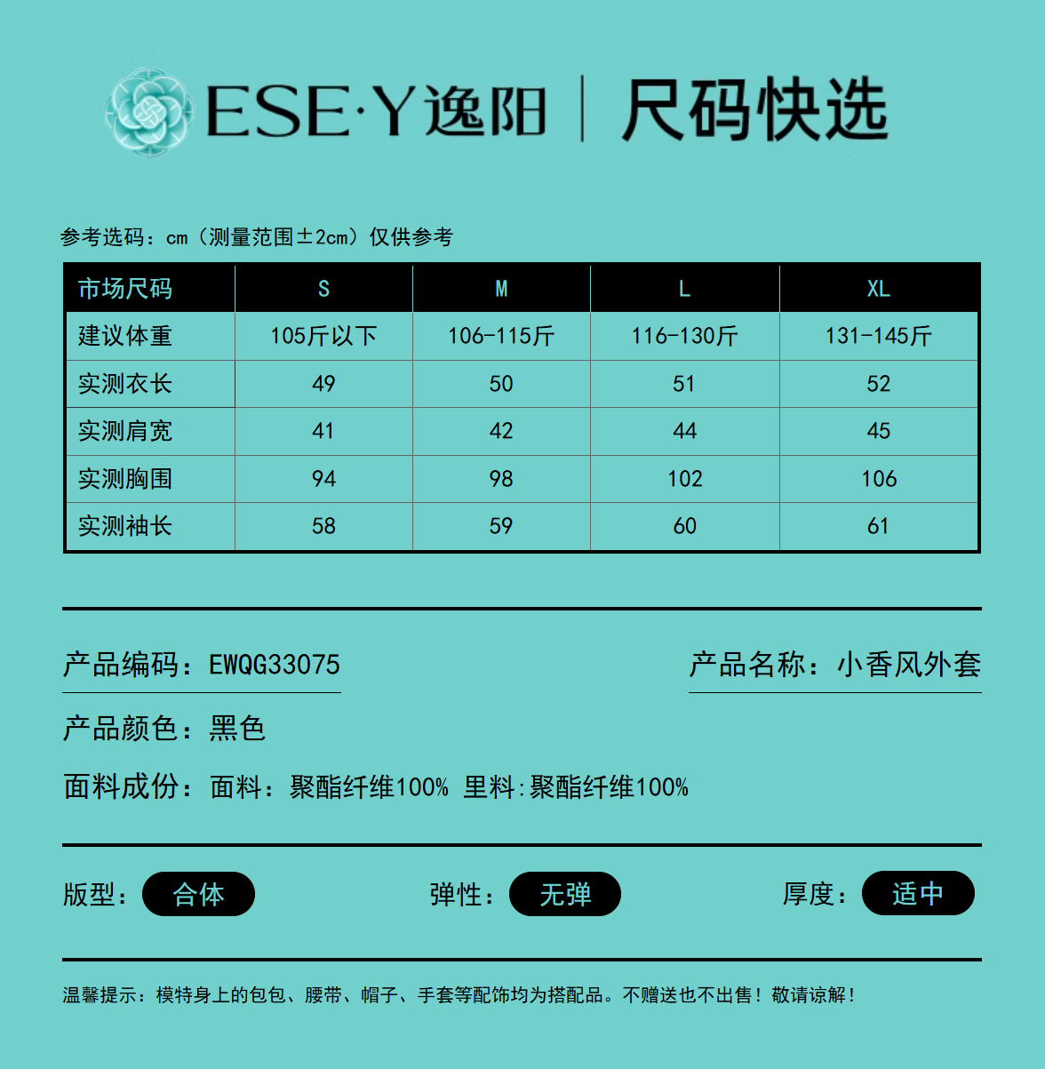 【超值!立体编织-小香风】逸阳黑色复古休闲通勤显瘦短款外套上衣3075