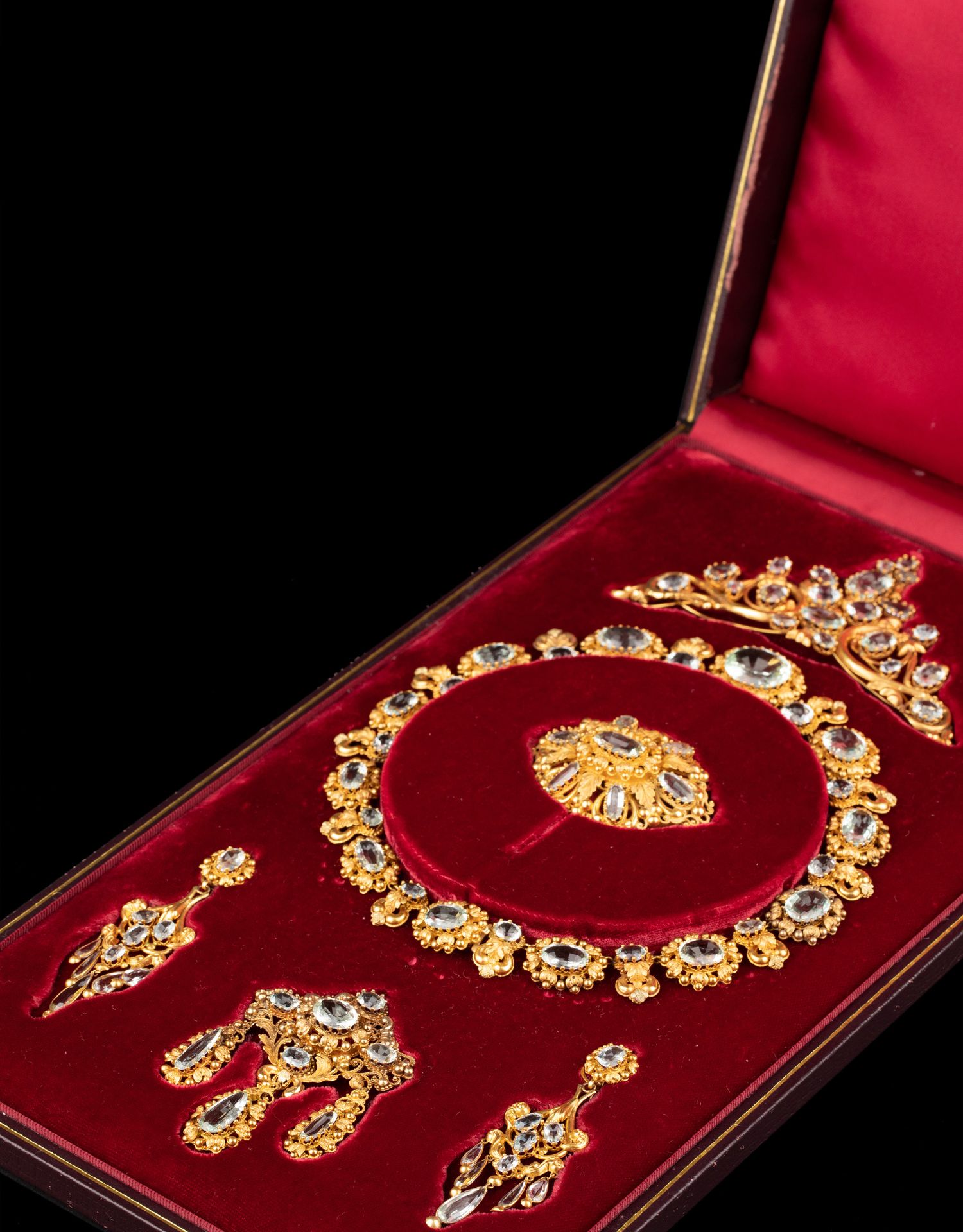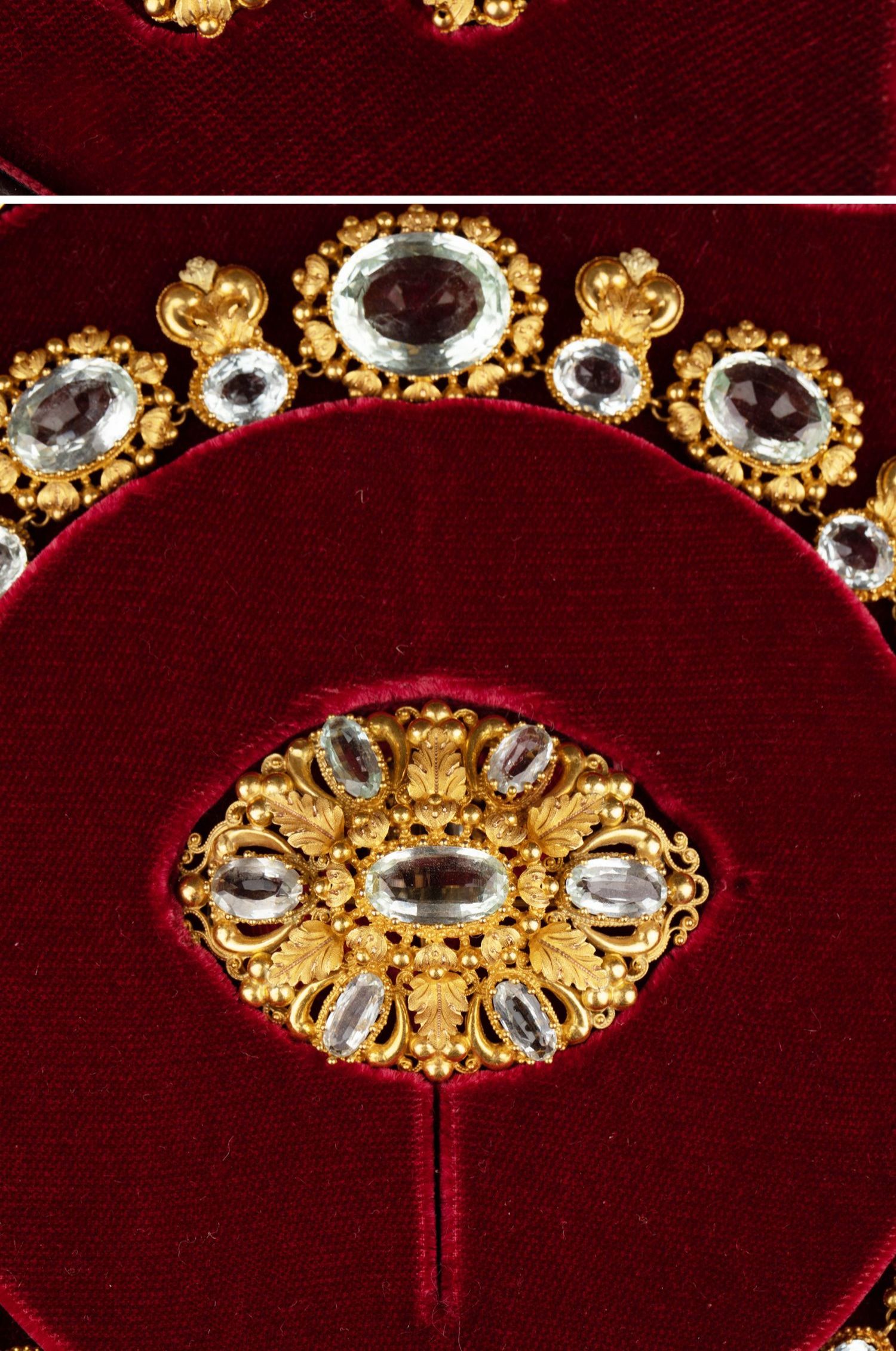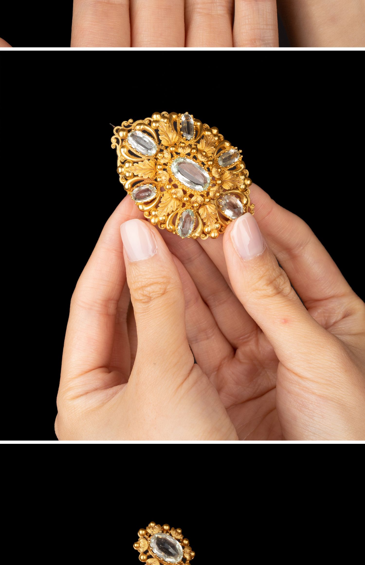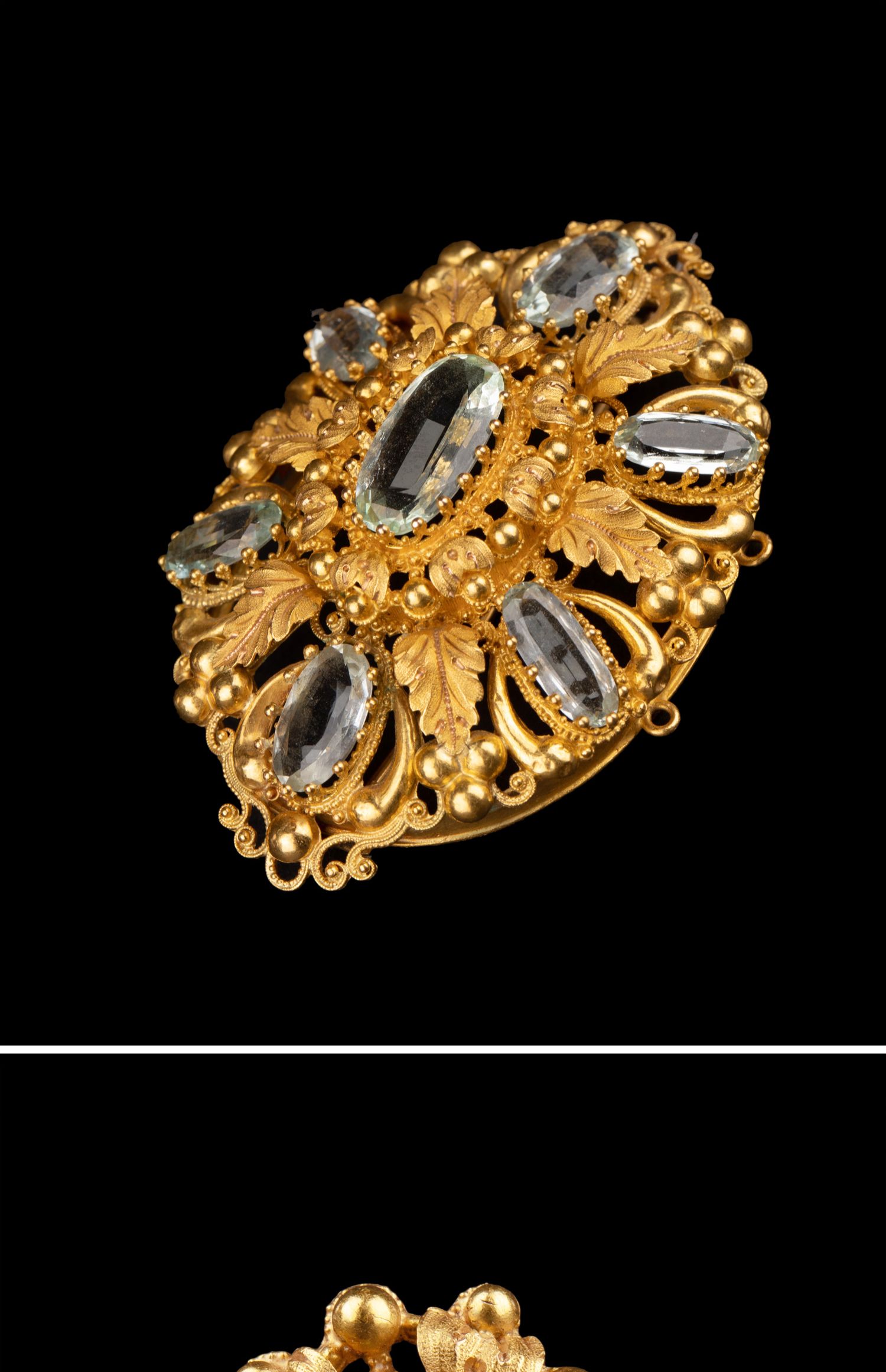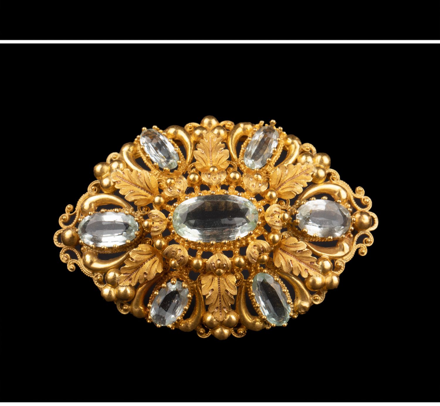 独角鹿西洋古董珠宝首饰套装浪漫主义风格黄金雕花镶嵌海蓝宝石