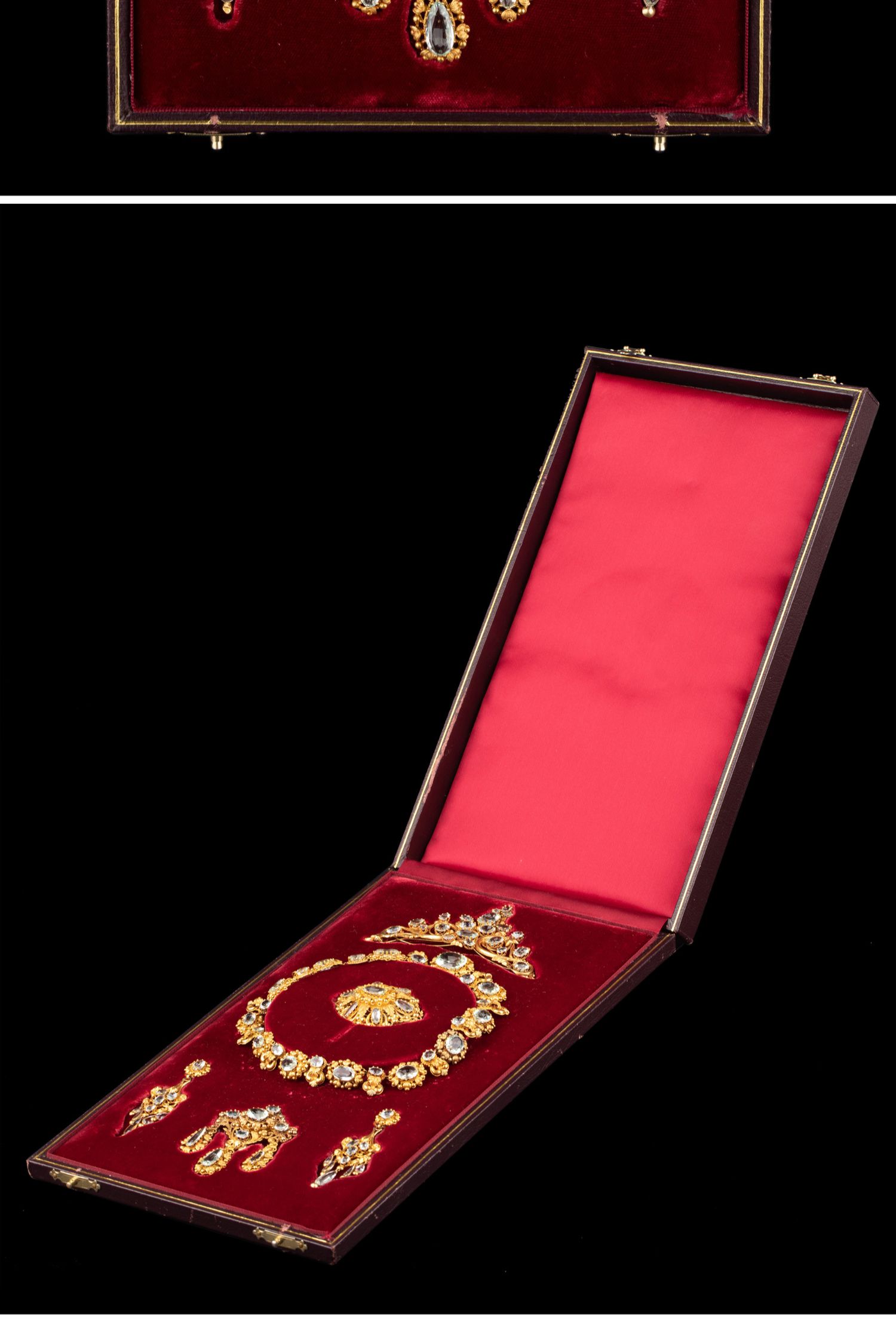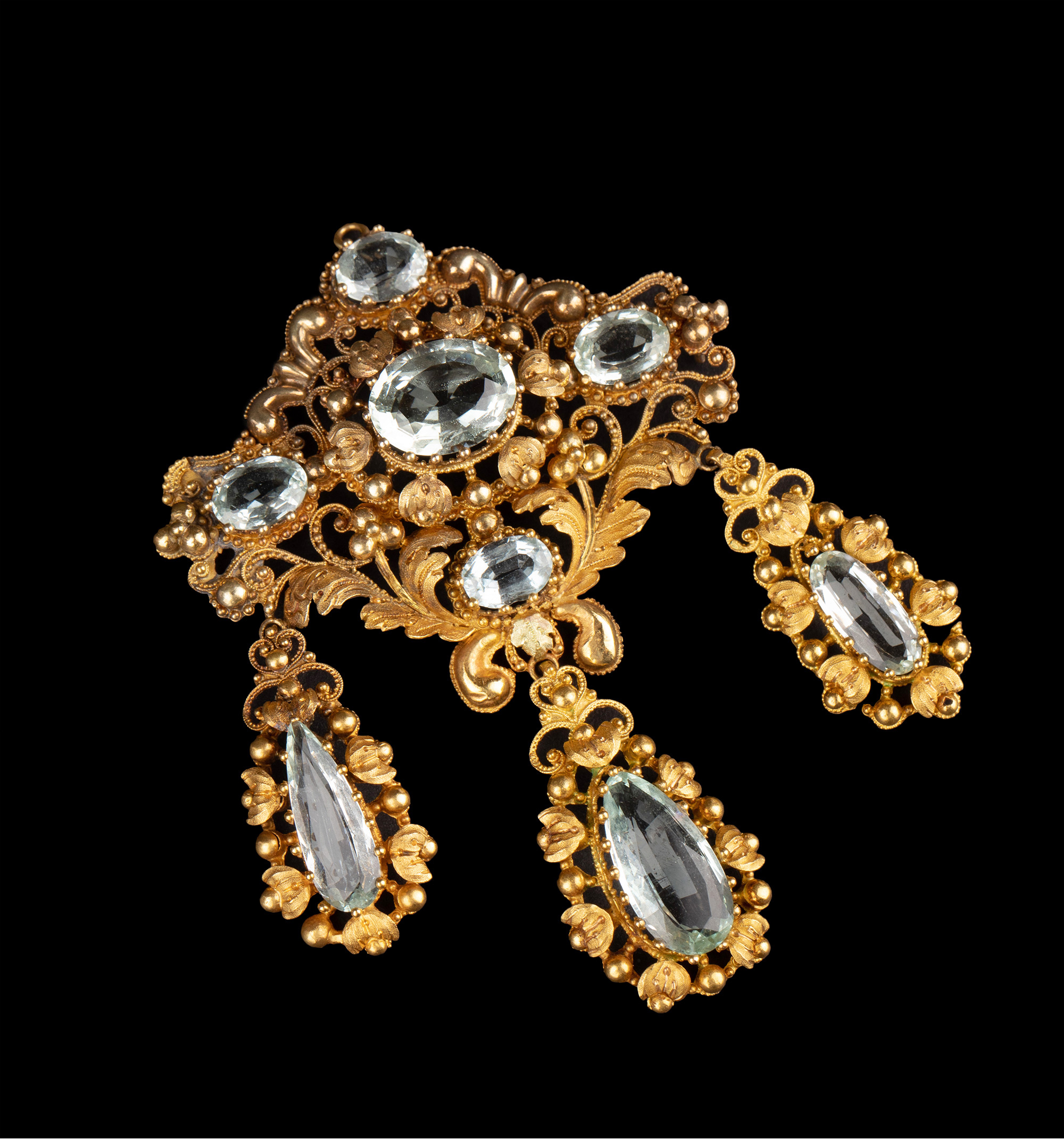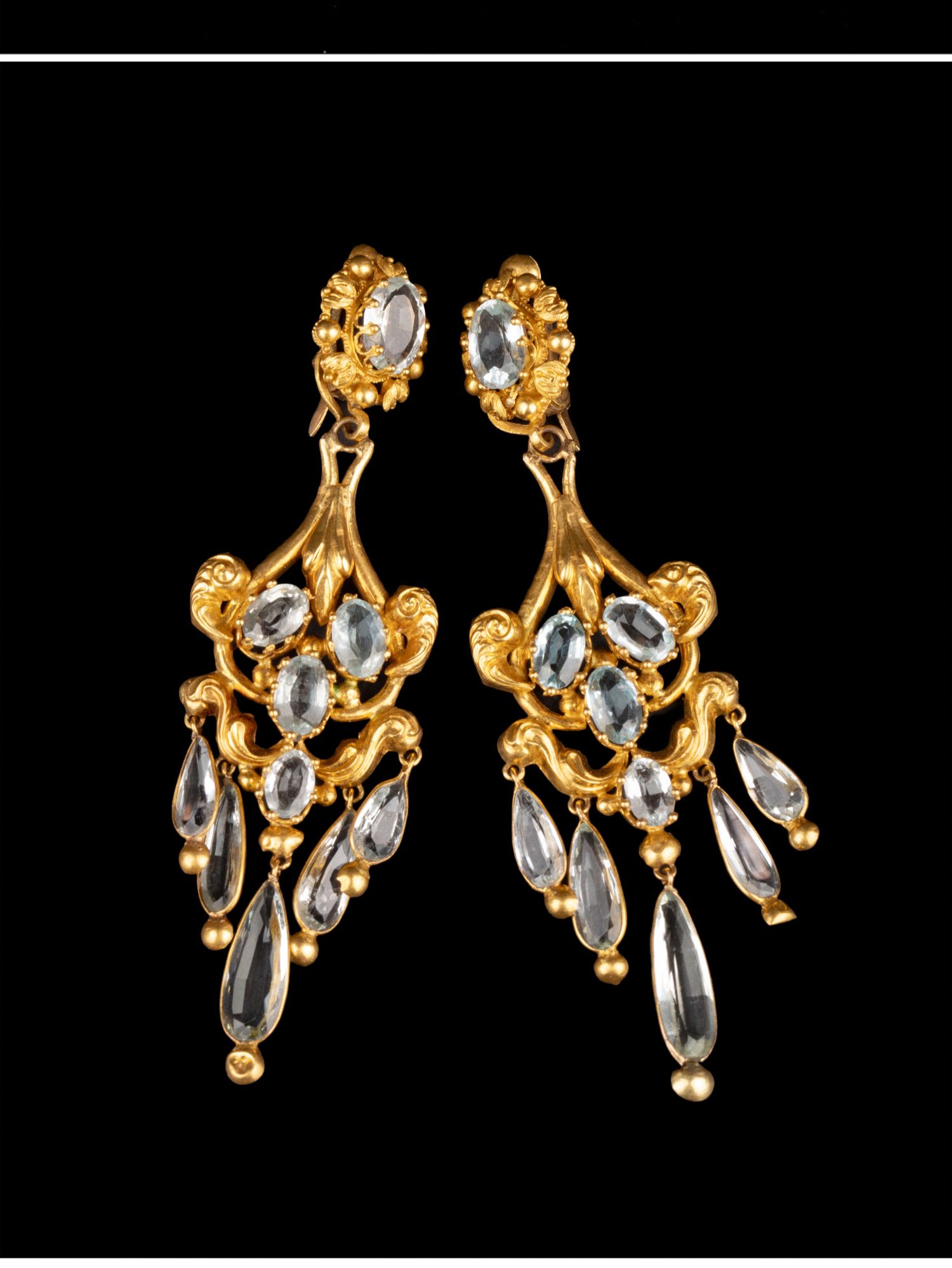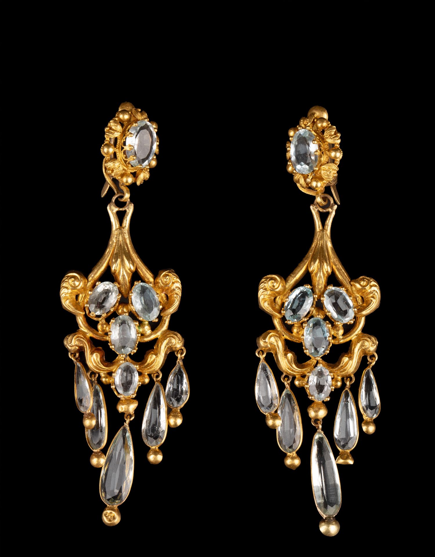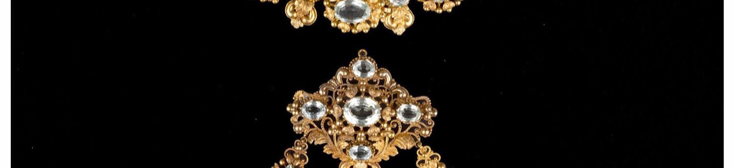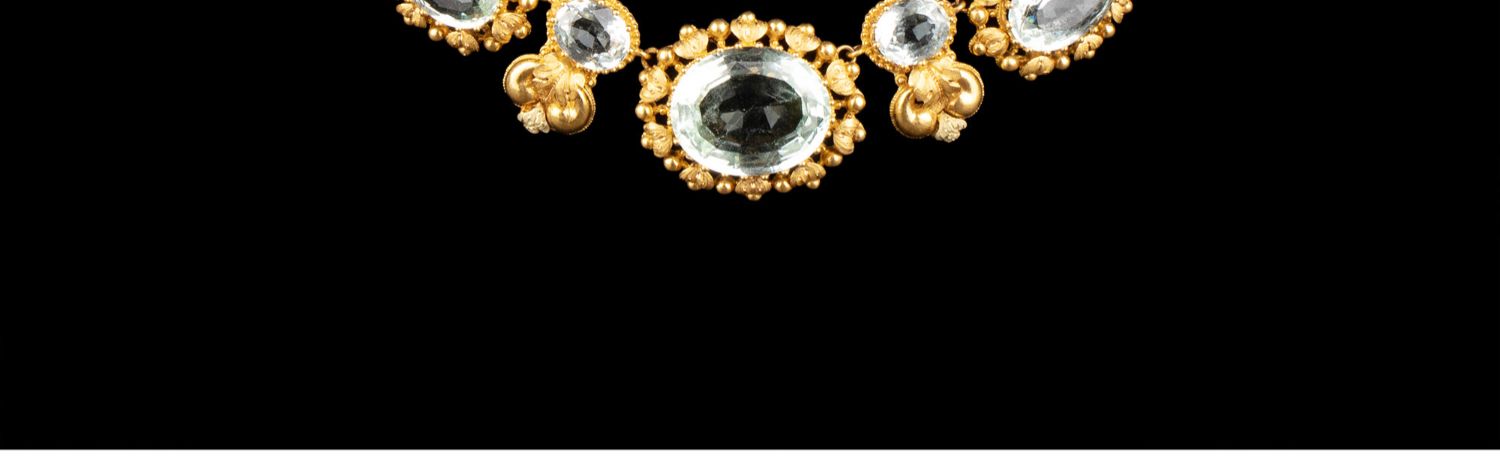 独角鹿西洋古董珠宝首饰套装浪漫主义风格黄金雕花镶嵌海蓝宝石