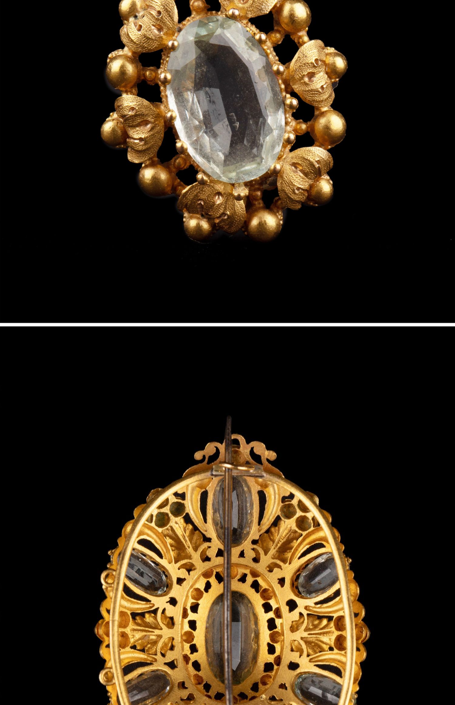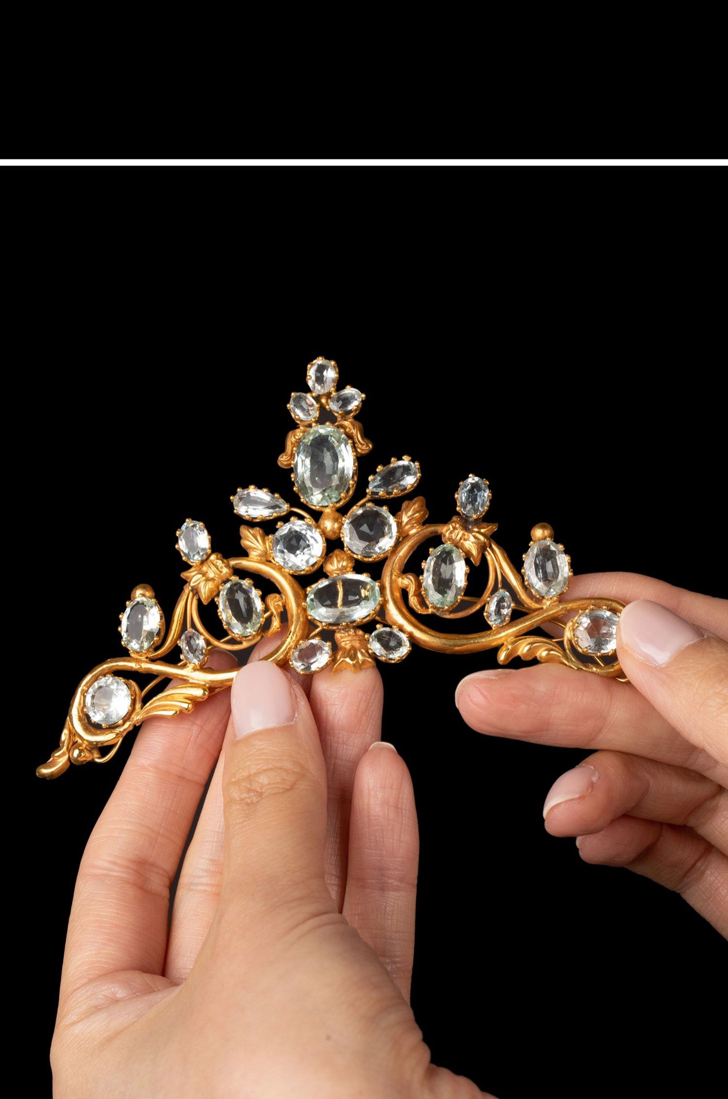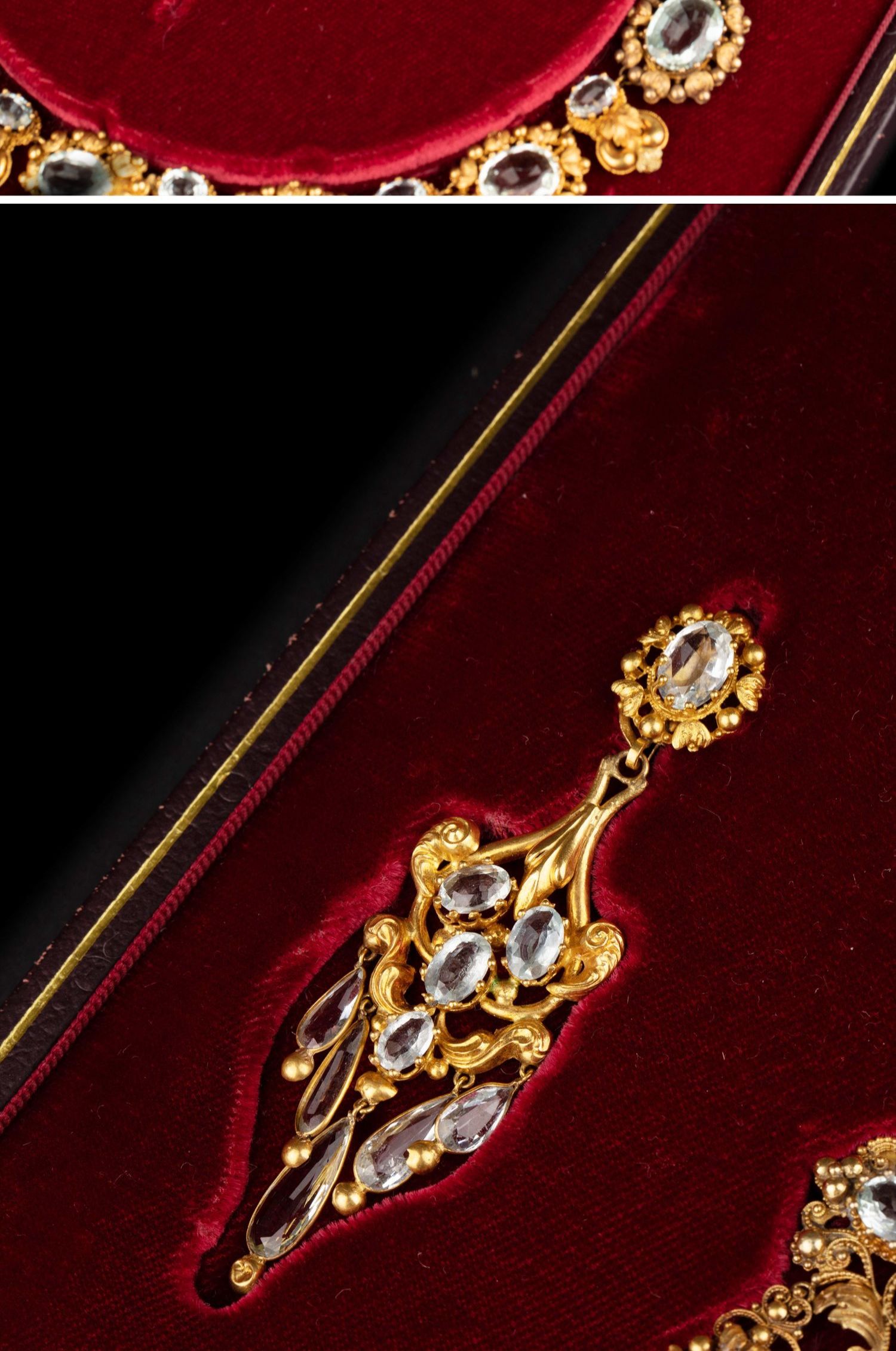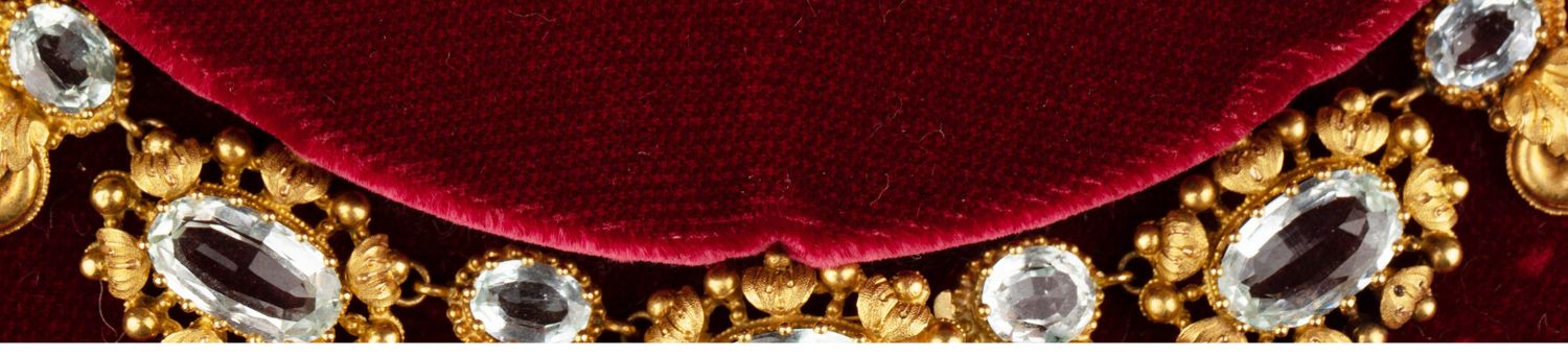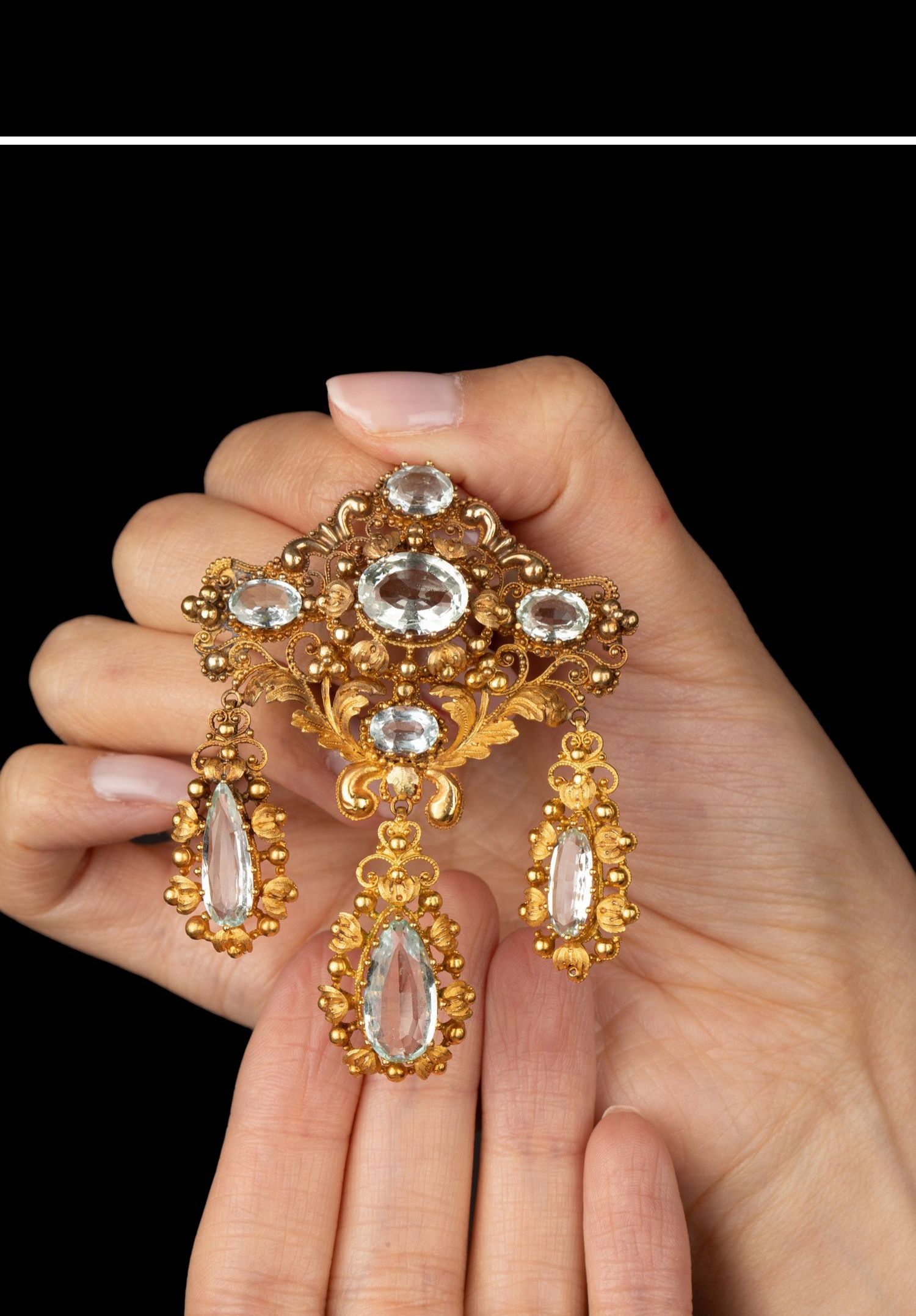 独角鹿西洋古董珠宝首饰套装浪漫主义风格黄金雕花镶嵌海蓝宝石