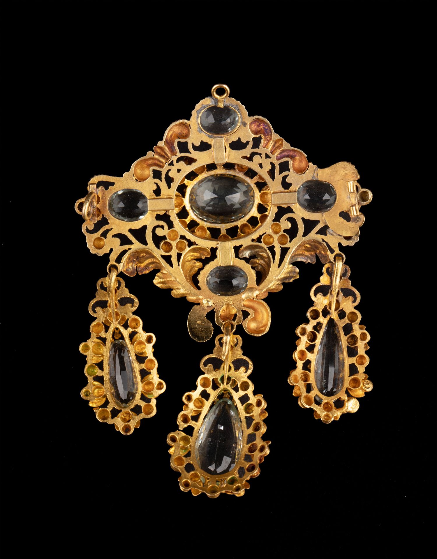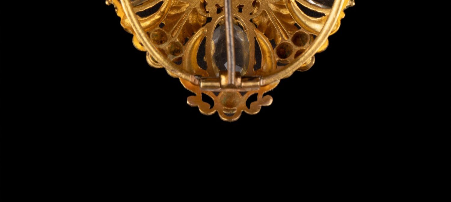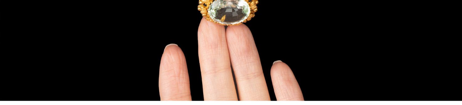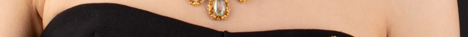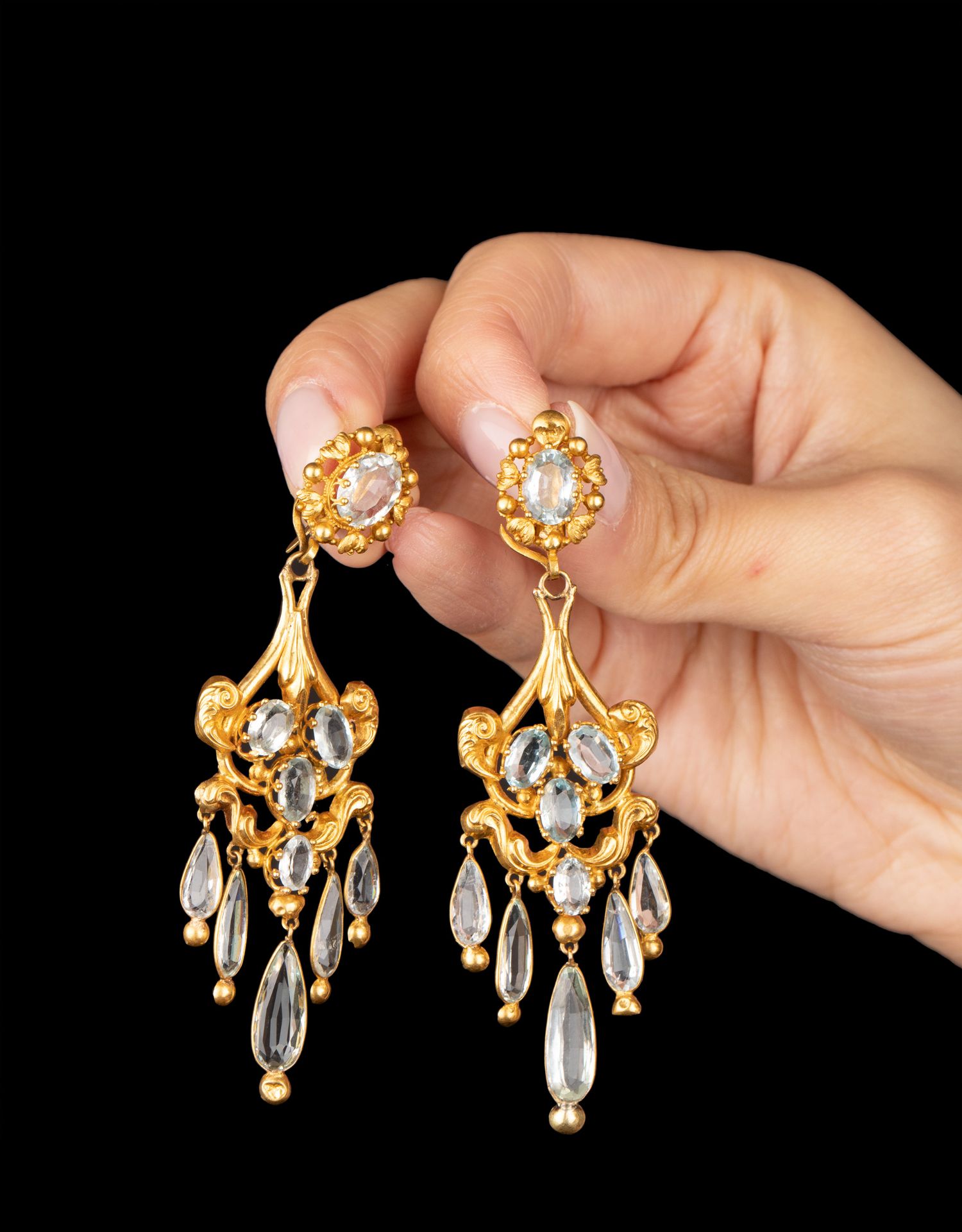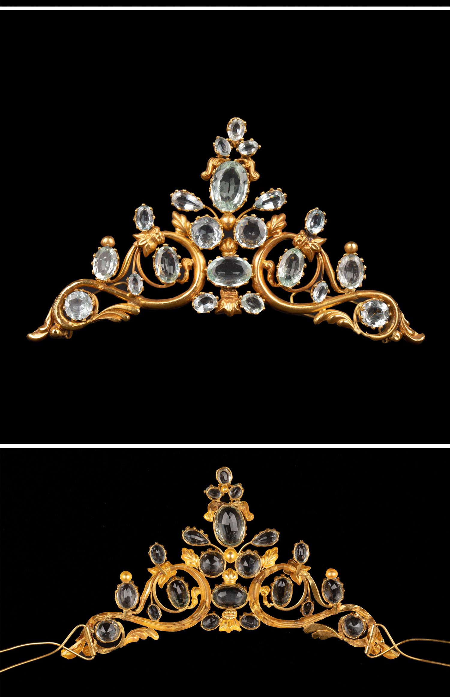 独角鹿西洋古董珠宝首饰套装浪漫主义风格黄金雕花镶嵌海蓝宝石