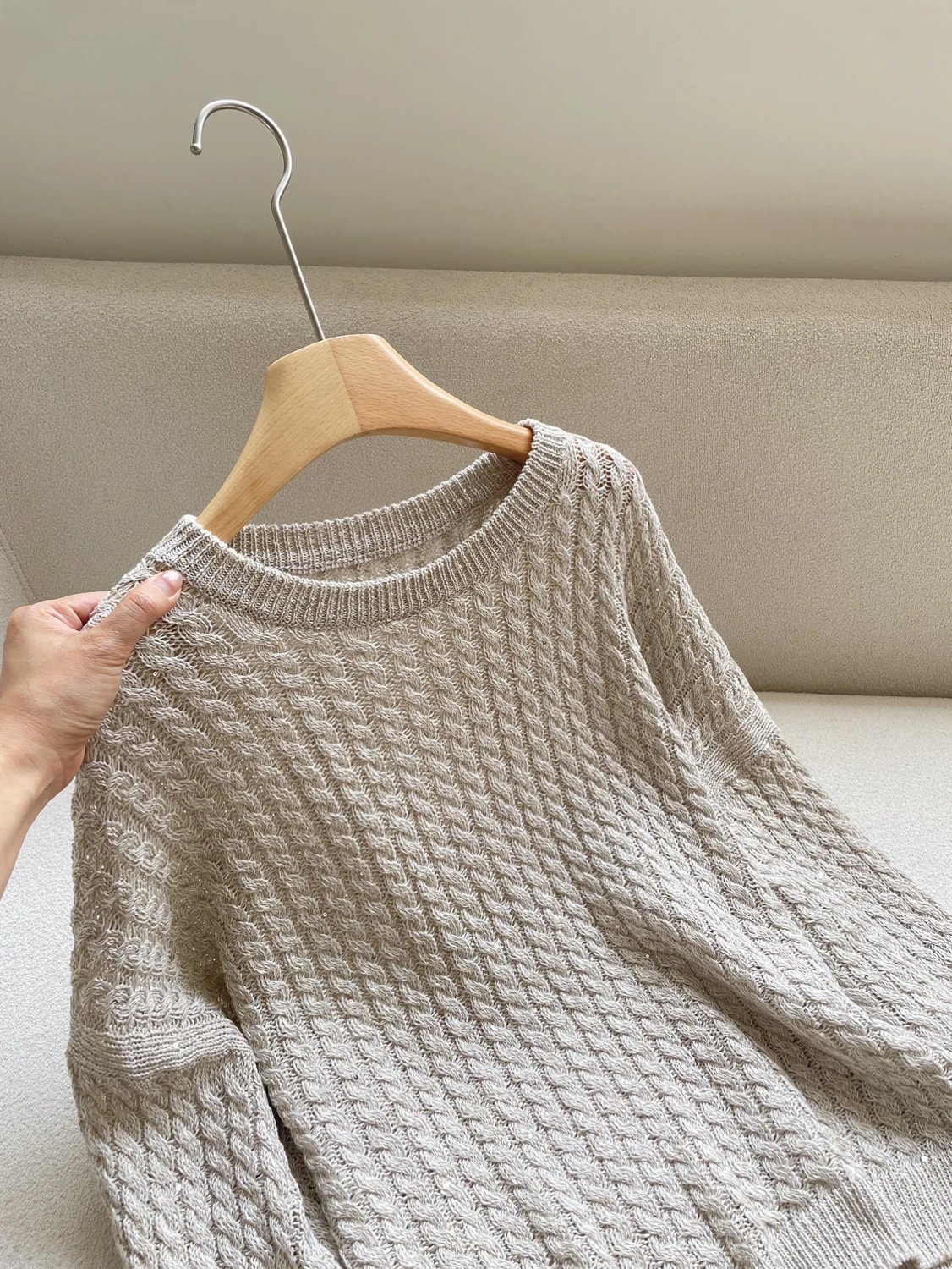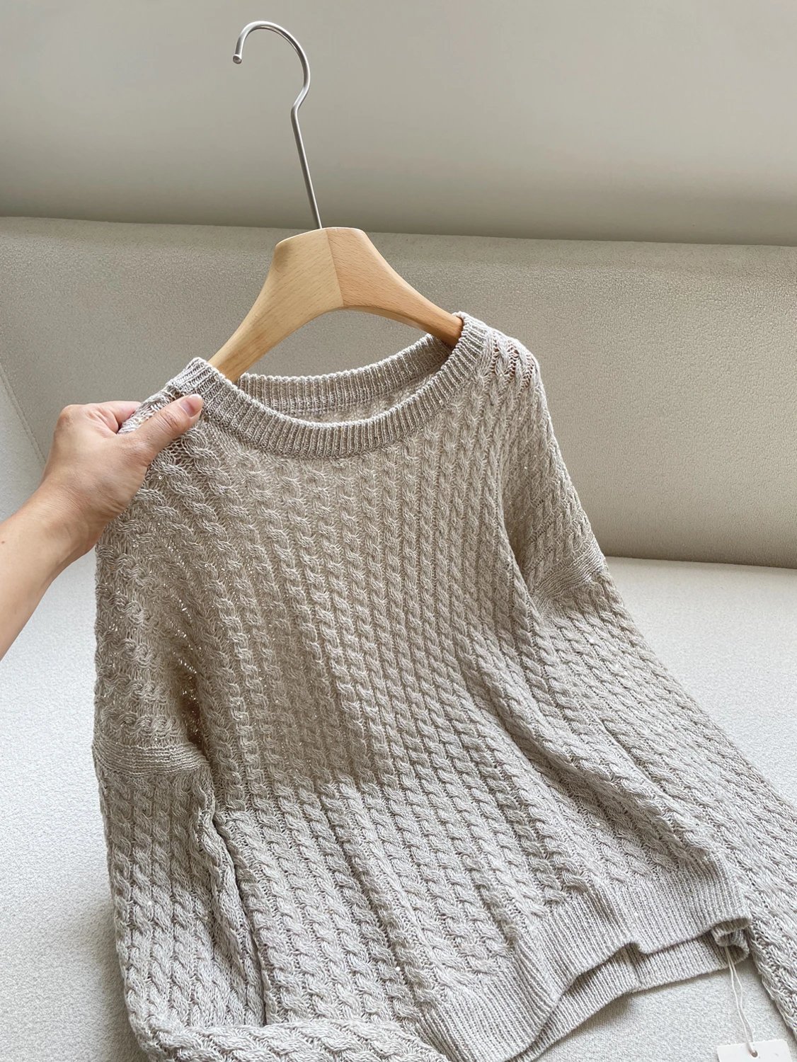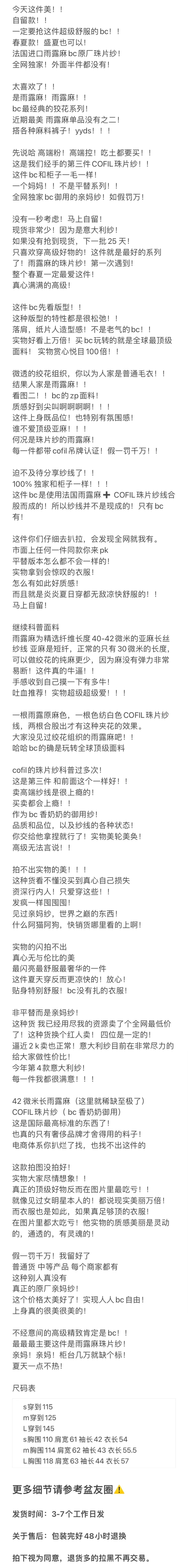 预售 重磅渠道 BC纸片纱亚麻罩衫 42微米法国雨露麻 COFIL珠片纱 合股针织置衫