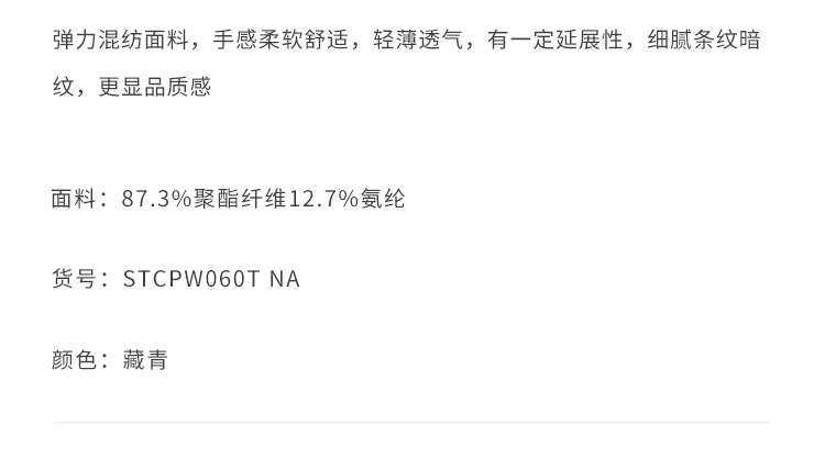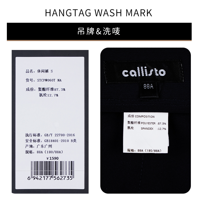 callisto藏青弹力混纺休闲裤 STCPW060T
