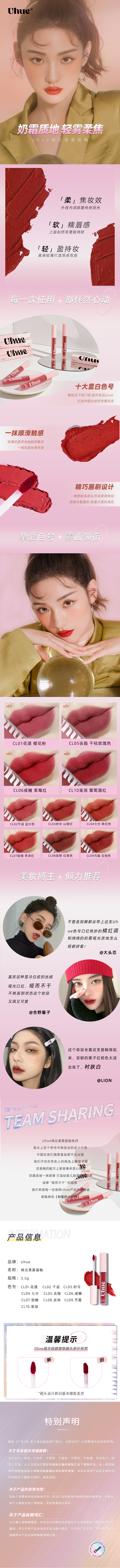 【第二件减10元】Uhue绵云柔雾唇釉奶霜丝绒雾面哑光女持久不掉色不沾杯口红显白
