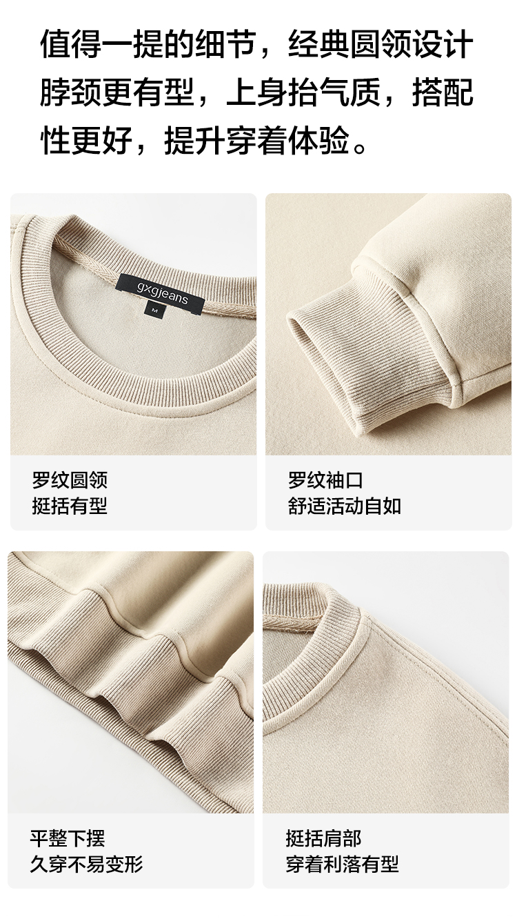 gxgjeans男装 男士圆领卫衣25秋款户外通勤简约百搭校园青少年套头卫衣打底衫K&C
