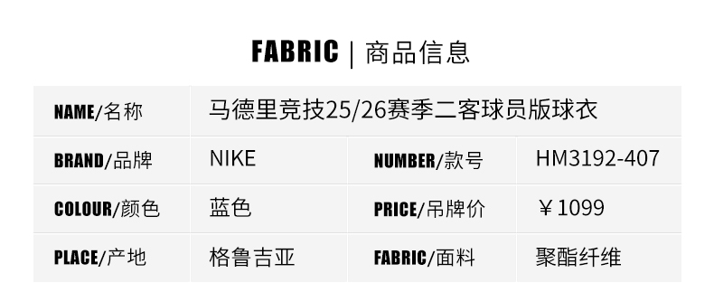 SFS耐克Nike25/26马德里竞技二客球员版球衣HM3192-407