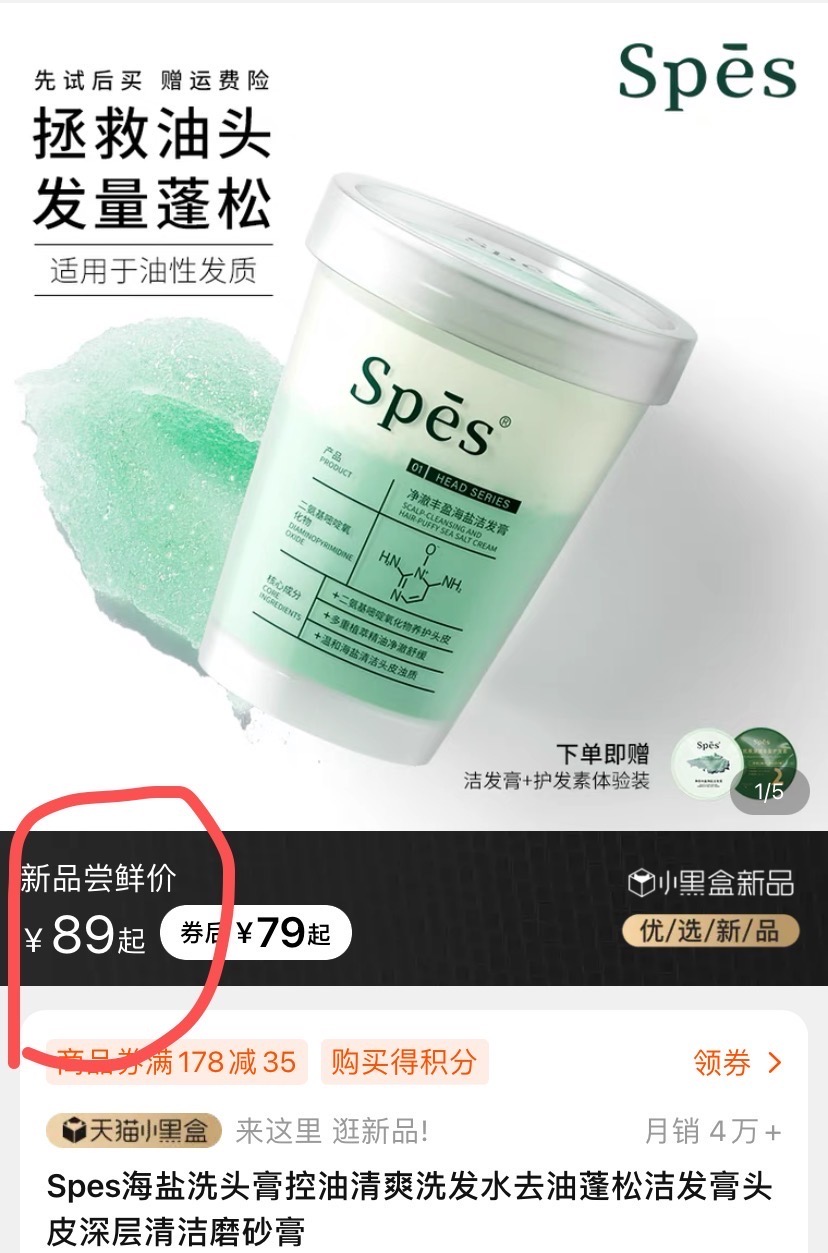 徐璐推荐!Spes海盐洗头膏控油清爽洁发膏蓬松去油洗发头皮清洁磨砂膏250g