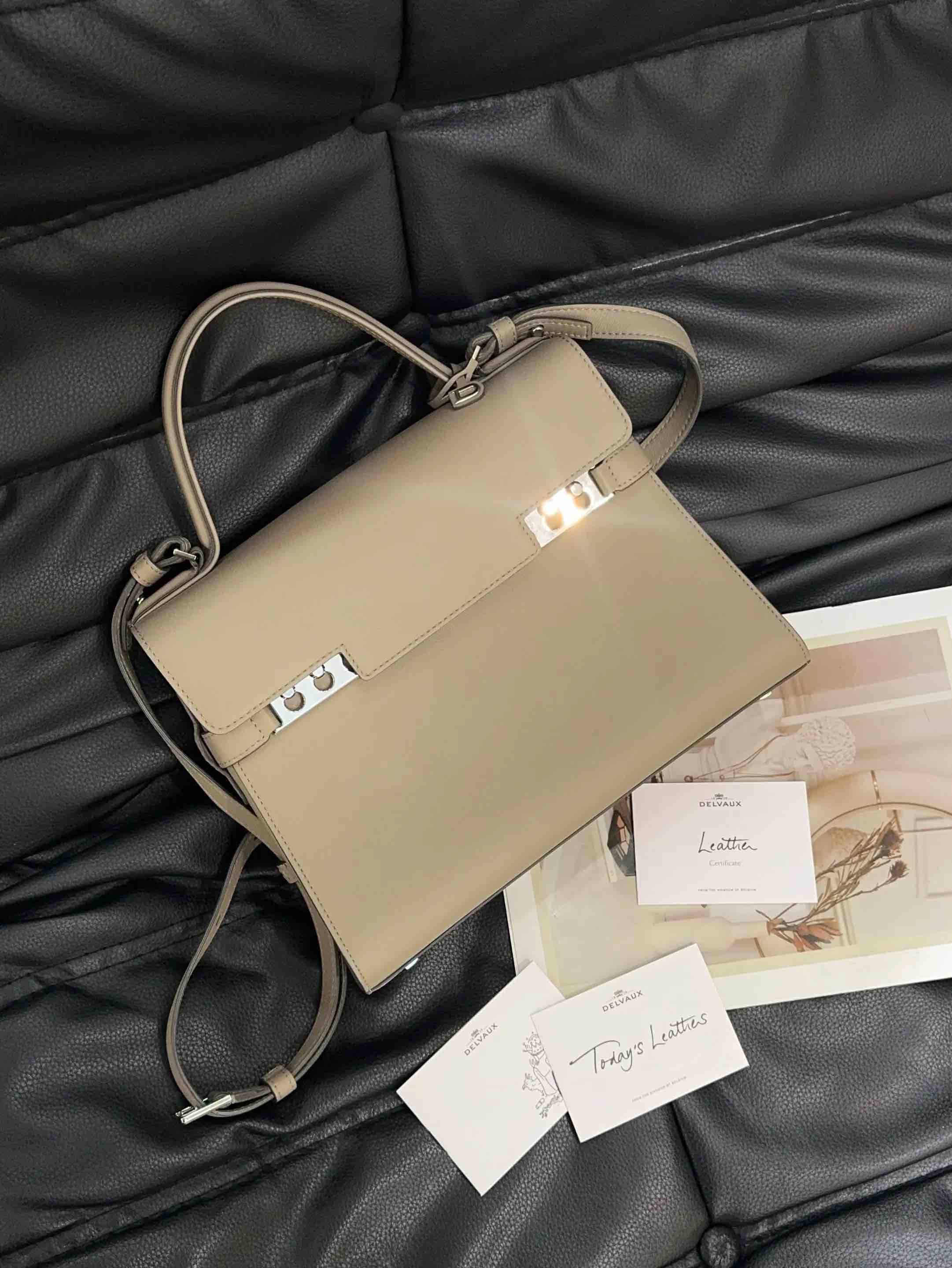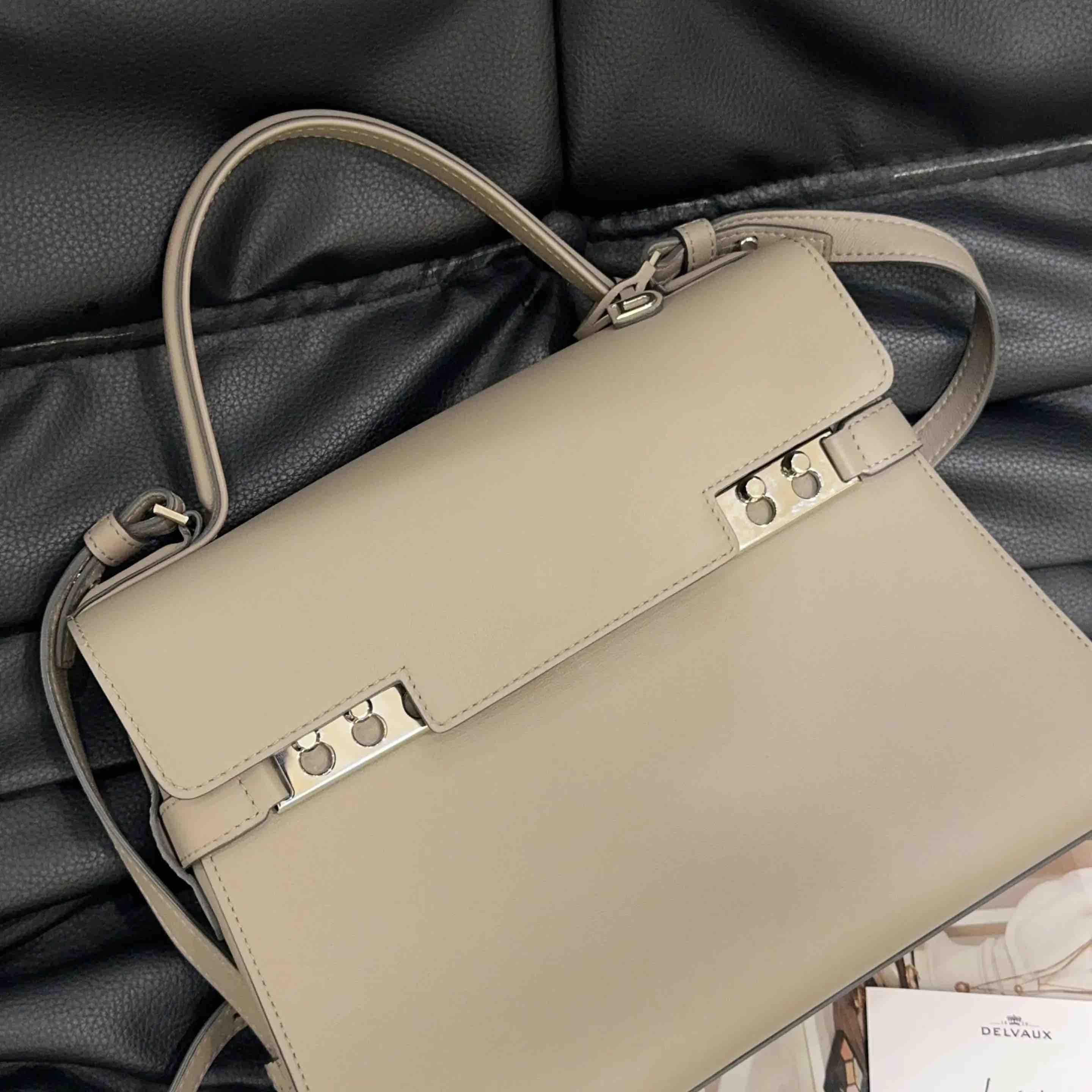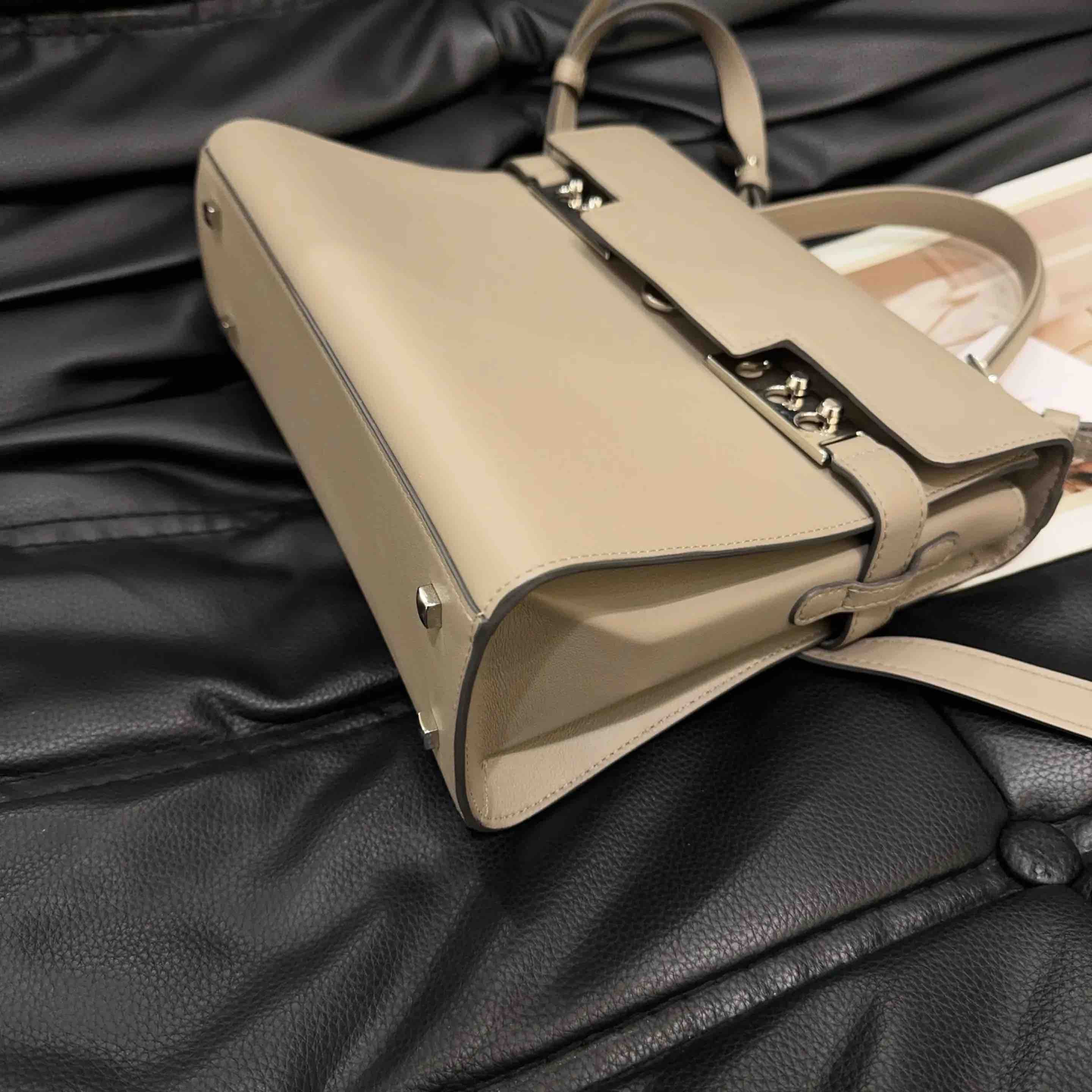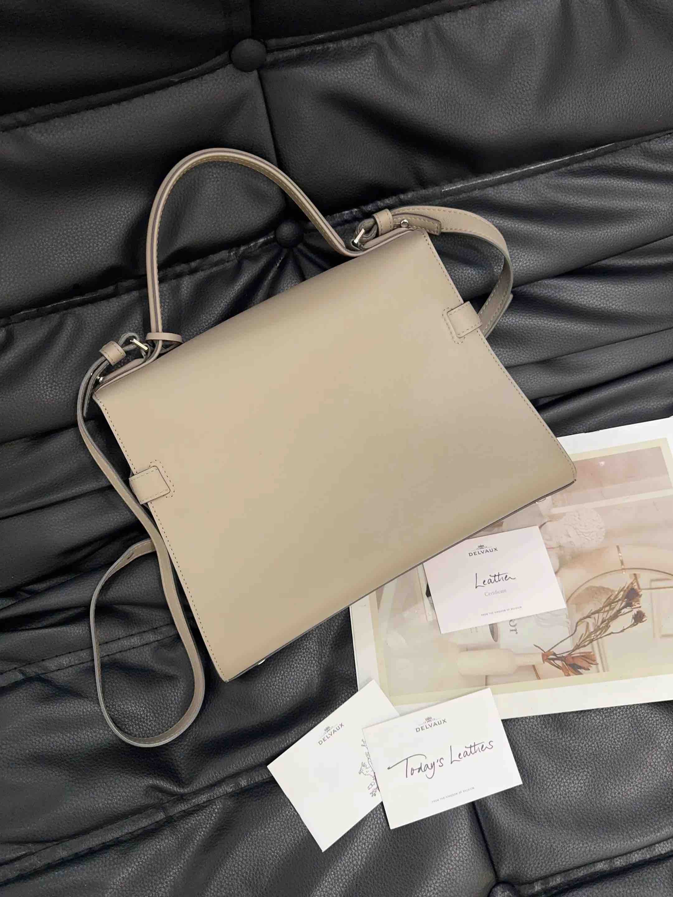 【商品详情】正品二手 德尔沃 Tempete 中号 大象灰 银扣 牛皮 手提包🪐97新 27*21 配件:说明书 肩带。kelly平替