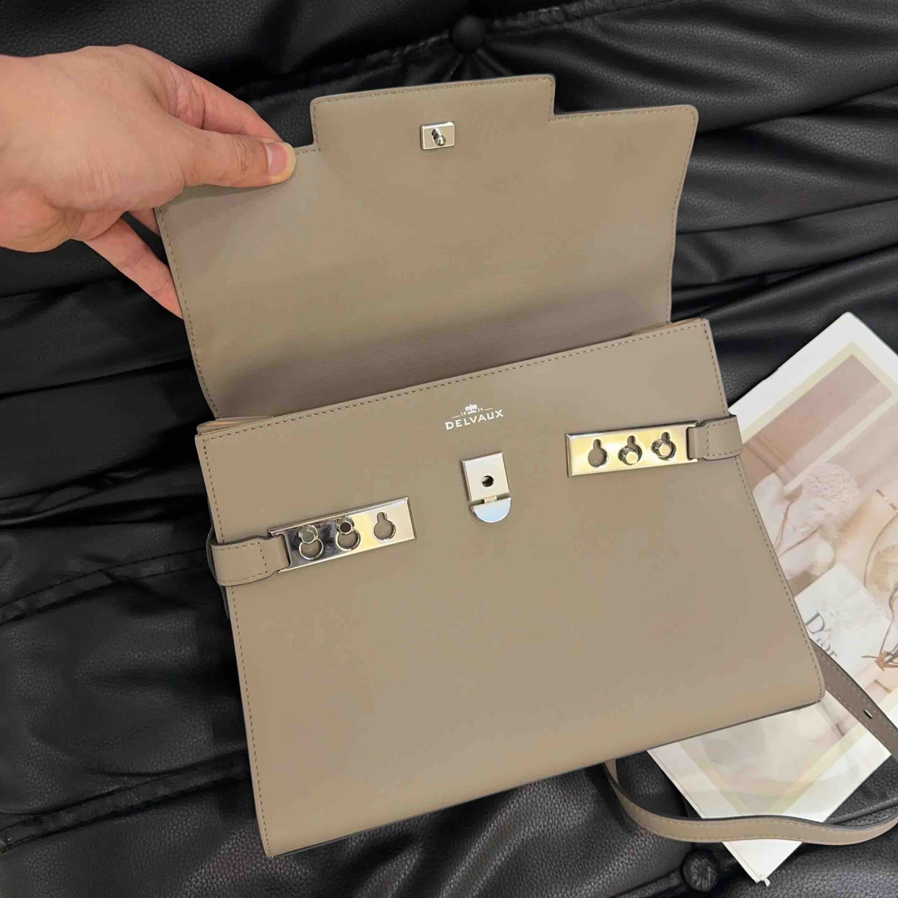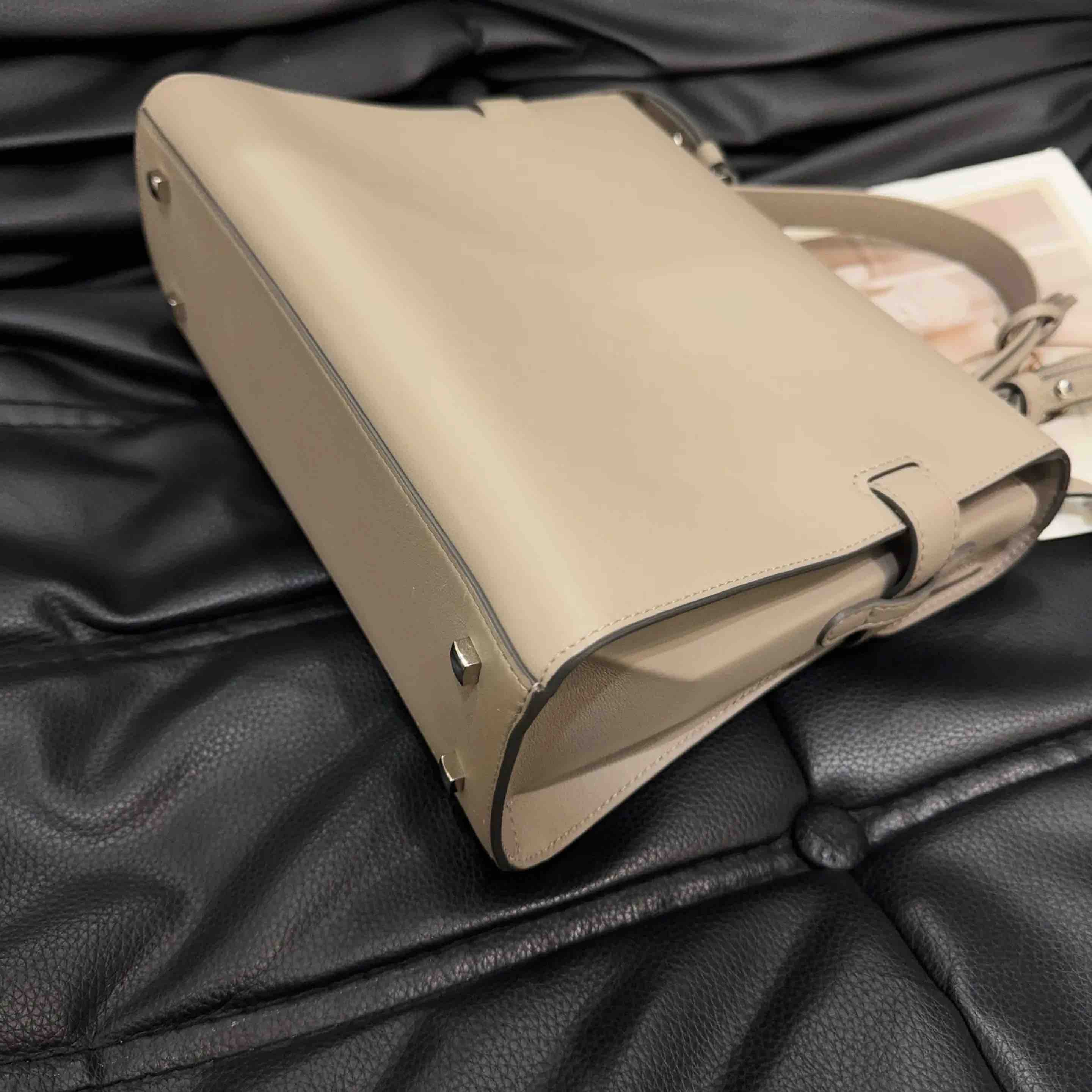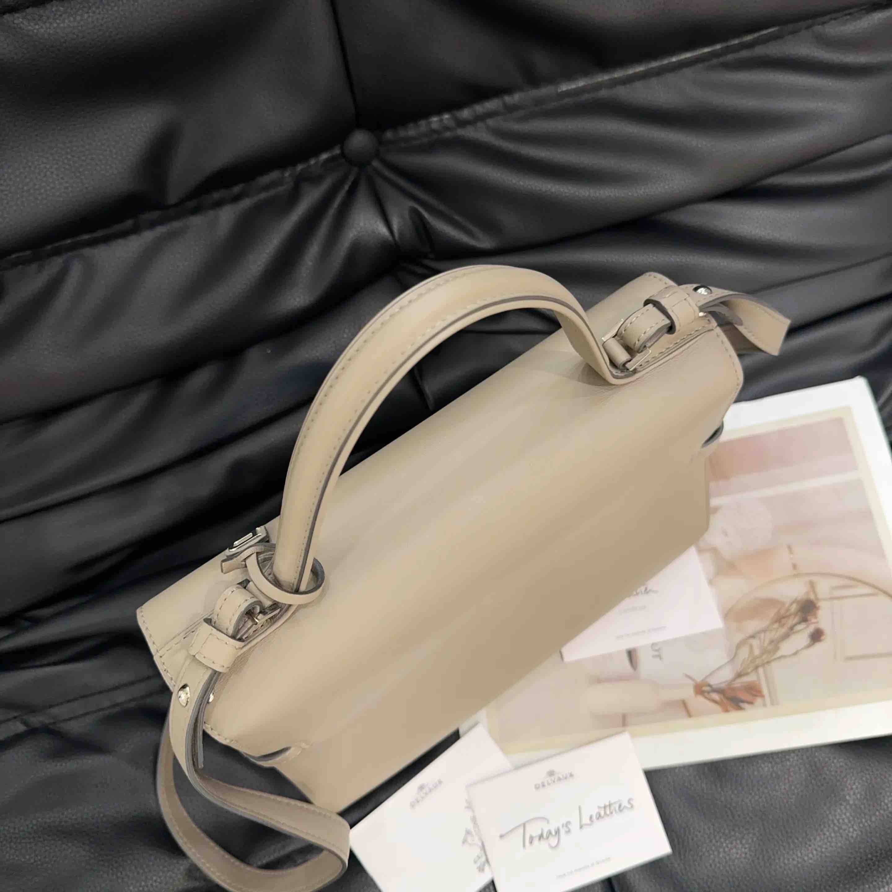 【商品详情】正品二手 德尔沃 Tempete 中号 大象灰 银扣 牛皮 手提包🪐97新 27*21 配件:说明书 肩带。kelly平替