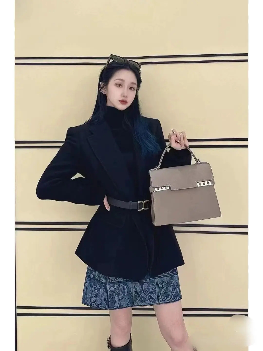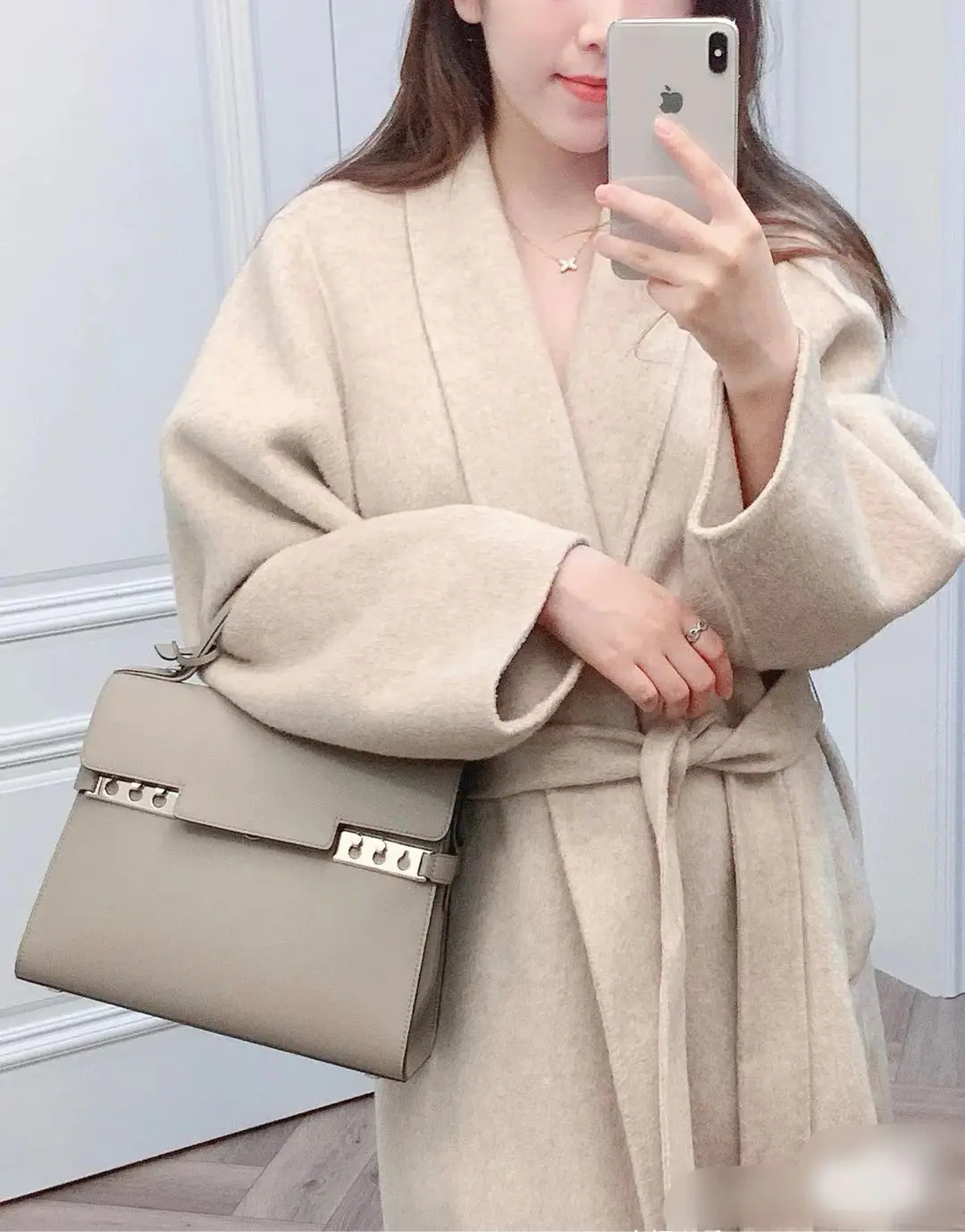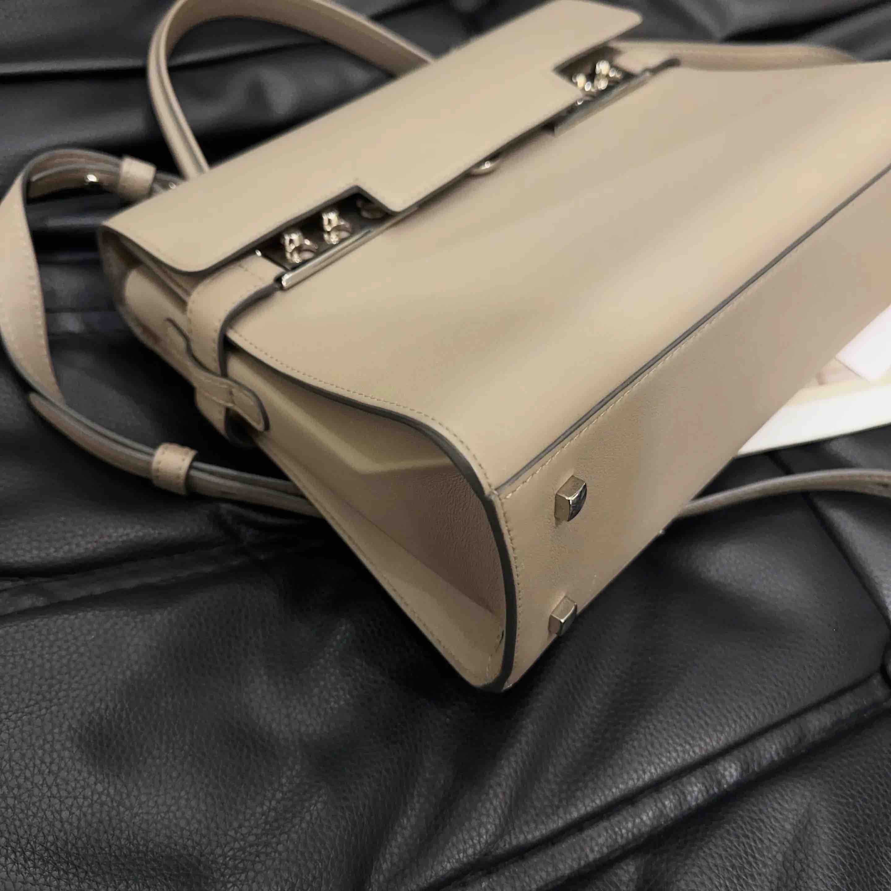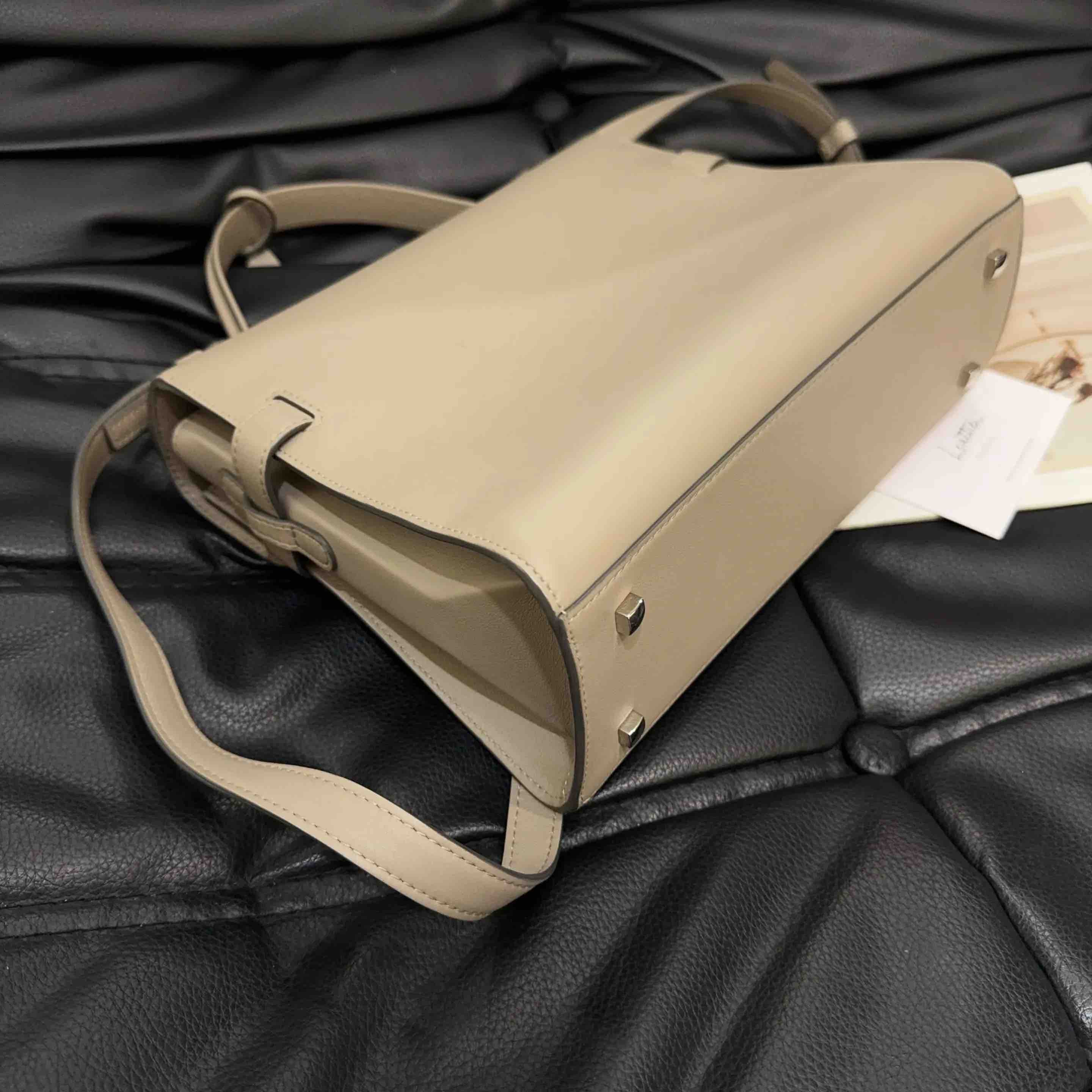 【商品详情】正品二手 德尔沃 Tempete 中号 大象灰 银扣 牛皮 手提包🪐97新 27*21 配件:说明书 肩带。kelly平替