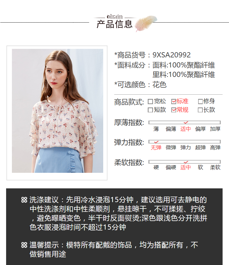 - “精致”是欧芮儿olrain品牌文化的核心,欧芮儿认为,精致的女人,不但要外在动人,更要内在迷人,内外兼修,有魅力、有气质、有内涵,自信而不自傲,优雅而不矫揉,自有万种风情而不轻浮,更不故作矜持。