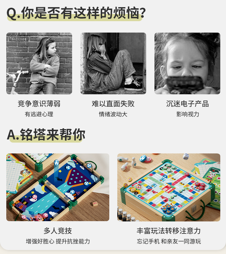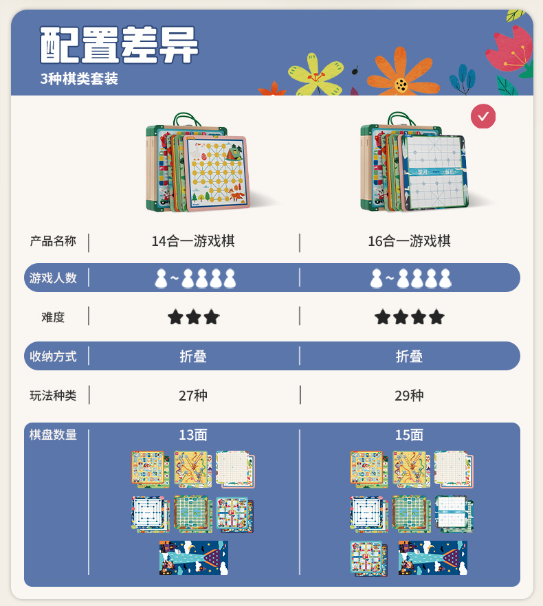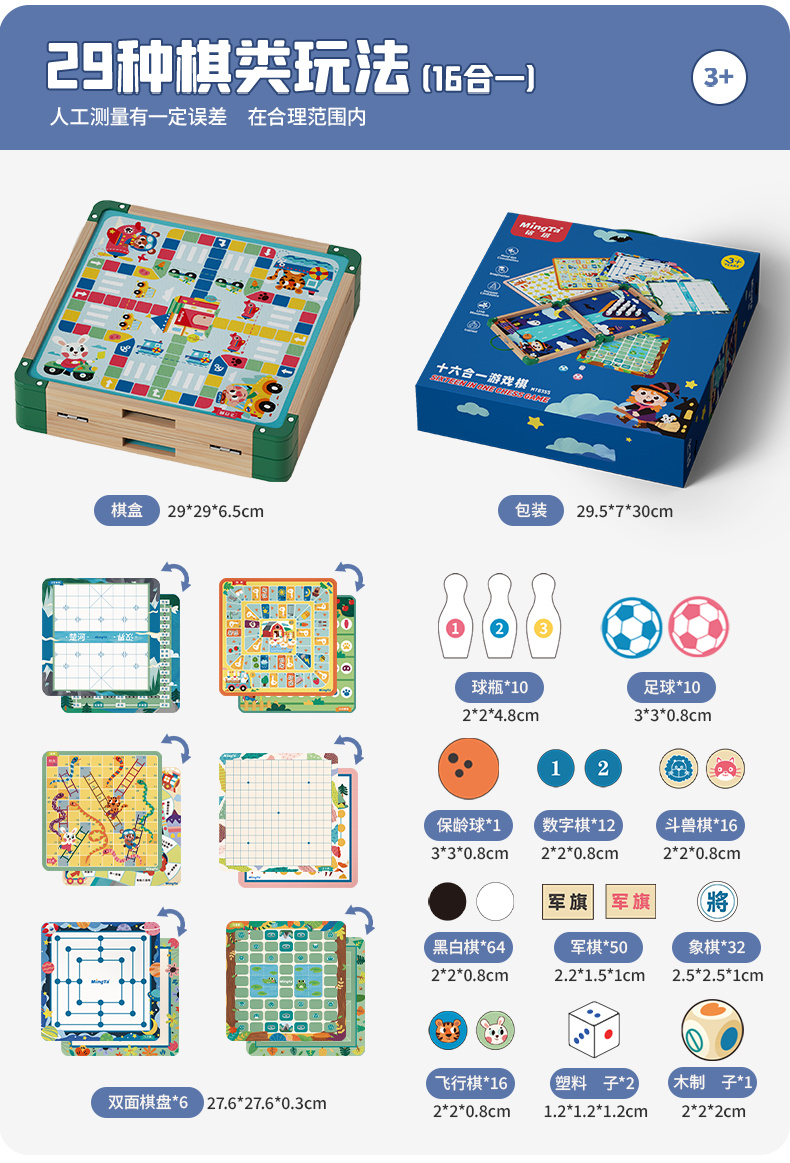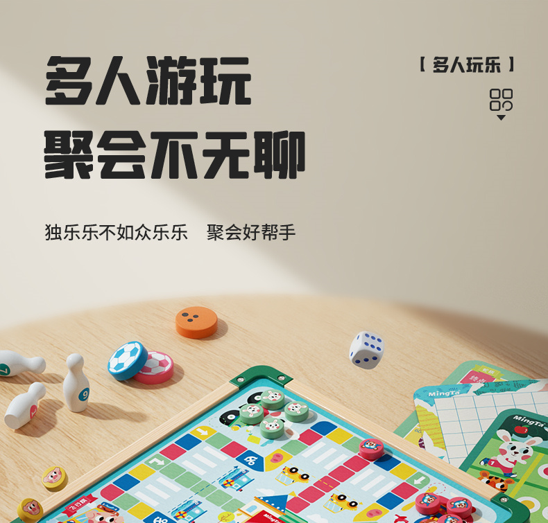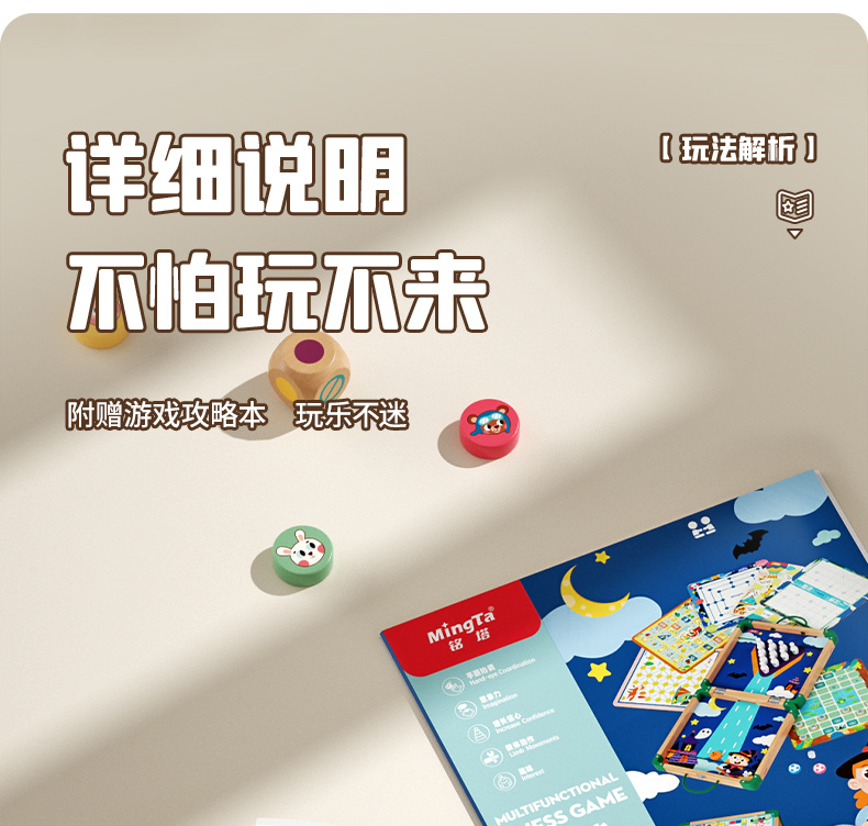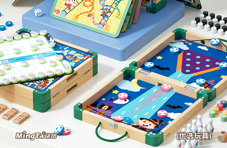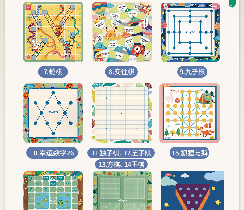 【铭塔】儿童棋类多合一飞行棋益智玩具冒险五子棋蛇斗兽棋多功能十六合一游戏棋十四合一(升级新款)