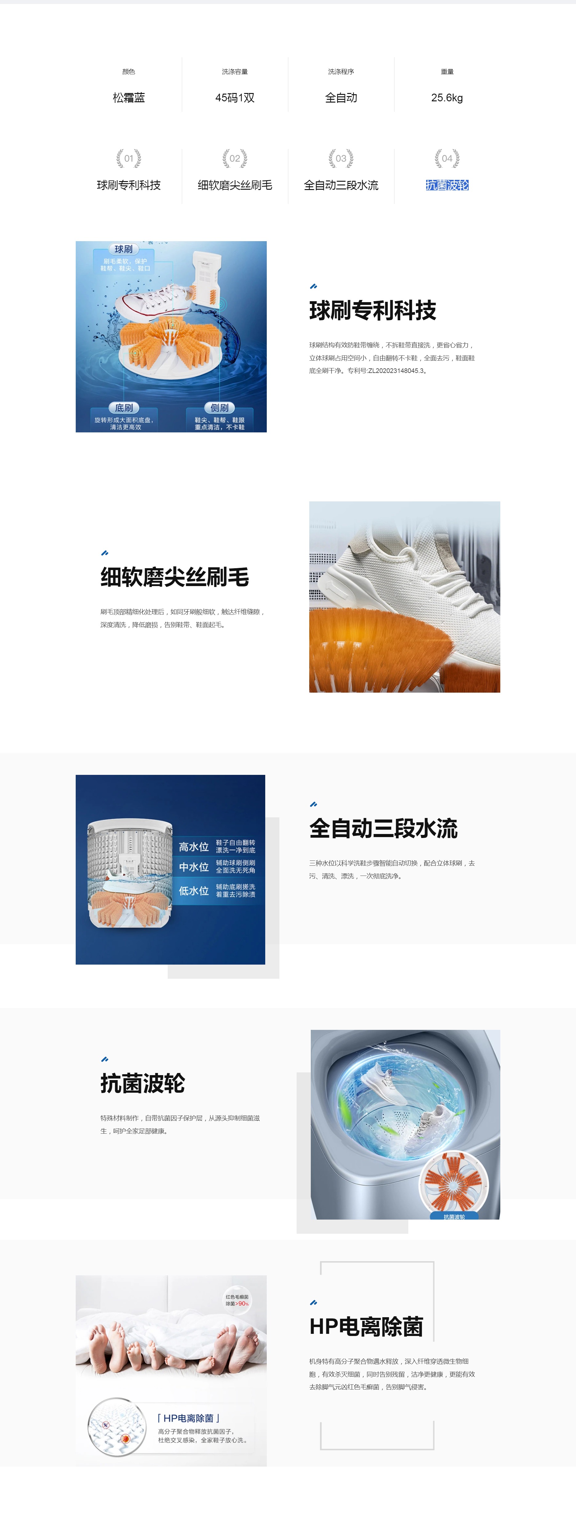 海尔 洗鞋机 HQ1-TB378 3KG 45码1双 变频 一级能效 破轮式 松霜蓝 全自动