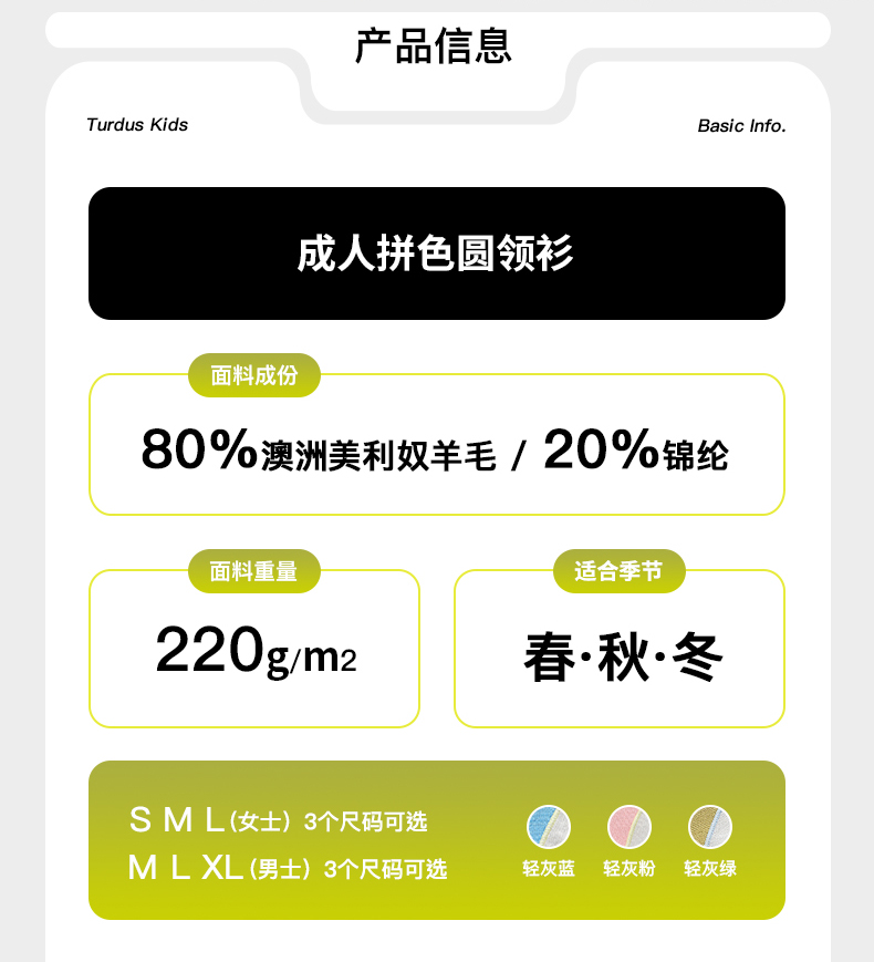 【成人拼色圆领衫】Turdus成人男女拼色圆领衫 长袖T恤