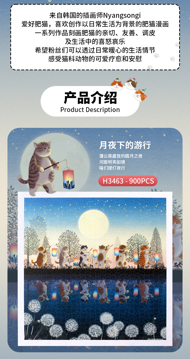 900片 平面塑料拼图 H3463 艺术触感系列-Nyangsongi-月夜下的游行