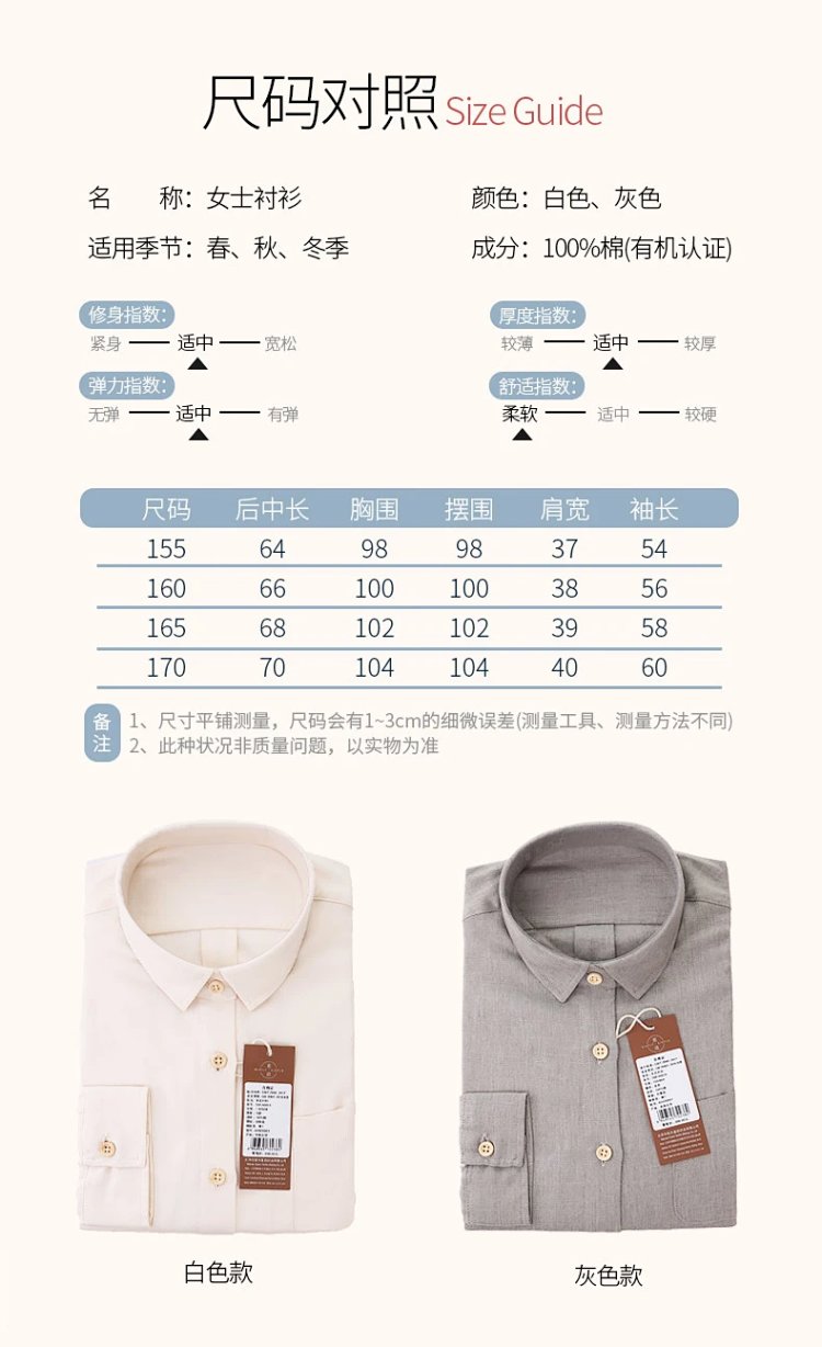 有机棉女式衬衫 100%棉 春秋冬时尚简约 舒适百搭 靓丽女性美 可休闲可商务 素道敦煌天然有机彩棉织造 舒适安全健康 [漳州仓]