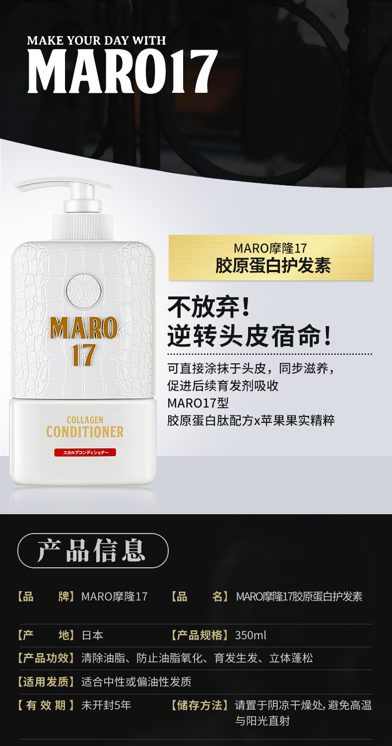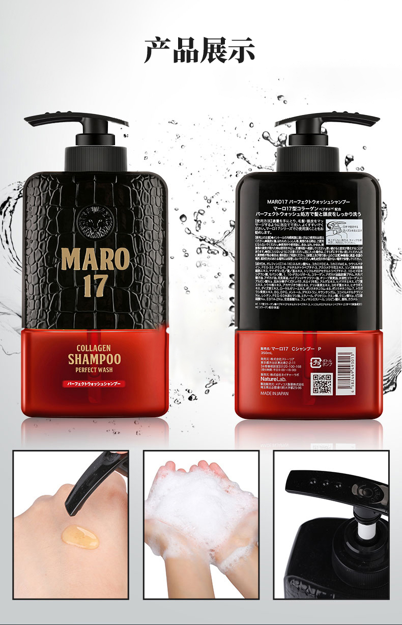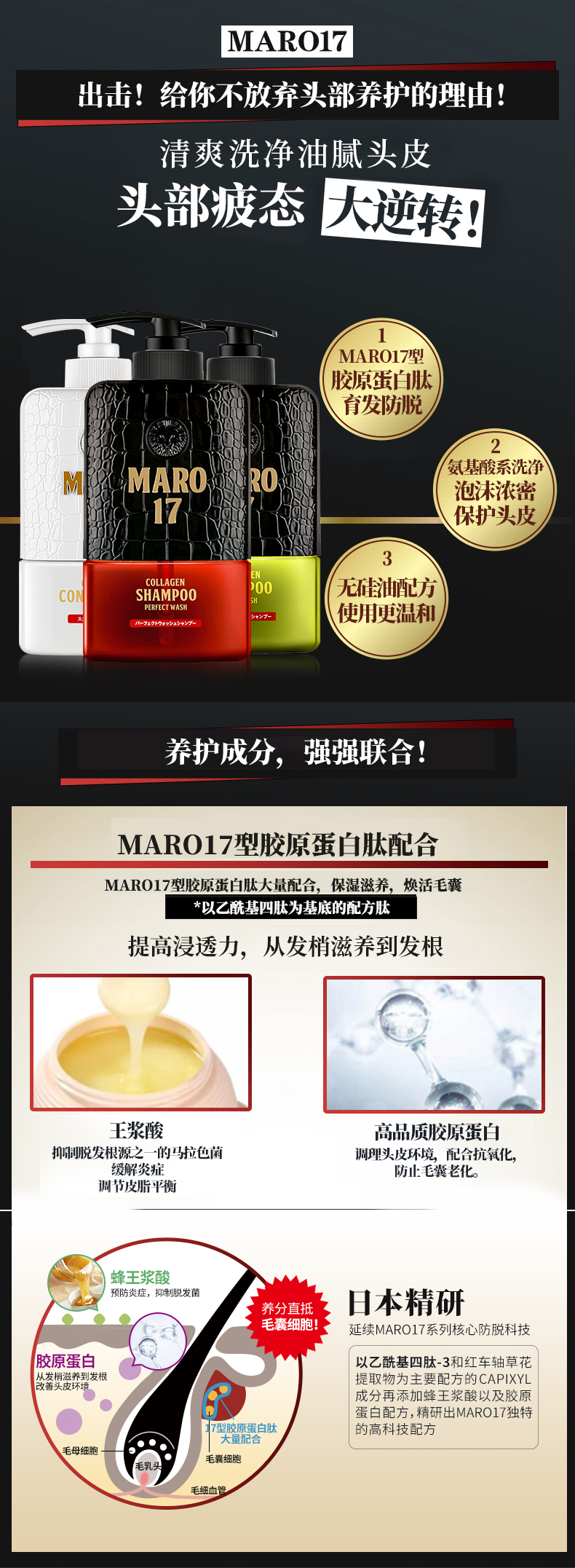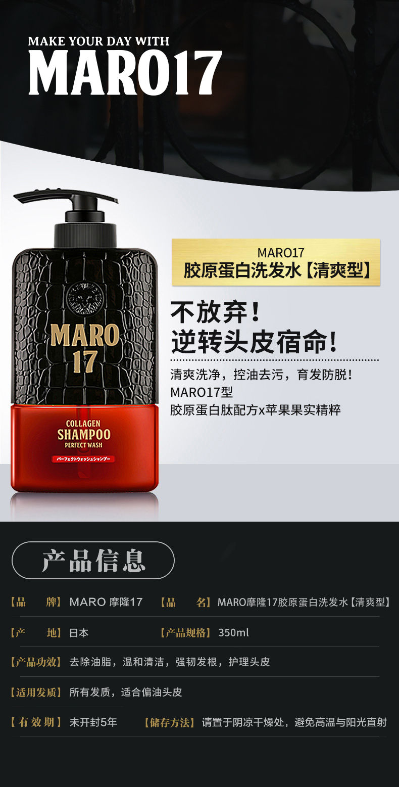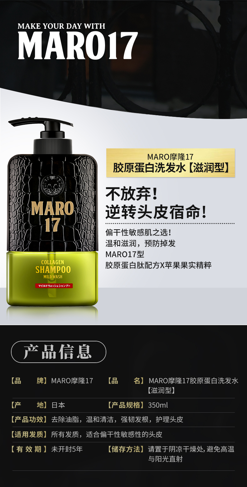 MARO日本进口MARO17胶原蛋白洗发水男士无硅油去屑清爽控油蓬松显发量 温和版350ml 改善毛躁(绿色)