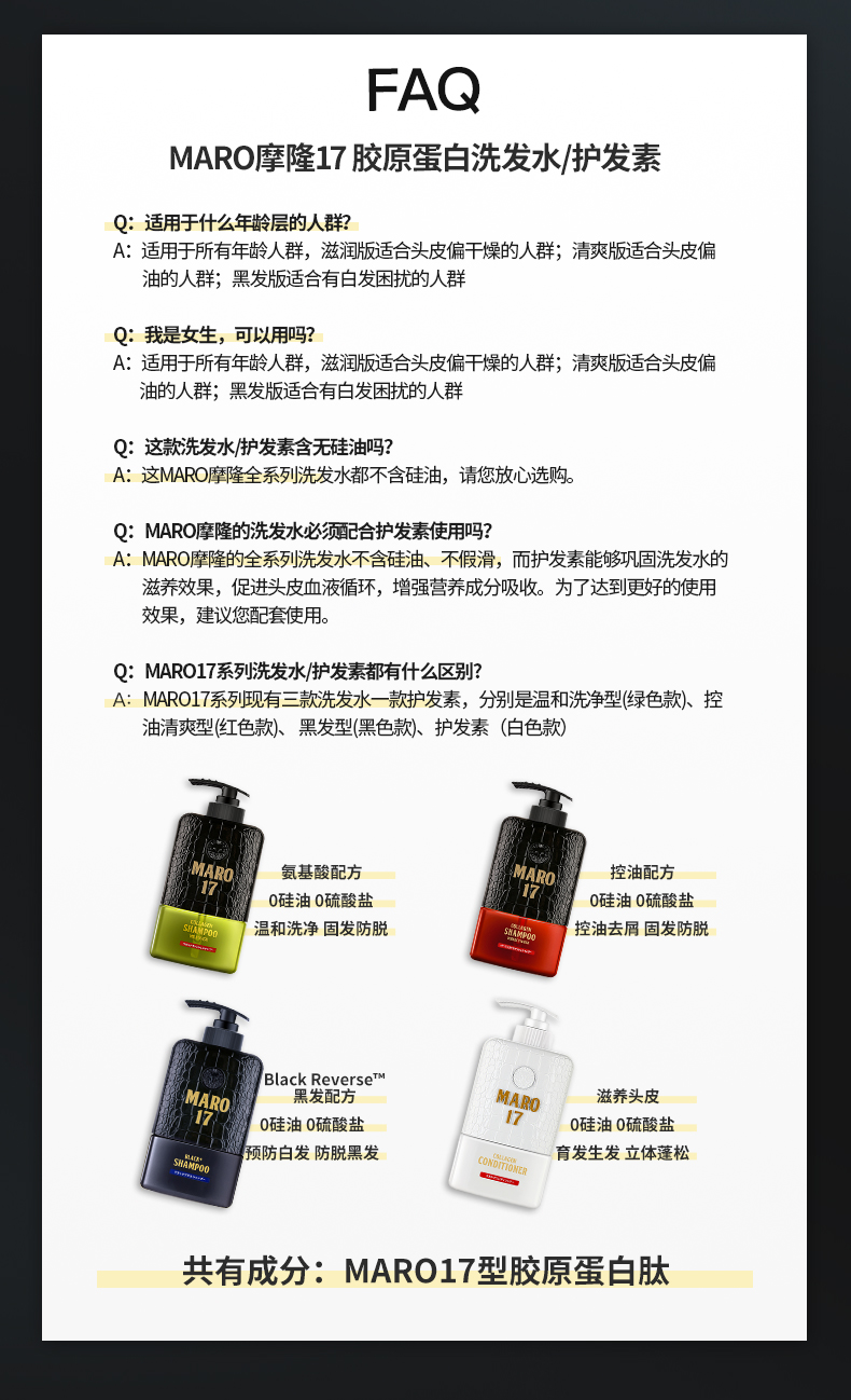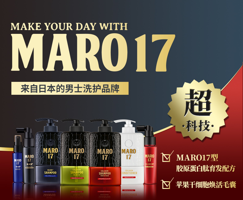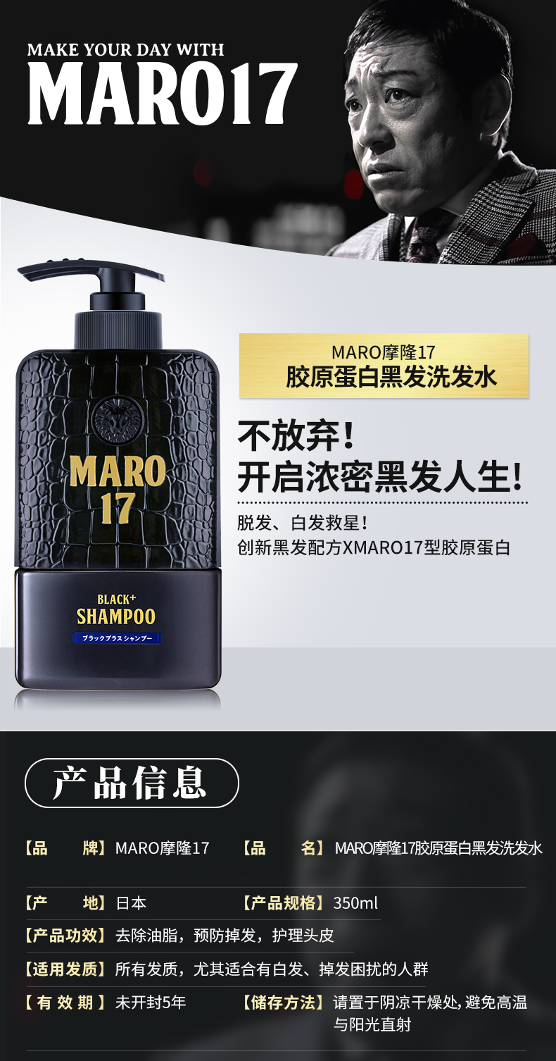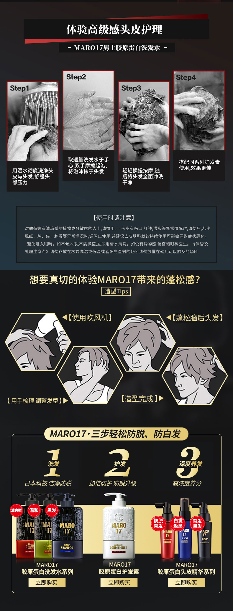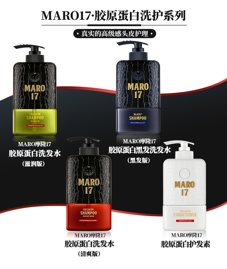 MARO日本进口MARO17胶原蛋白洗发水男士无硅油去屑清爽控油蓬松显发量 温和版350ml 改善毛躁(绿色)