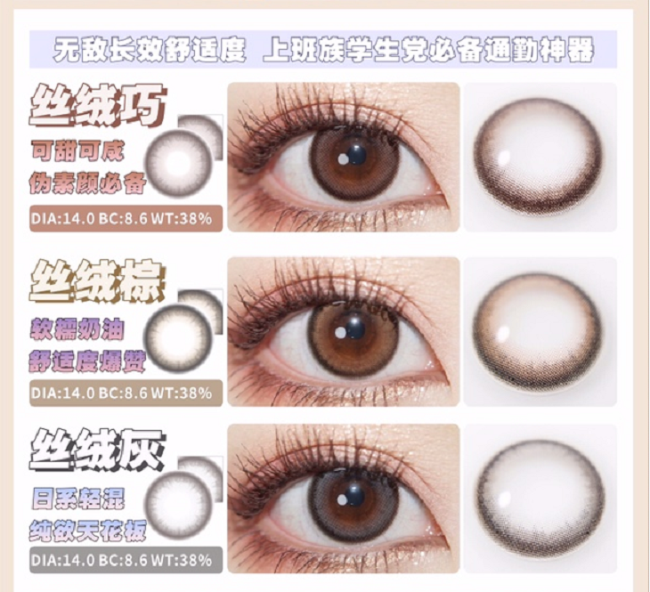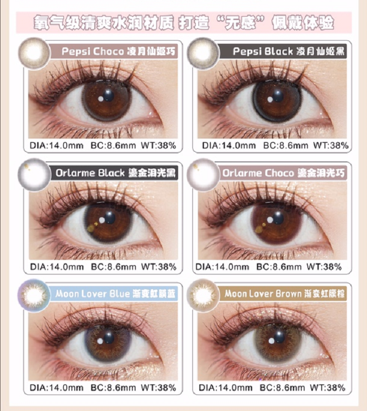 镜片材质: 硅水凝胶年抛