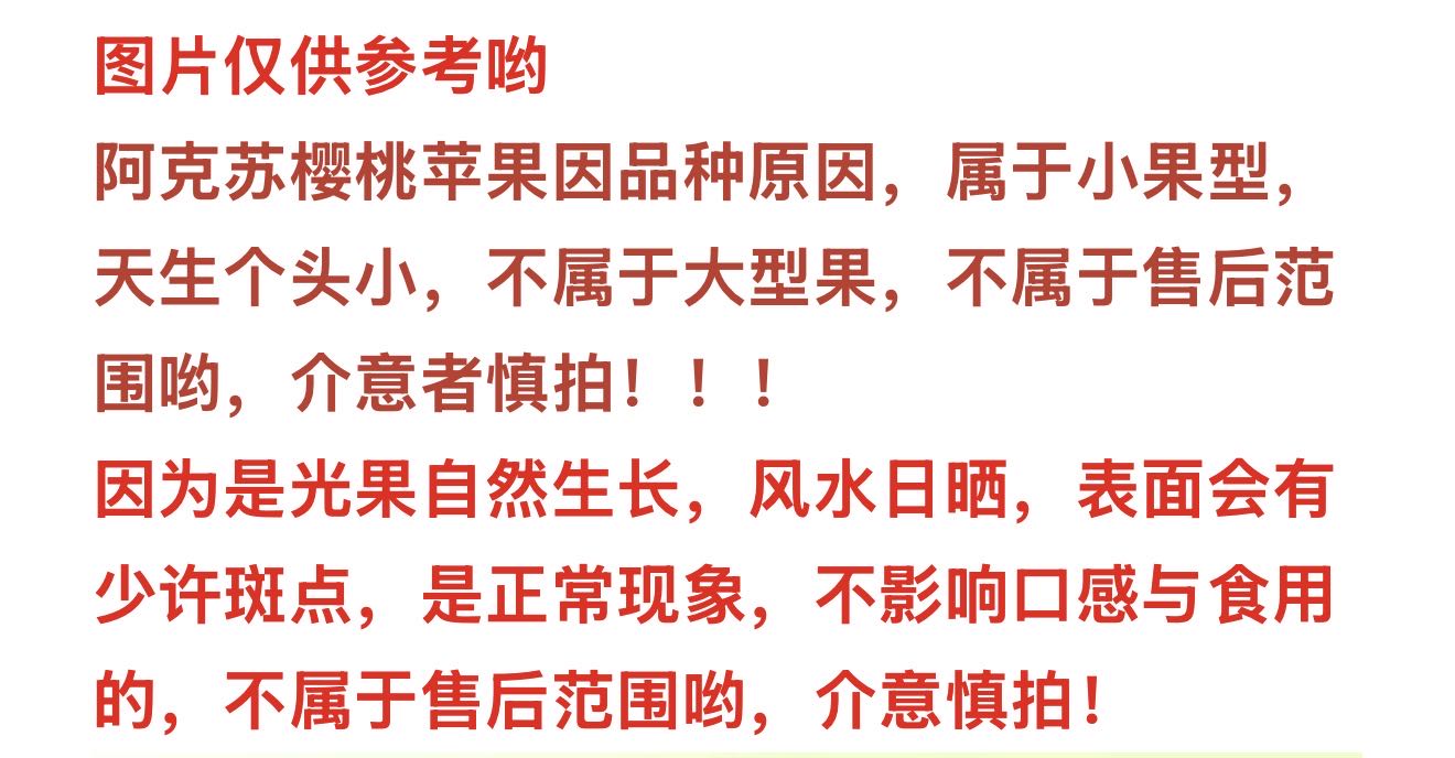 【温馨提示】阿克苏樱桃苹果天生个头小,不属于大型果,介意者慎拍奥!!!