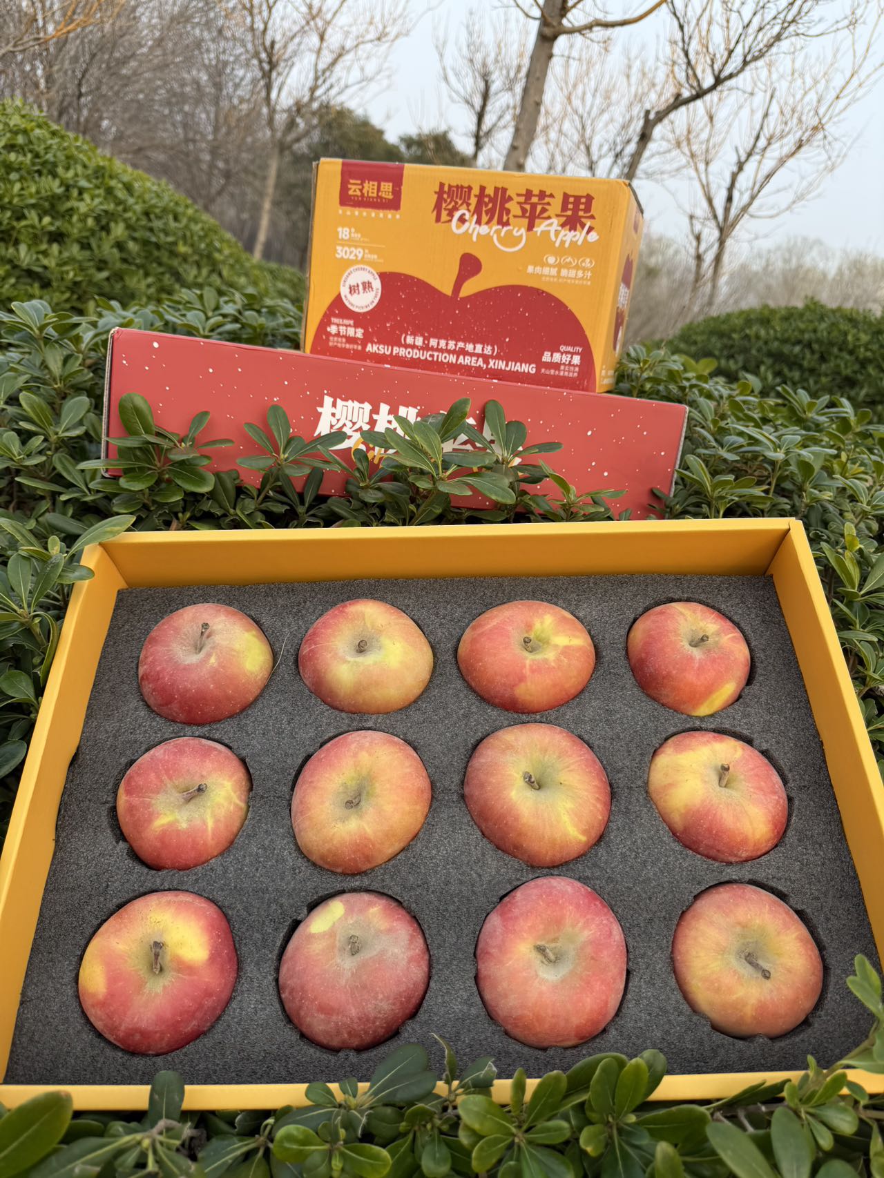 阿克苏樱桃苹果|一口爱上的新疆甜🍎 小巧红润,天然果霜,颜值在线。 脆甜多汁,果肉细腻无渣, 清甜不腻,老人小孩都爱吃。 来自阿克苏的阳光鲜果, 一口吃到新疆好味道~