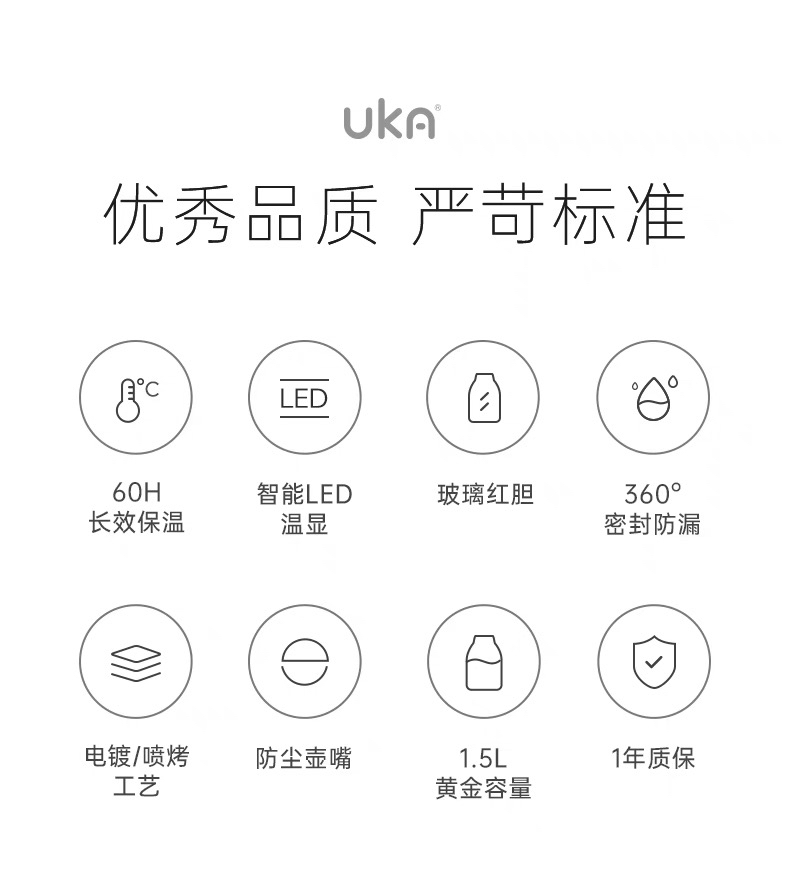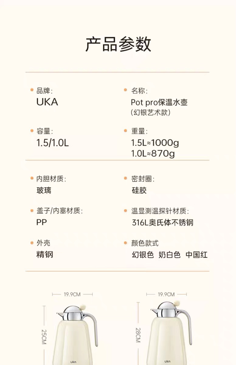 UKA保温壶家用高颜值大容量高级轻奢玻璃内胆暖水壶热水壶