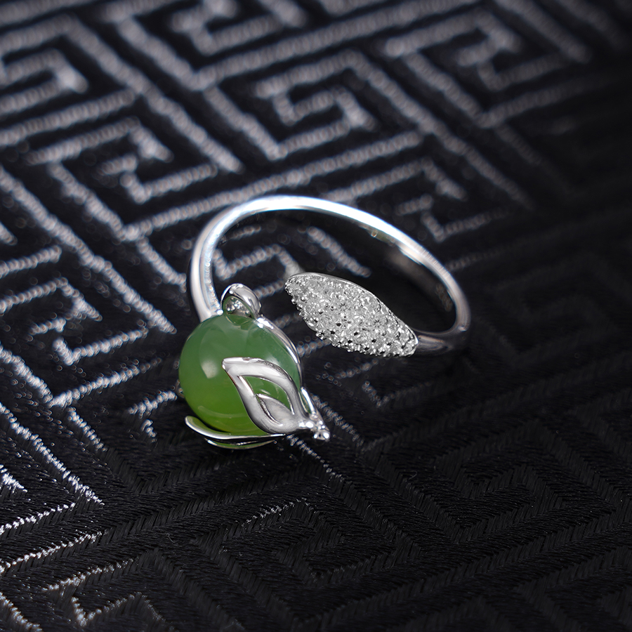 【寓意】:作品设计灵感源自狐狸,和田碧玉雕琢镶嵌,立体有型,华丽动人。象征魅力无限,好运绵绵。