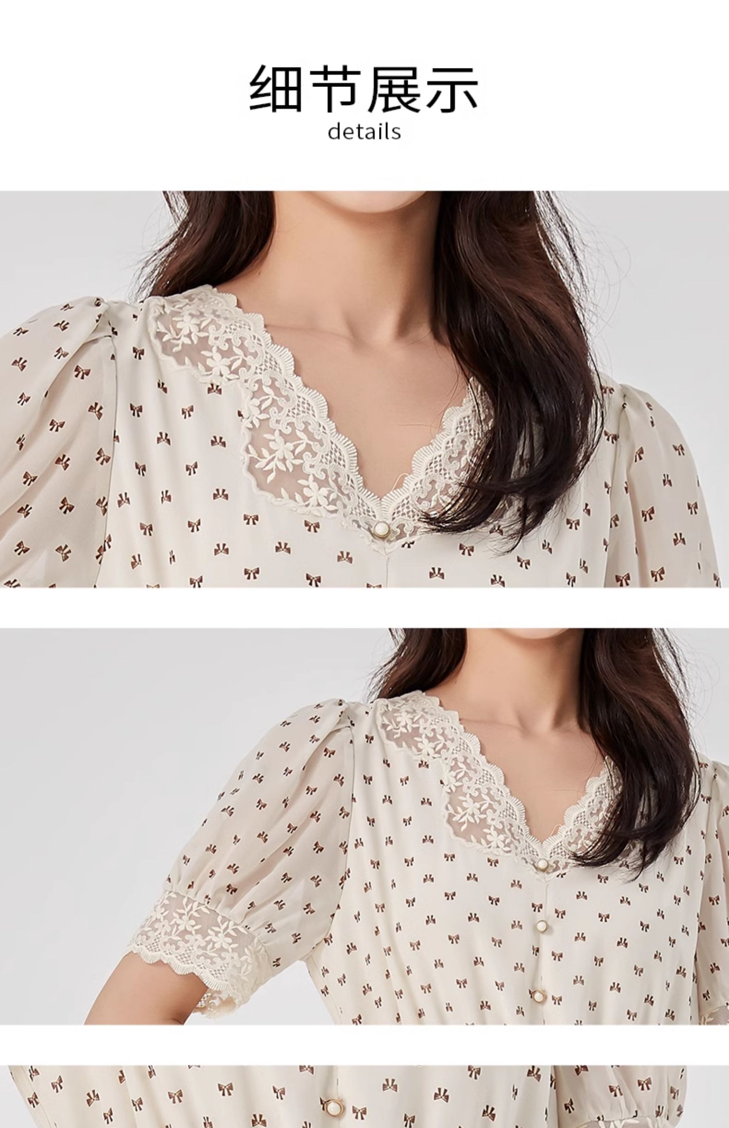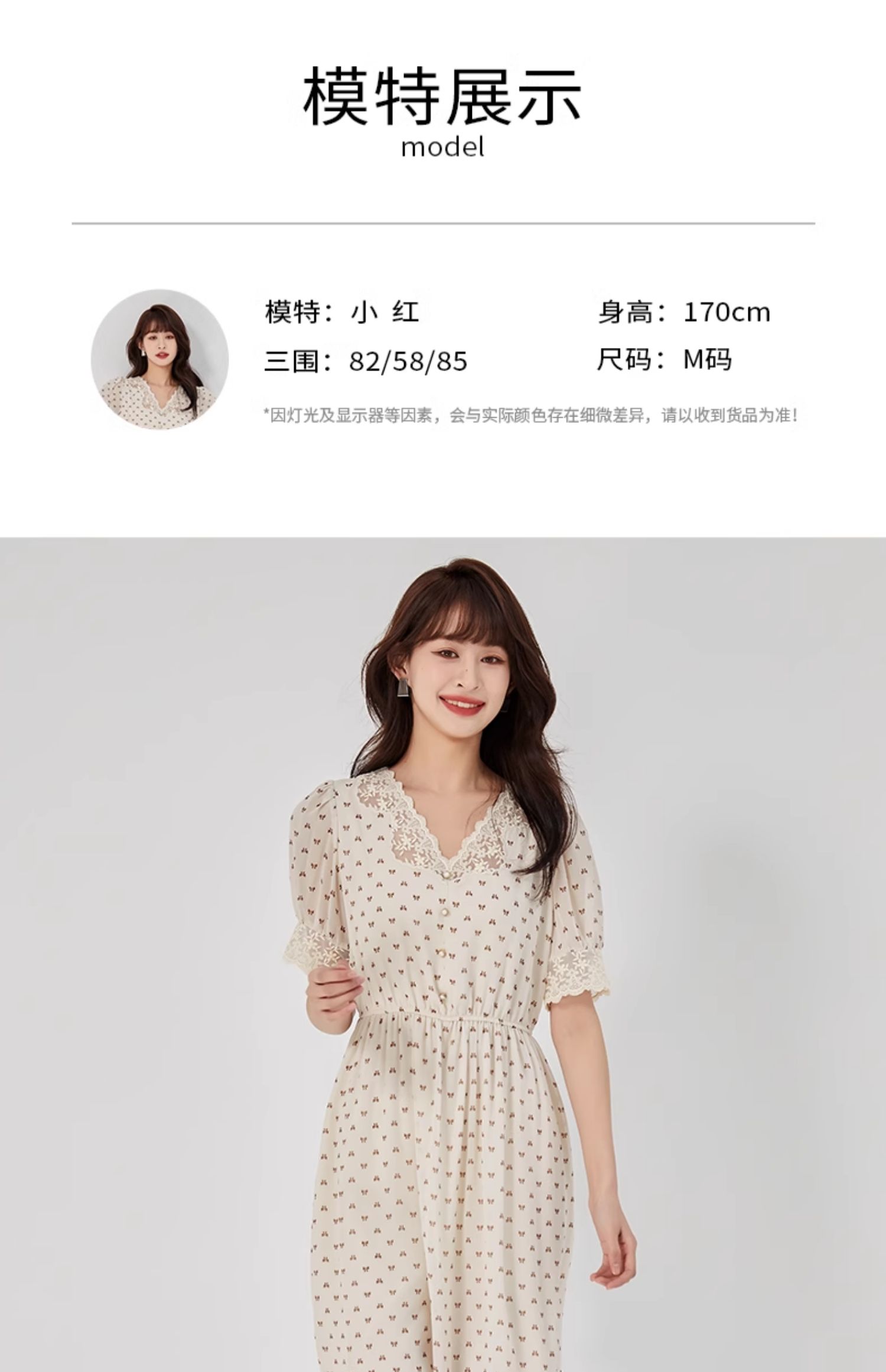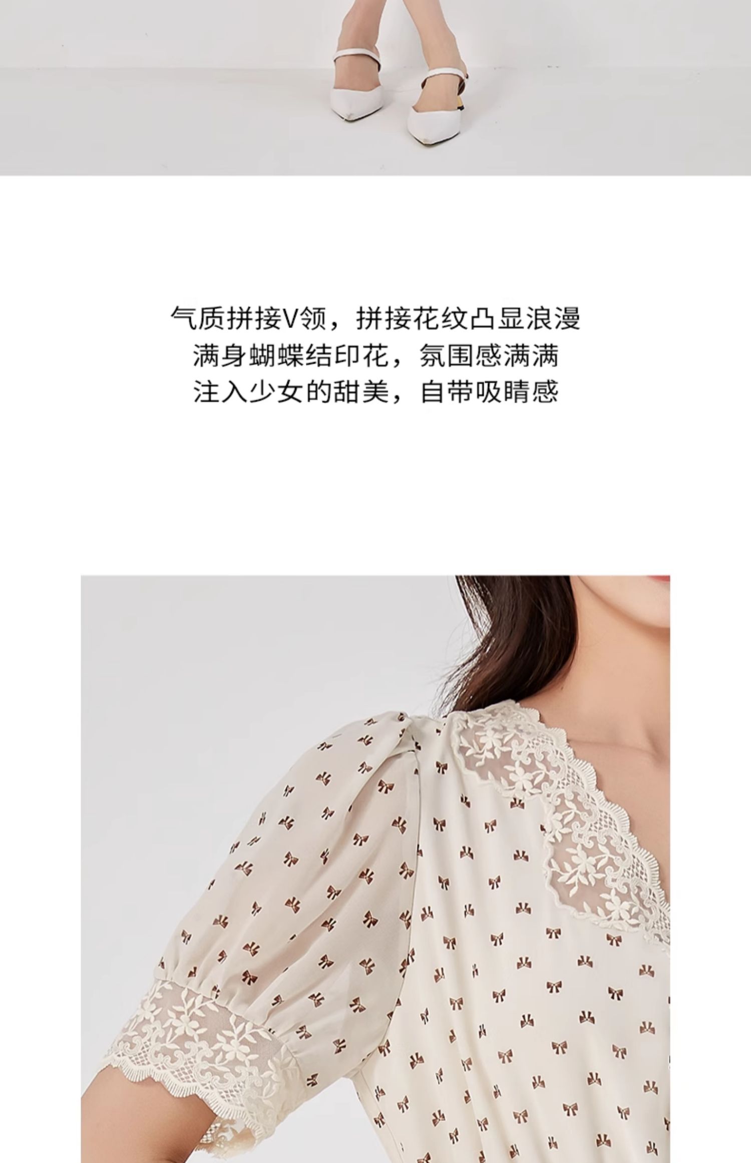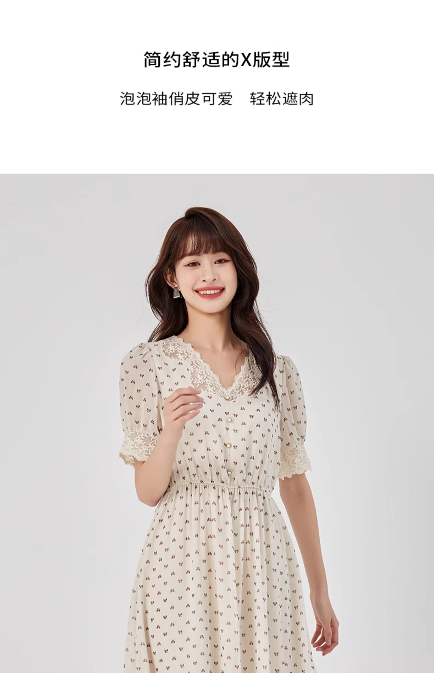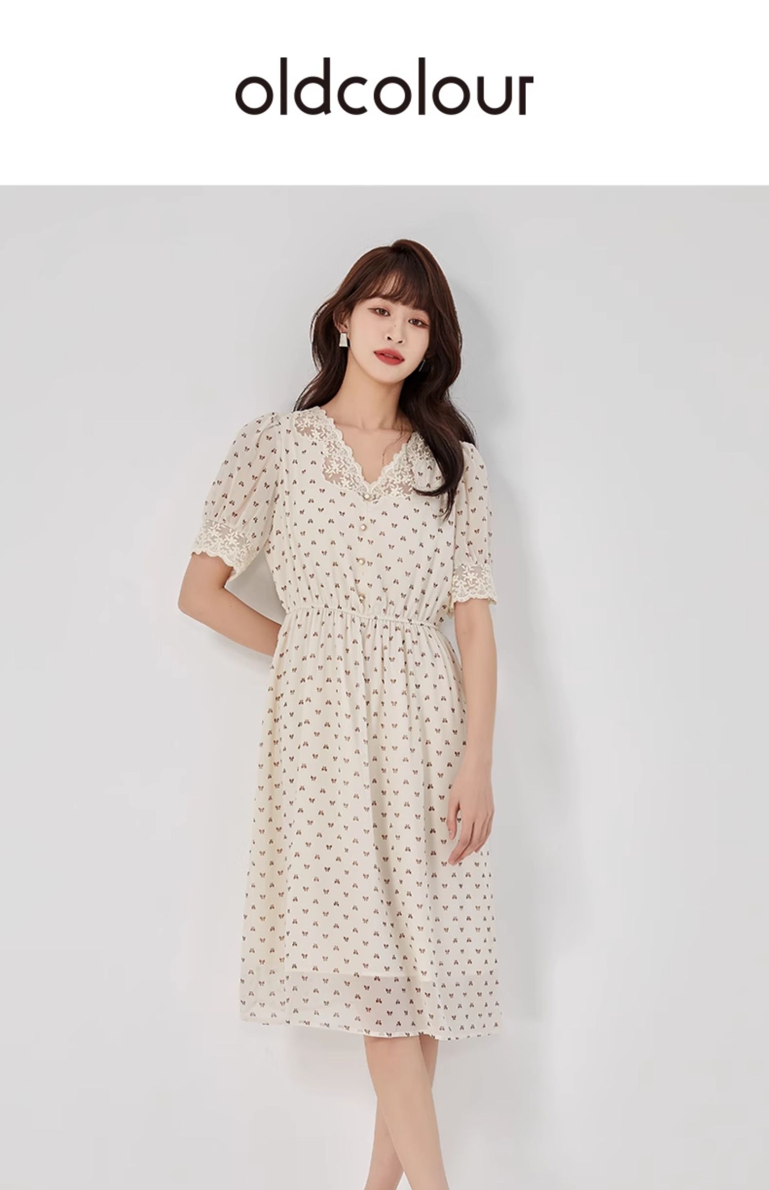 oldcolour2023夏季新款甜美气质高腰V领蕾丝碎花连衣裙GO21101752