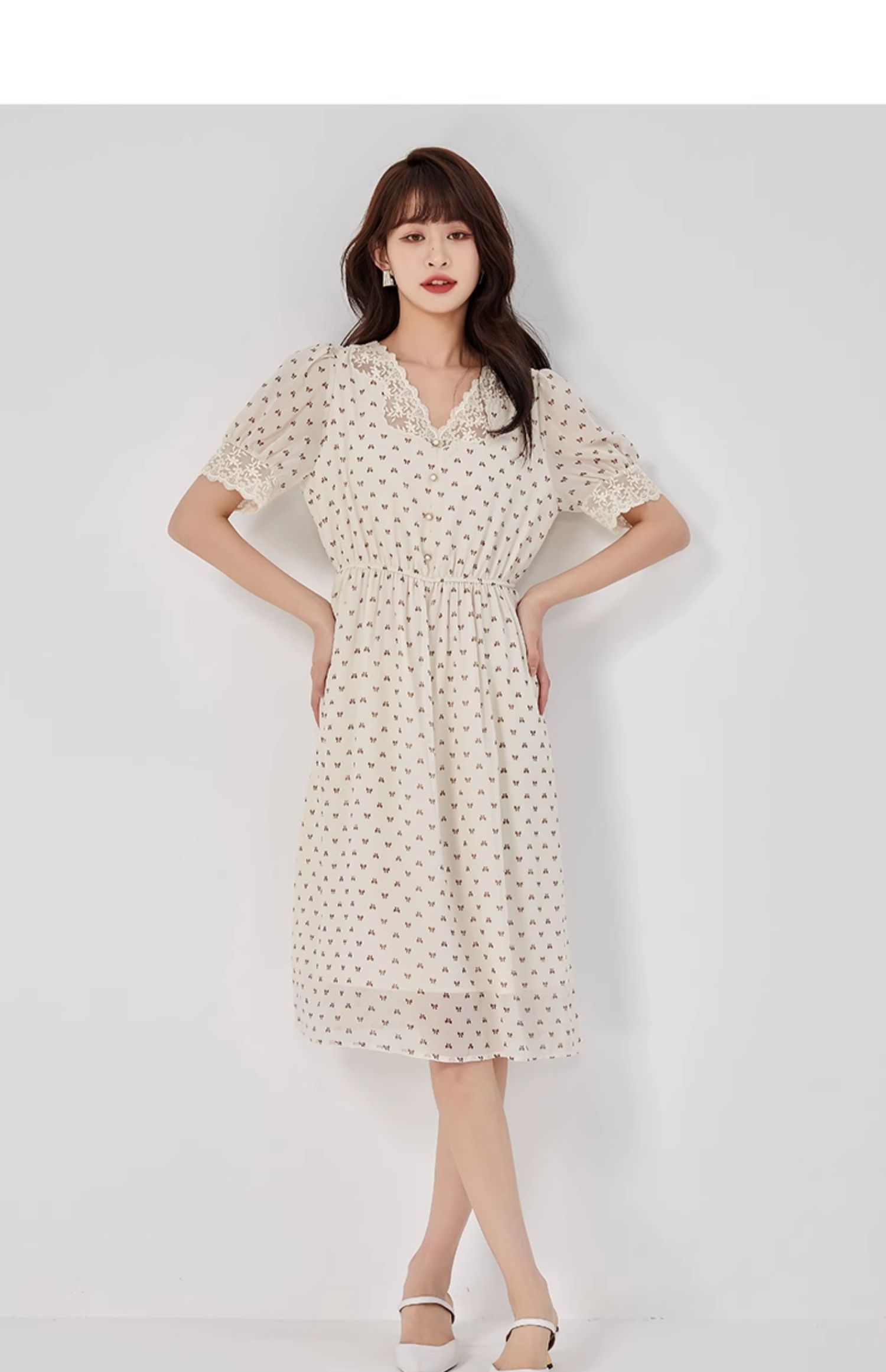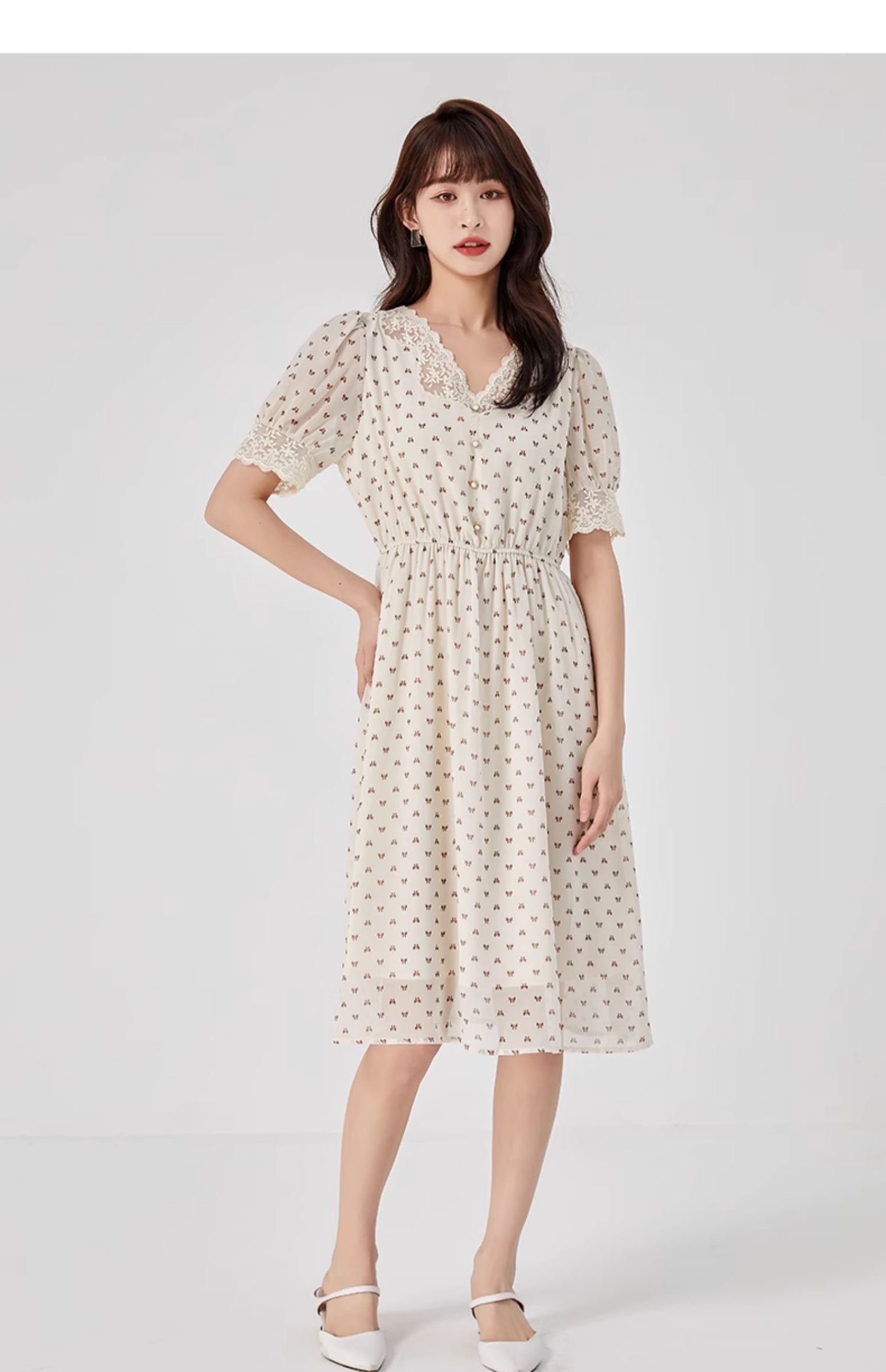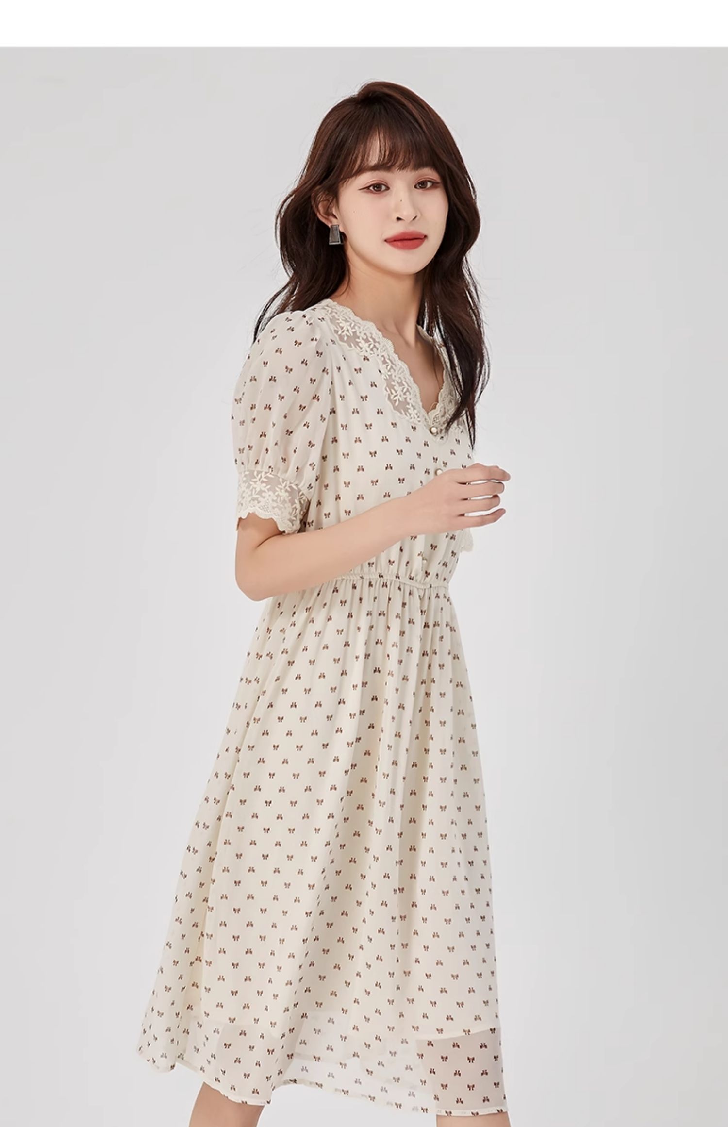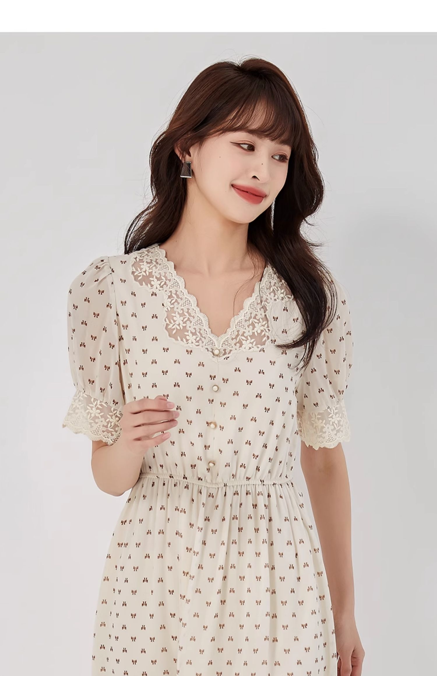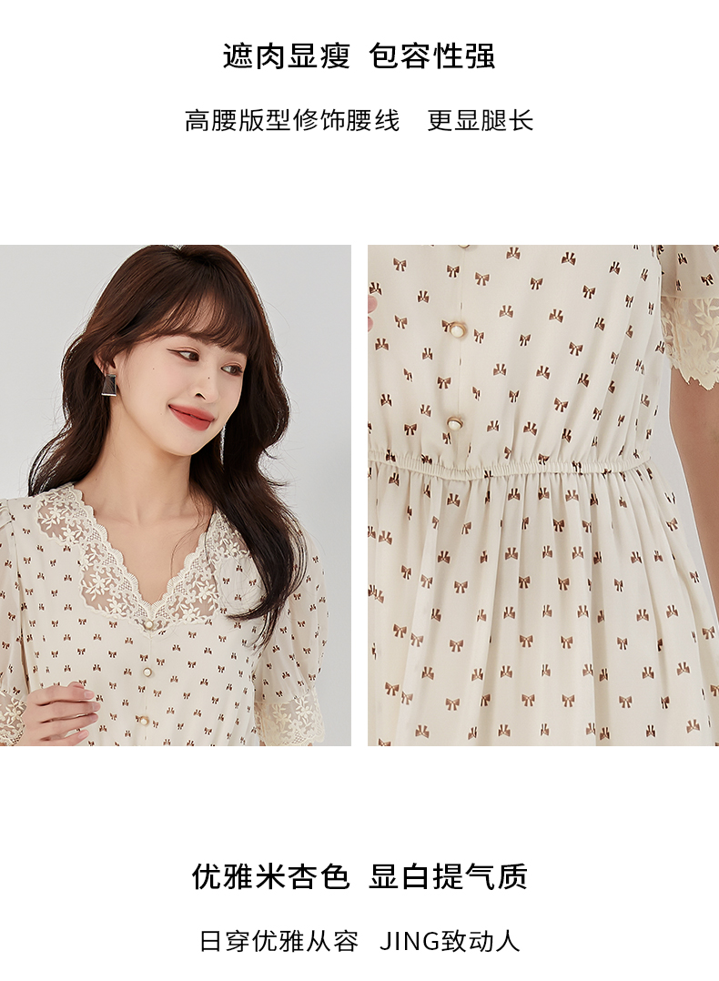 oldcolour2023夏季新款甜美气质高腰V领蕾丝碎花连衣裙GO21101752