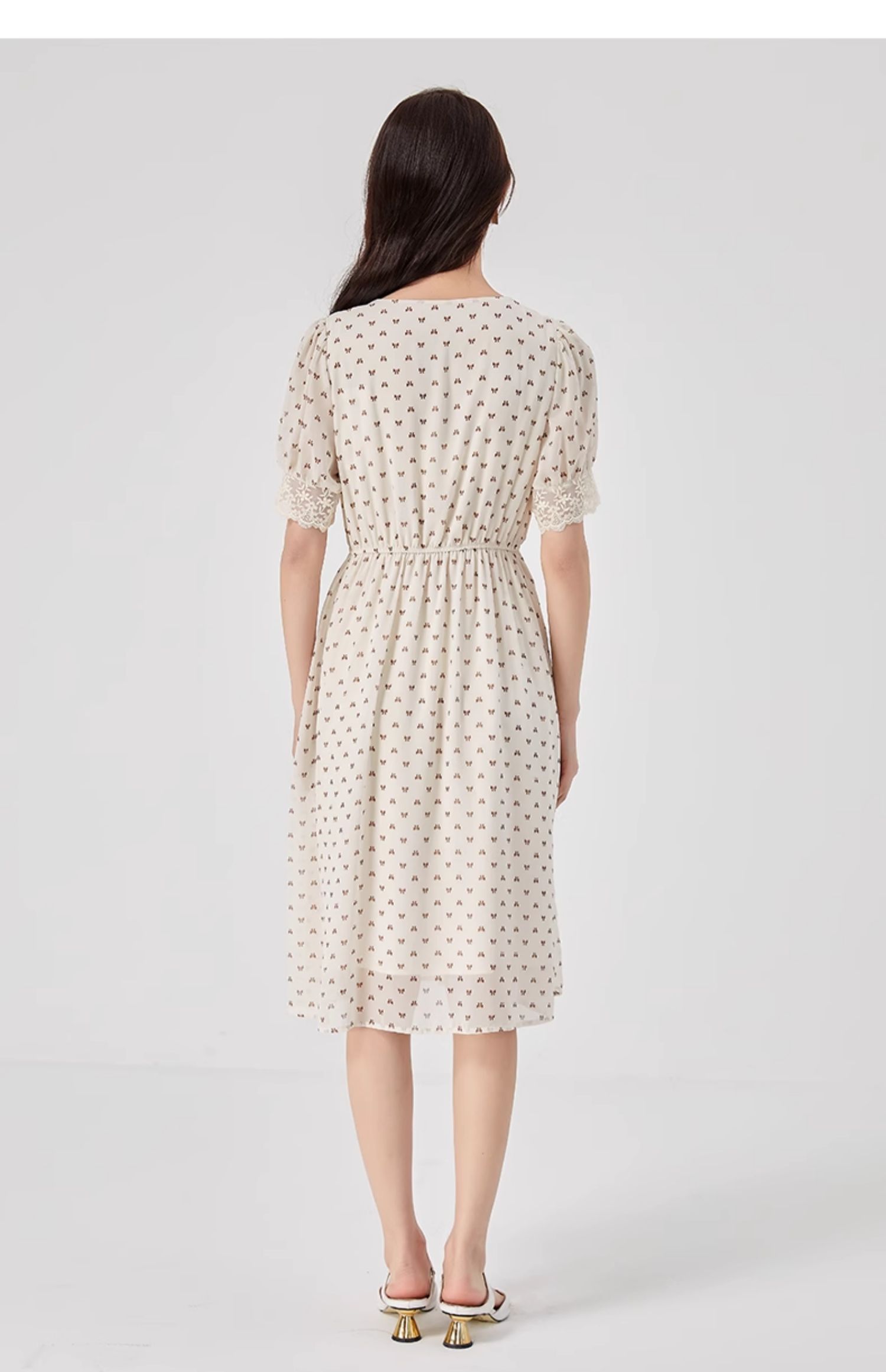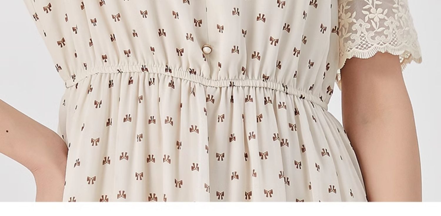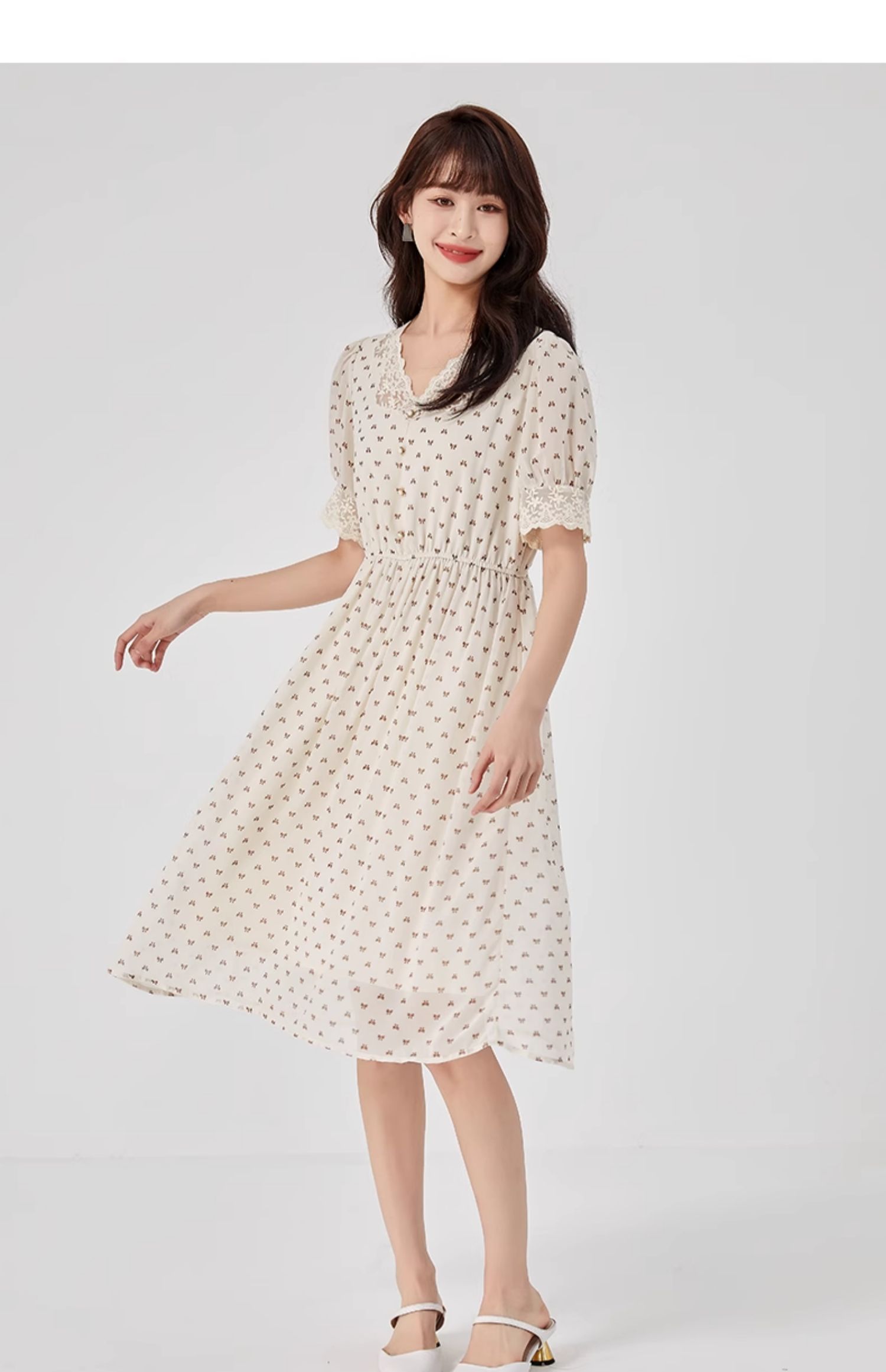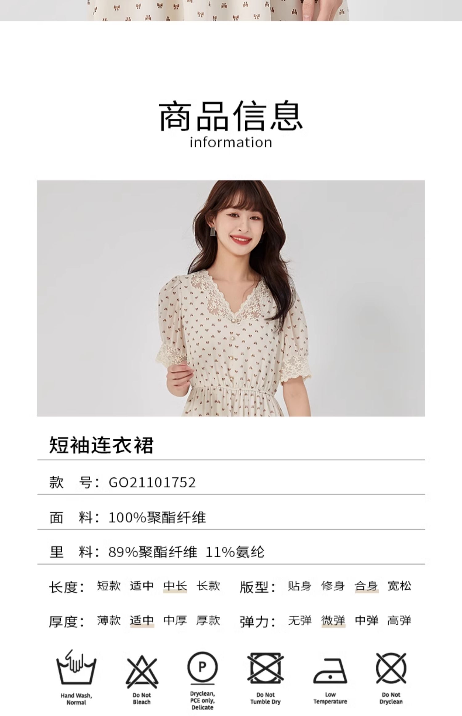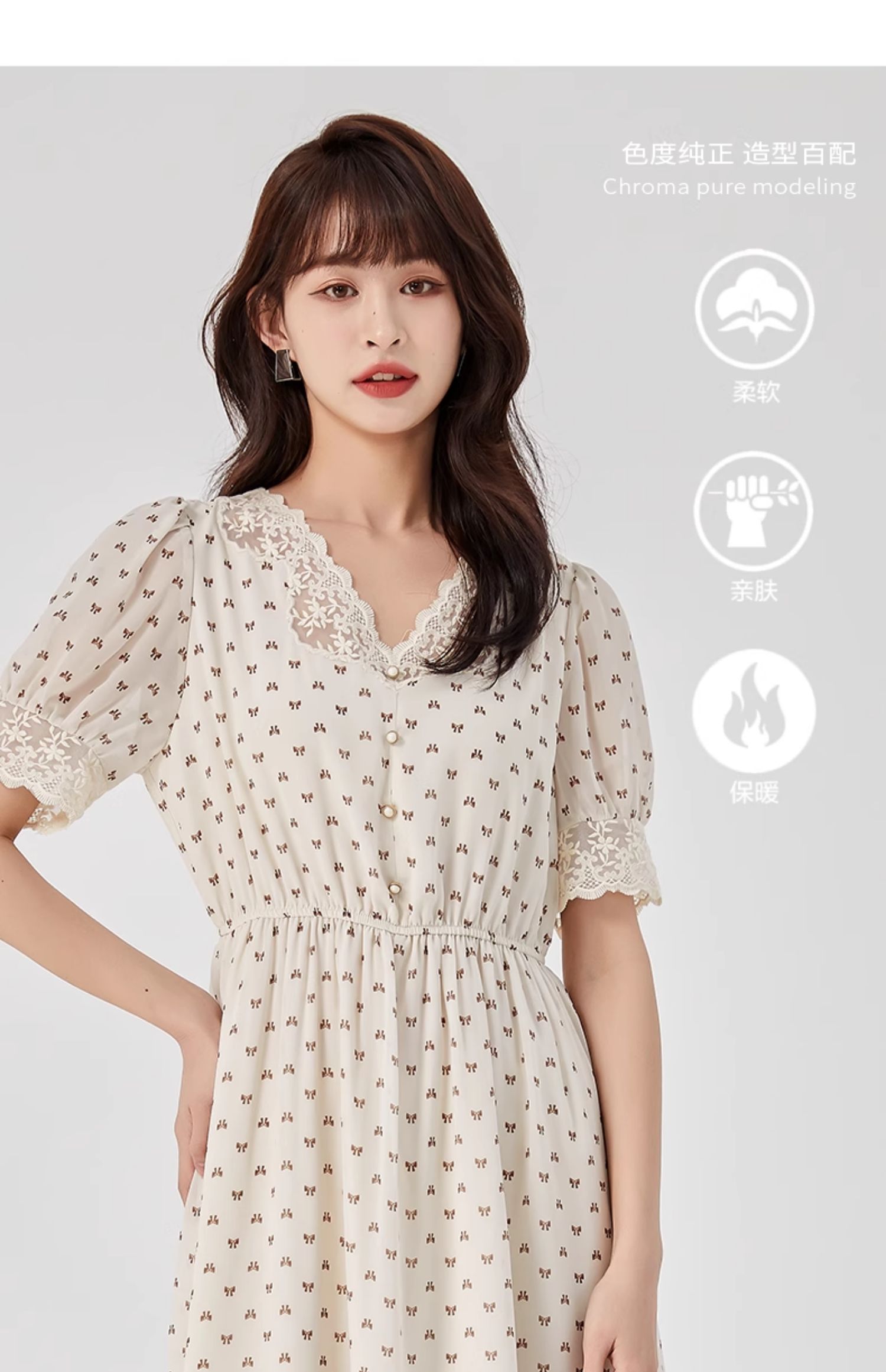 oldcolour2023夏季新款甜美气质高腰V领蕾丝碎花连衣裙GO21101752