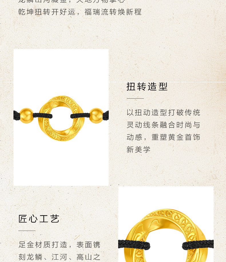 黄金扭转乾坤手链 足金莫比乌斯手绳情侣生日礼物送女友