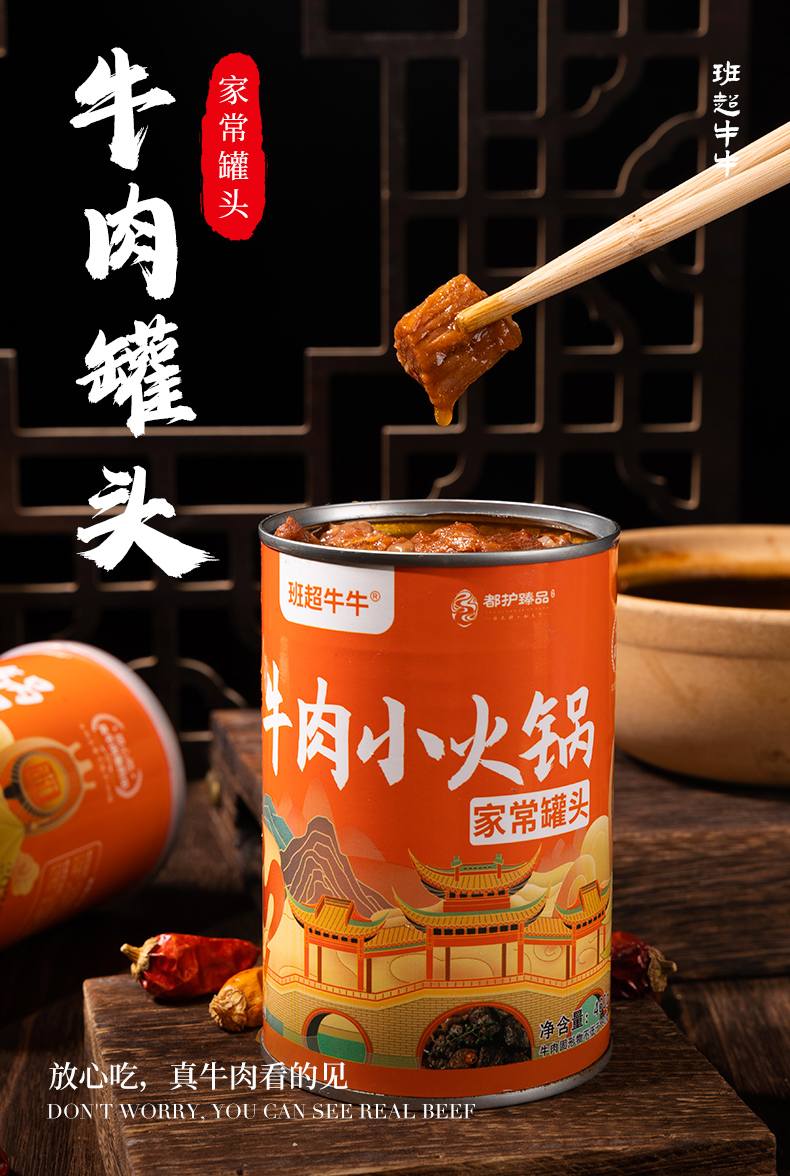 【分销】班超牛牛新疆西门塔尔牛罐装麻辣牛肉干+牛肉小火锅,选用自家牧场散养西门塔尔牛后腿肉,牧场饲养赋予肉源独特醇香