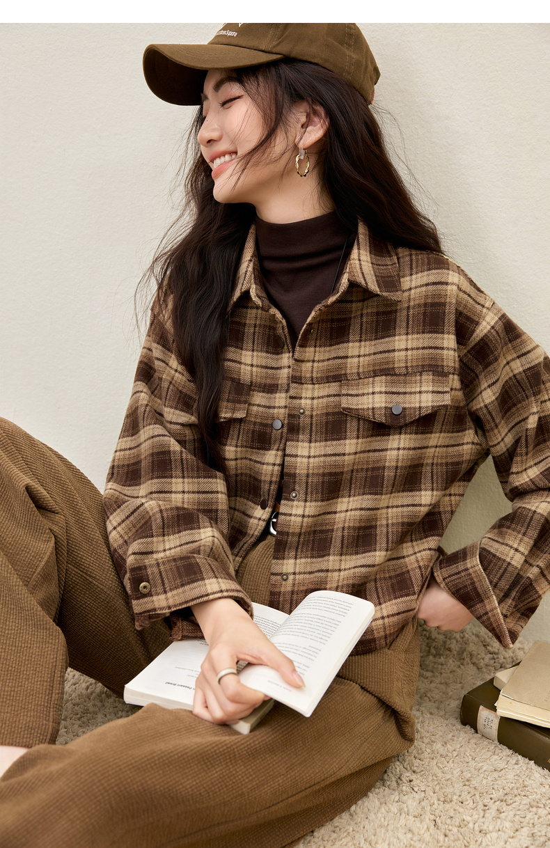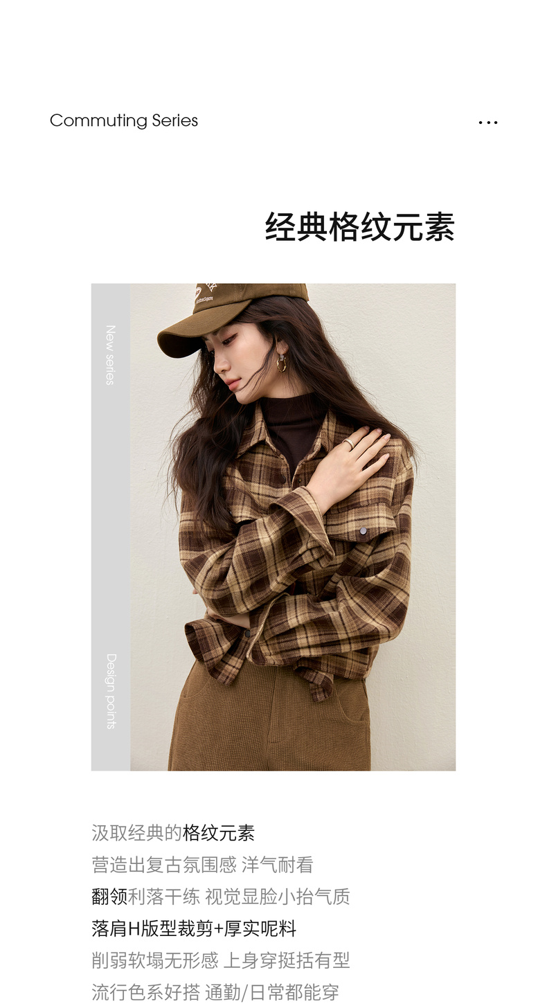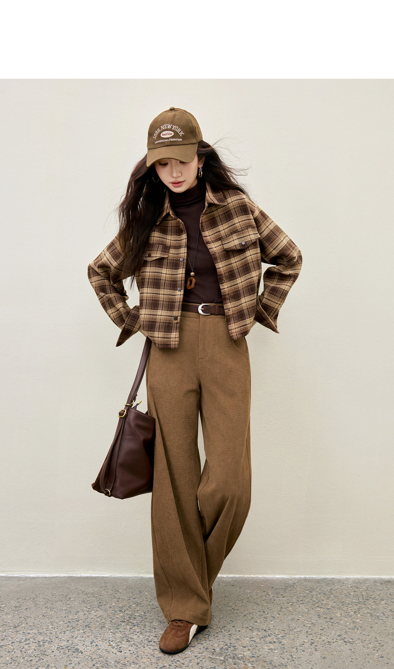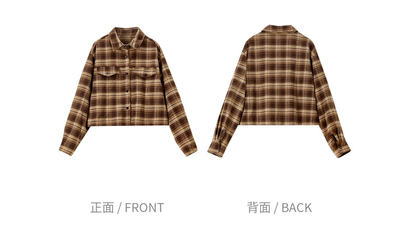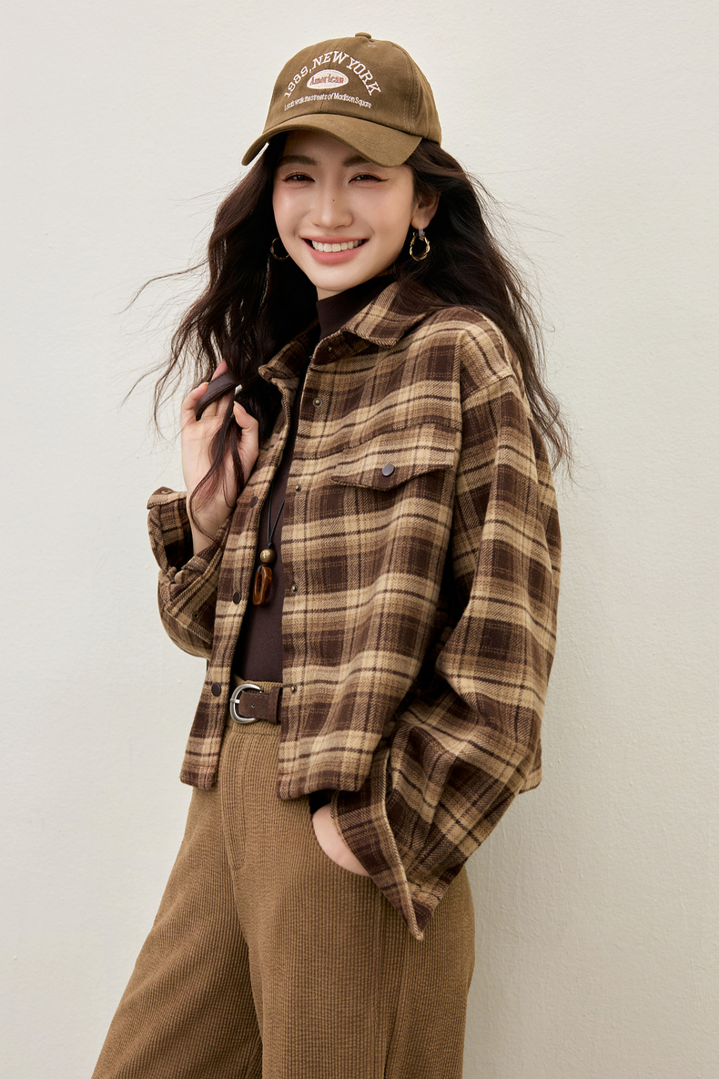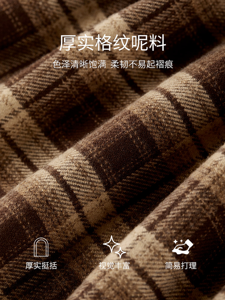 【内购】【格纹元素】复古洋气简约休闲翻领按扣落肩袖呢子厚外套-154WB4861