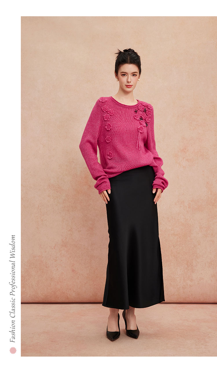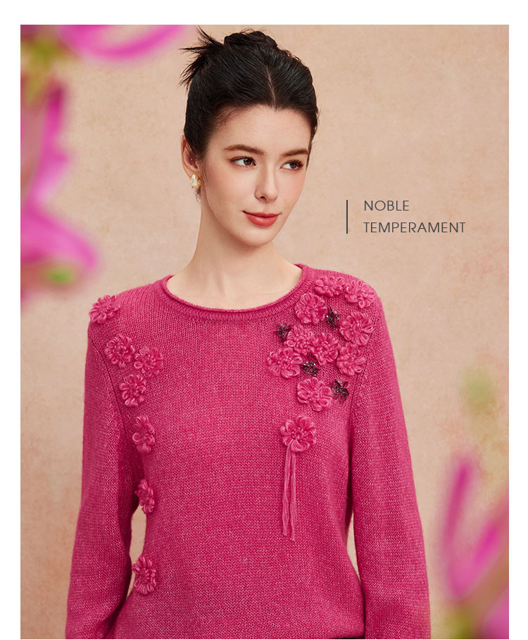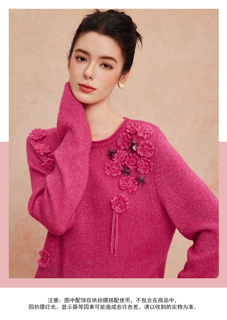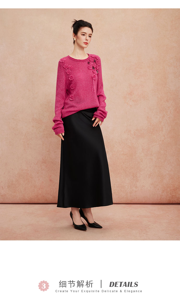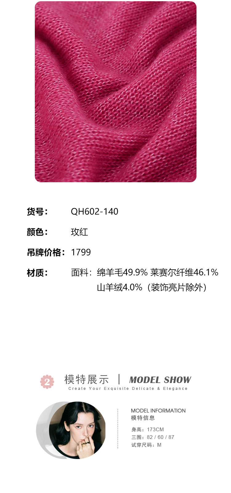 QH602斯尔丽2025新款轻柔软糯保暖手工盘花设计感强气质优雅毛衫